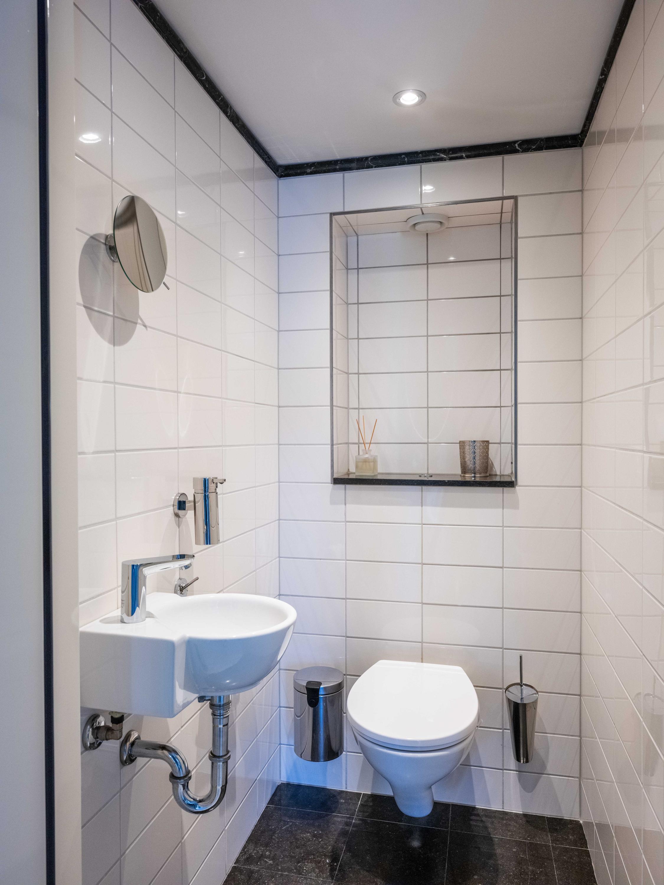 Tevens aan de overloop is nog de tweede kleinere badkamer met wastafel en douche te vinden.