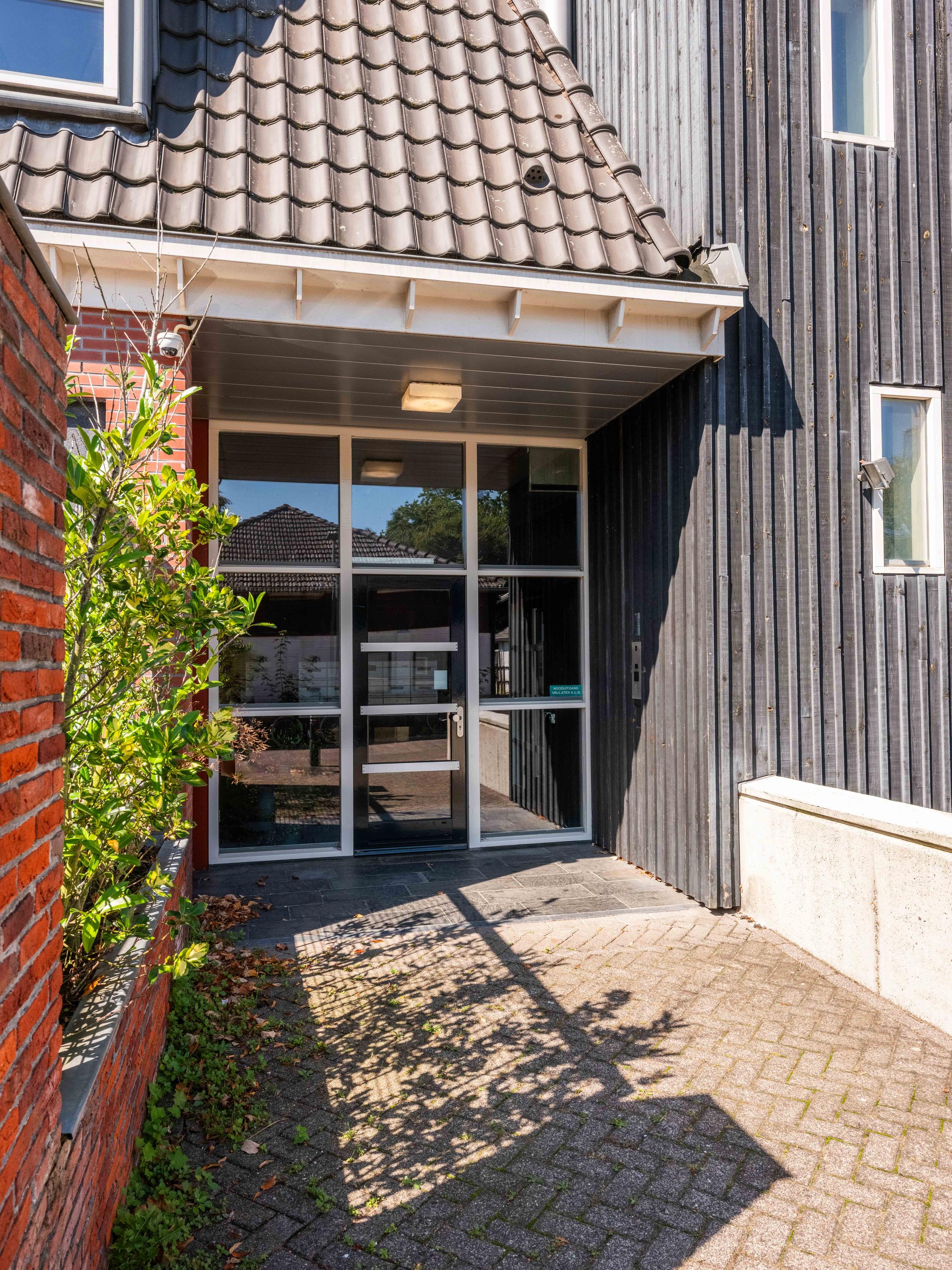 Via de centrale entree met trappenhuis en lift bereiken we hier het appartement. Via het ruime dakterras, gelegen op het zuiden, betreden wij via de voordeur het appartement. Bij binnenkomst in het appartement worden we verwelkomd in een ruime en lichte hal, waar voldoende ruimte is voor een garderobe. Hiervandaan toegang tot een slaapkamer, de eerste badkamer en de woonkamer.