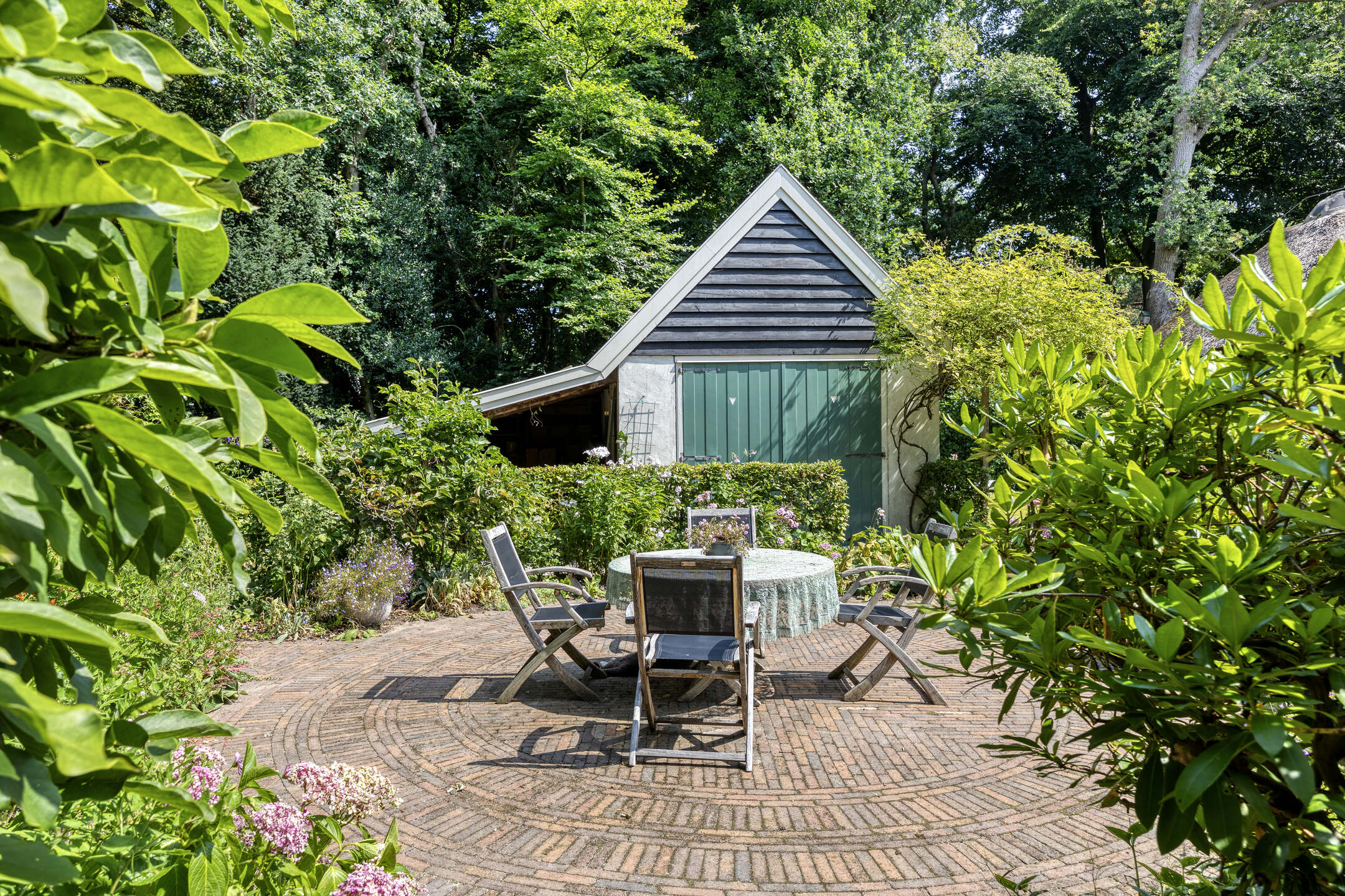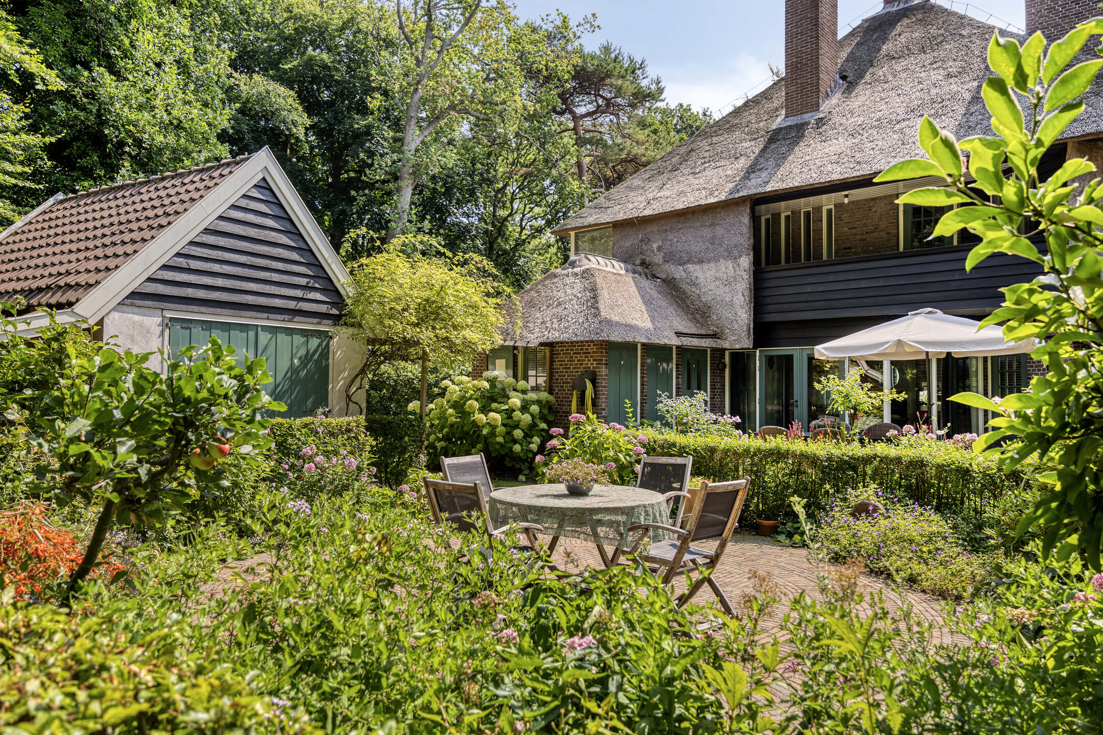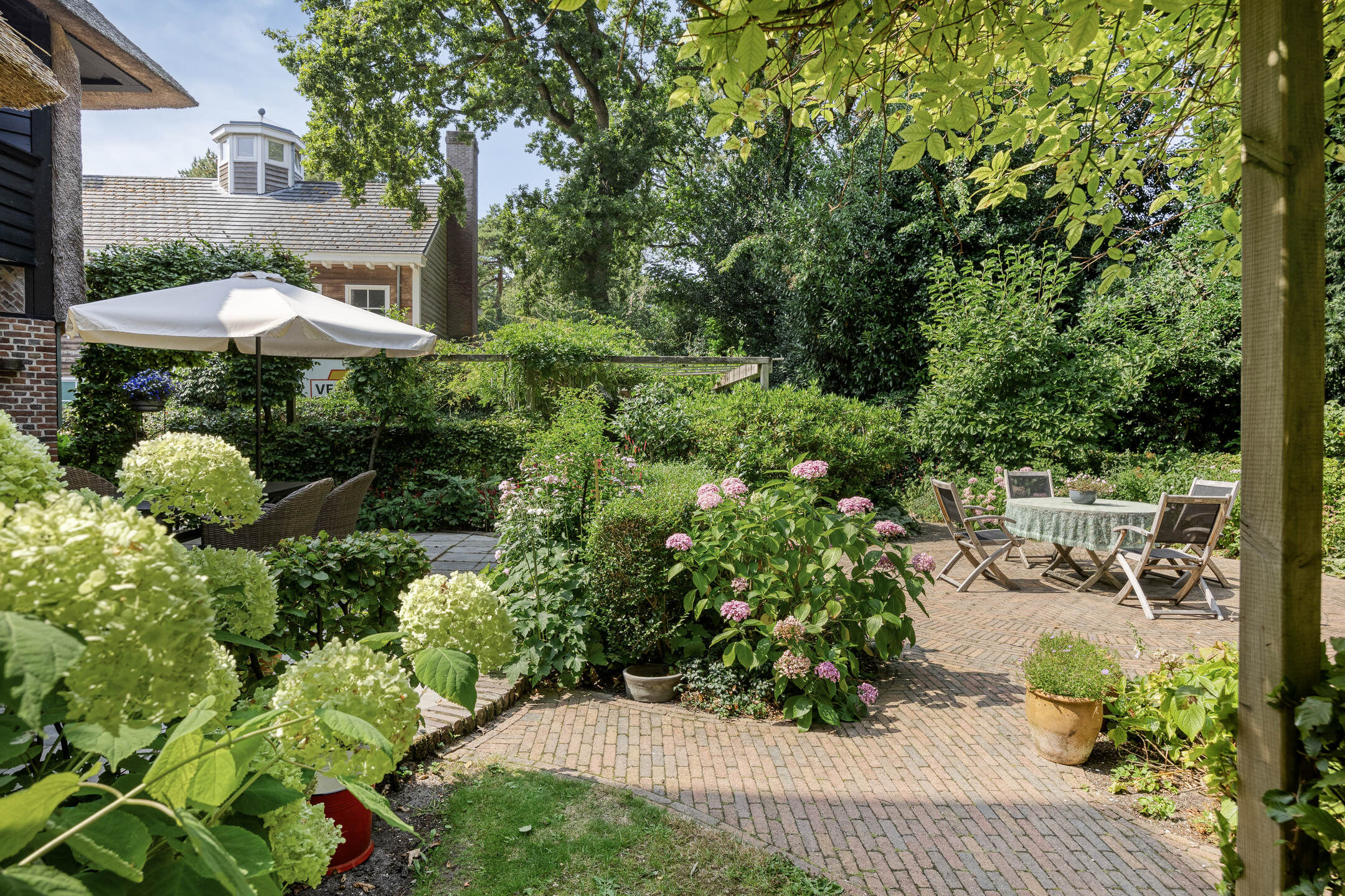 De fraai aangelegde tuin rondom de villa maakt het buitenleven compleet. Op het ruime perceel van 1.310 m² vindt u volwassen bomen, verzorgde borders en meerdere zonnige en beschutte terrassen. De royale oprit biedt ruimte aan meerdere auto’s en beschikt over een laadpaal met eigen tussenmeter.