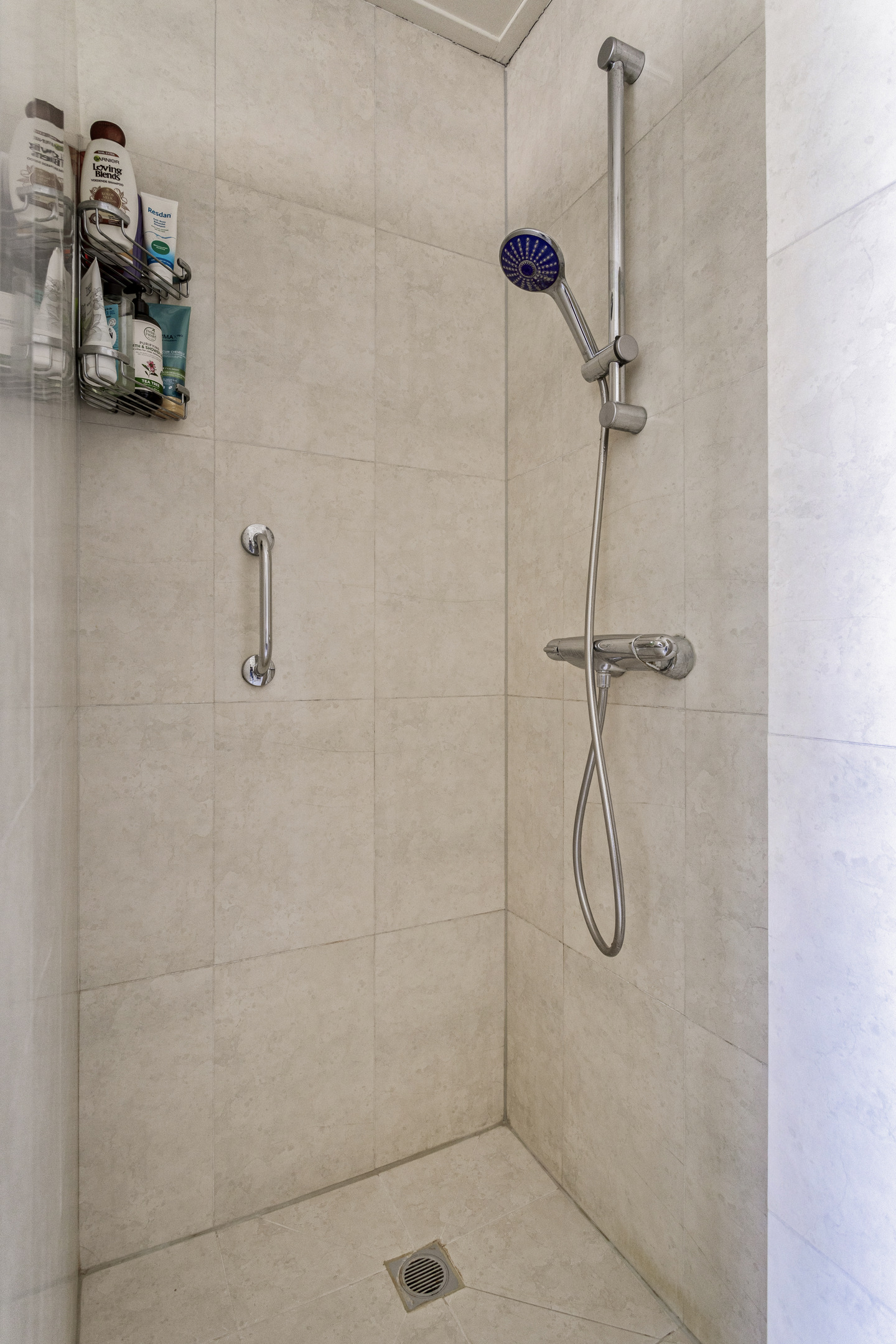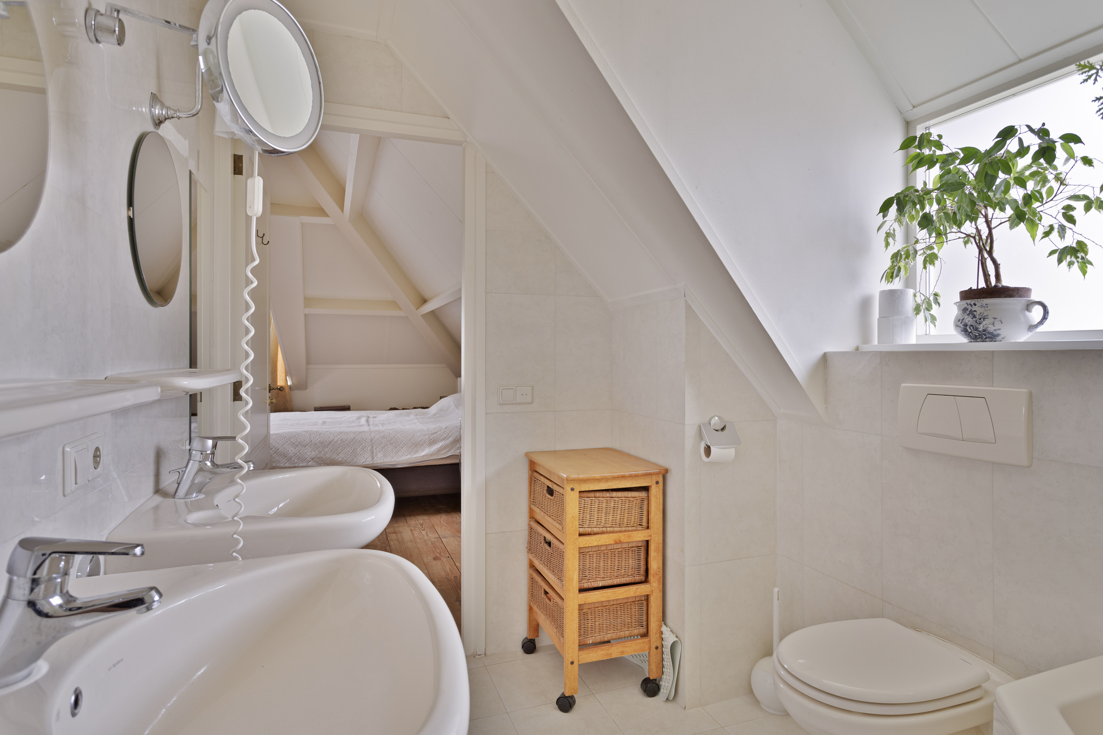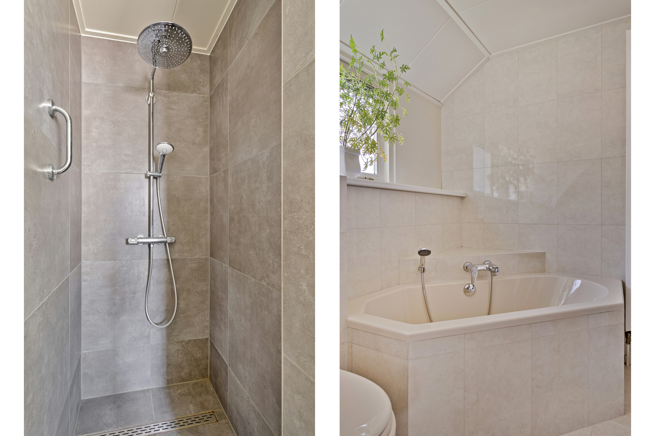 2e badkamer, betegeld en voorzien van een ligbad, inloopdouche, wandcloset, dubbele wastafel, designradiator en een dakkapel;