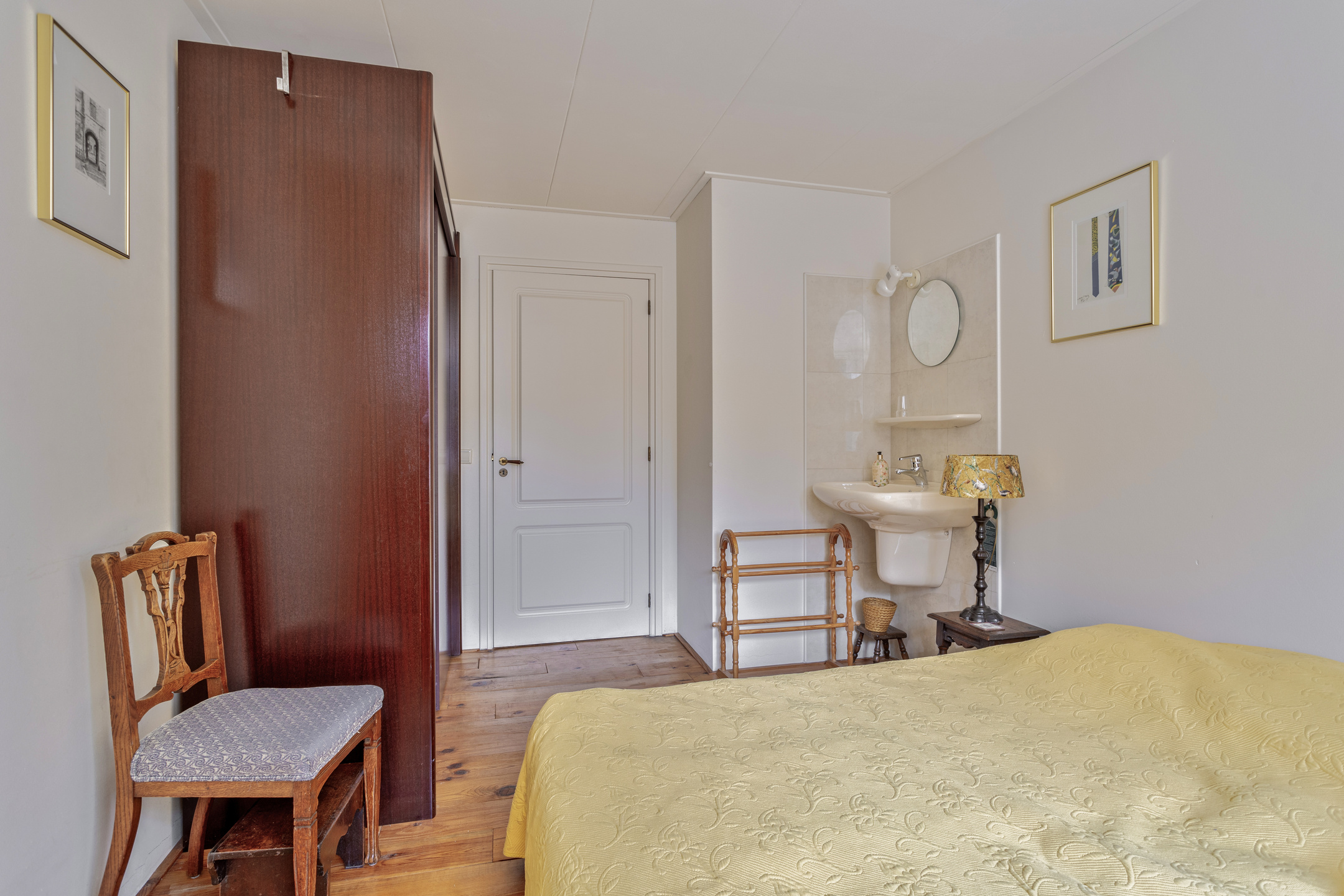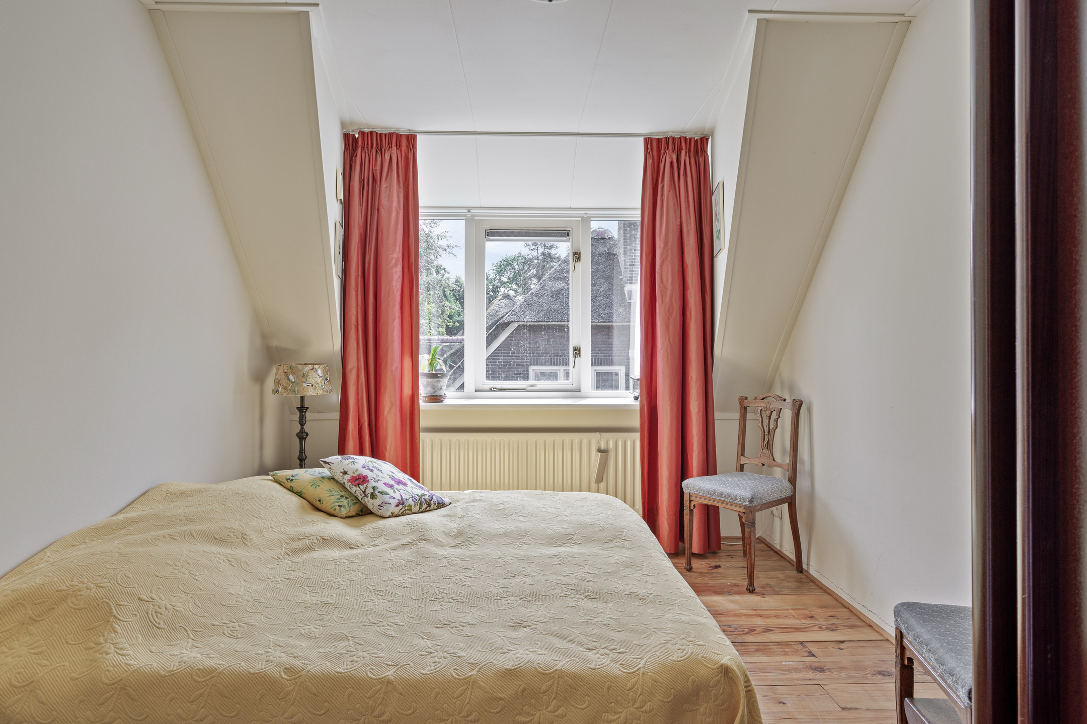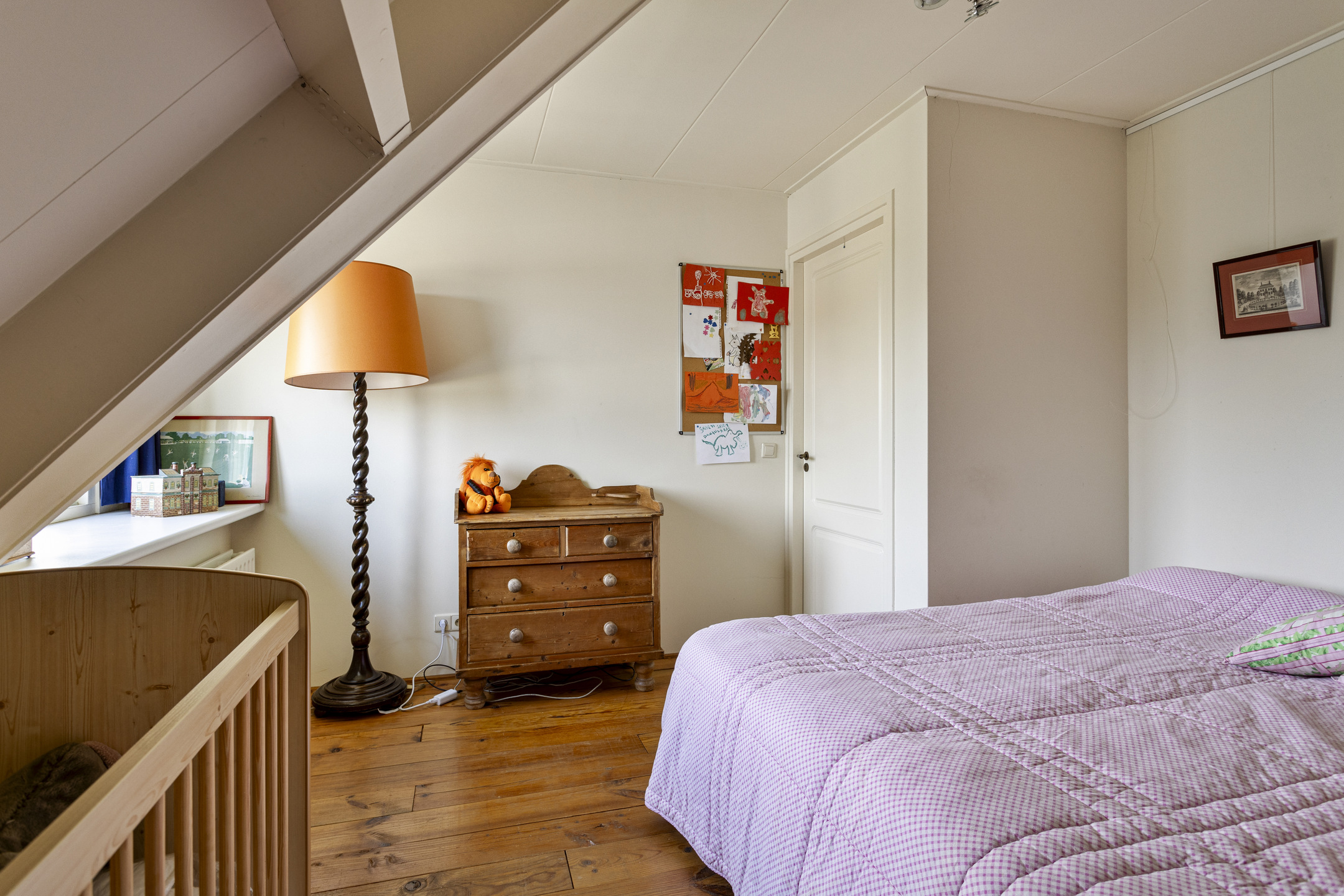 hoofdslaapkamer voorzijde (ca. 29 m²) met inbouwschuifkasten en een dakkapel, wandafwerking stucwerk, grenen planken vloer, dakbeschot in het zicht;
