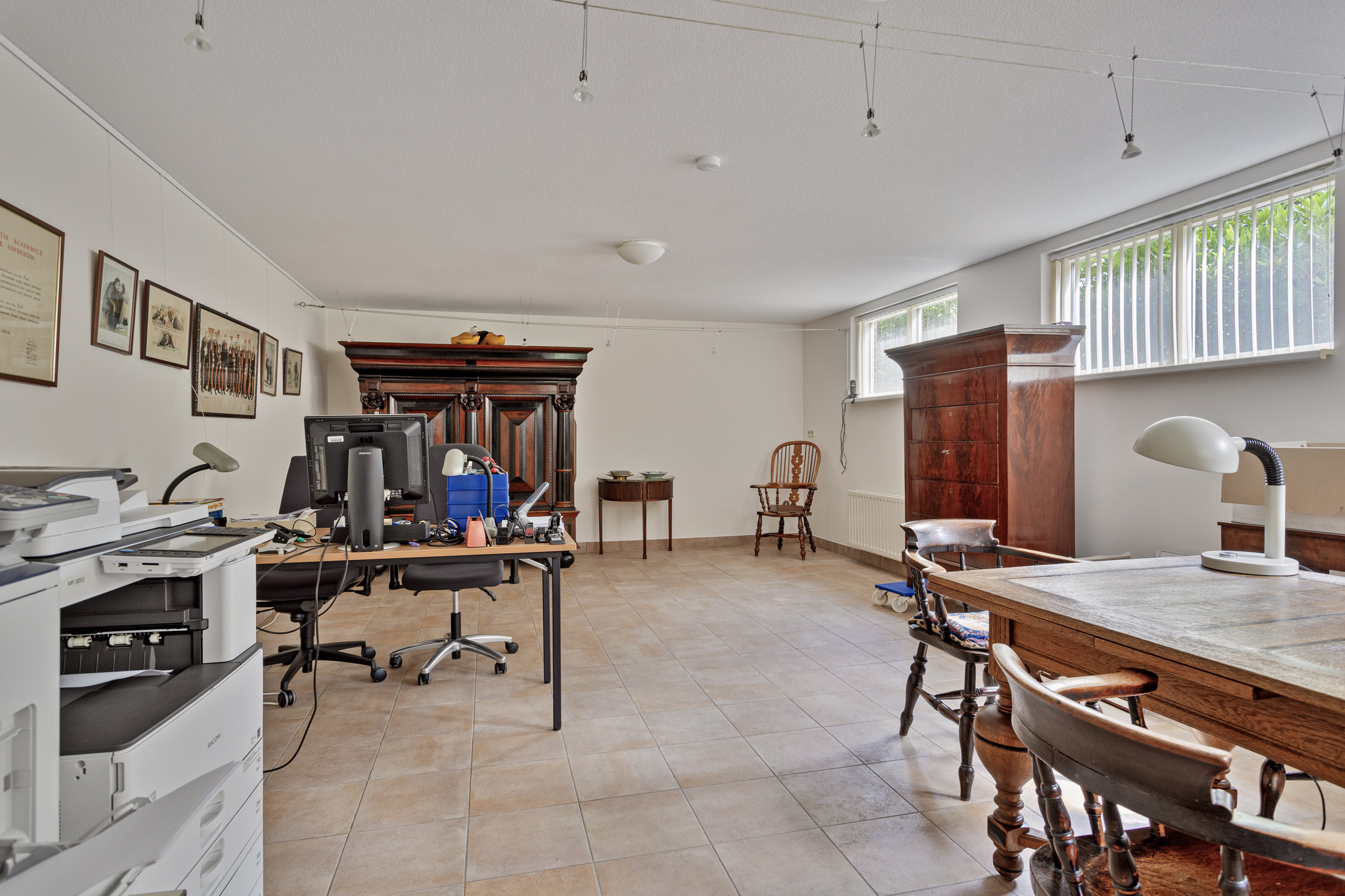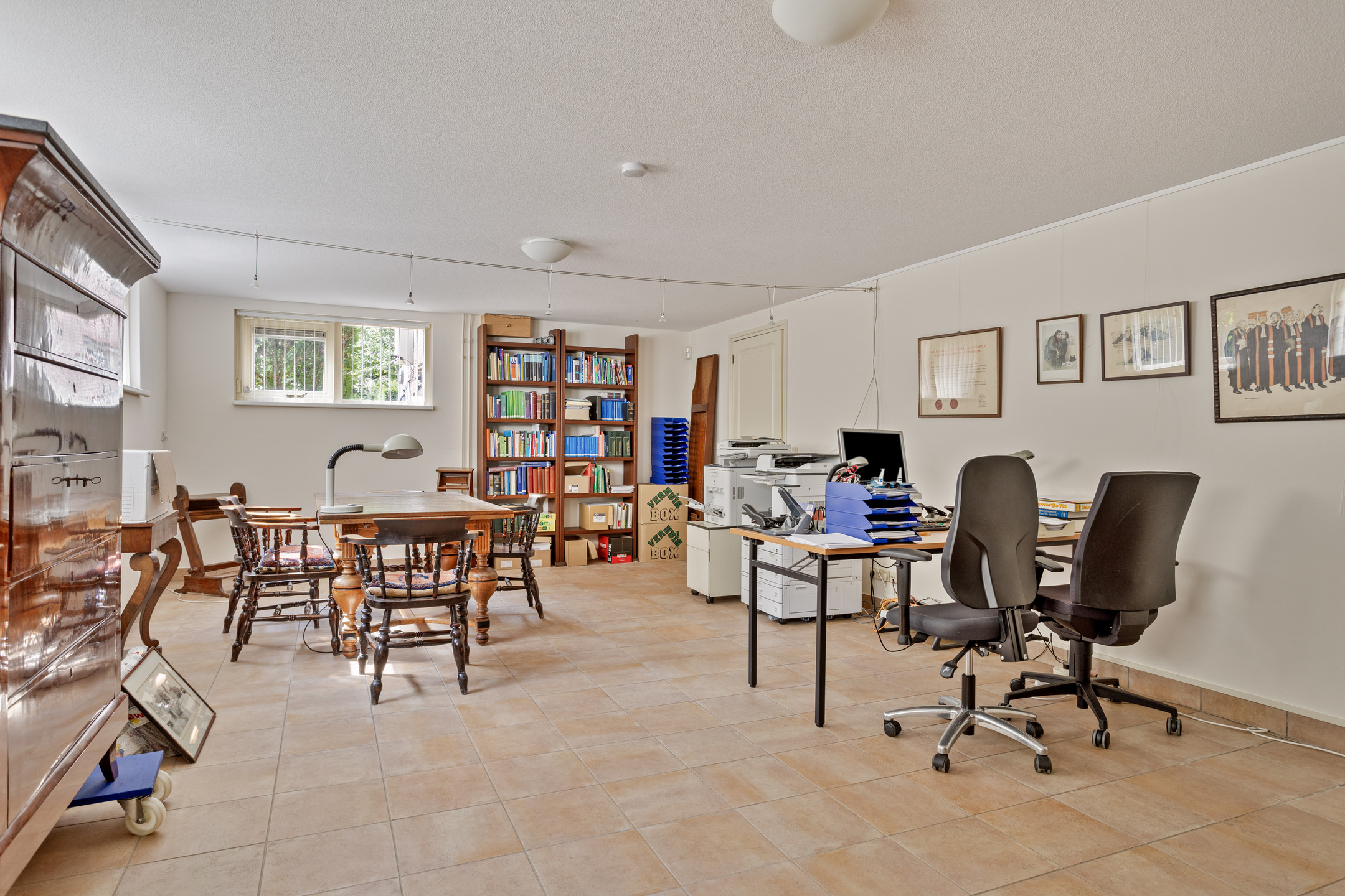 Omdat de wens aanwezig was voor een royale leefruimte met voldoende slaapkamers voor het voltallige gezin in combinatie met mogelijkheden voor werk of hobby’s aan huis is gekozen voor een souterrain onder de volledige woning. Zo woont u heerlijk ruim en biedt het object vele extra’s als een inpandige garage, een kantoor-/praktijkruimte-/sportruimte met daglicht, separate wijnkelder, archief-/opslagruimte en mogelijkheden voor een zelfstandige toegang. Het woongedeelte op de begane grond biedt u vervolgens een gezellige sfeer met een living welke overloopt in het eetgedeelte aan de achterzijde waarna u de half gesloten keuken met separate bijkeuken treft. Ook op de begane grond is een kantoorruimte voorzien voor de eventuele thuiswerker of wellicht gebruikt u de ruimte als extra slaapkamer.