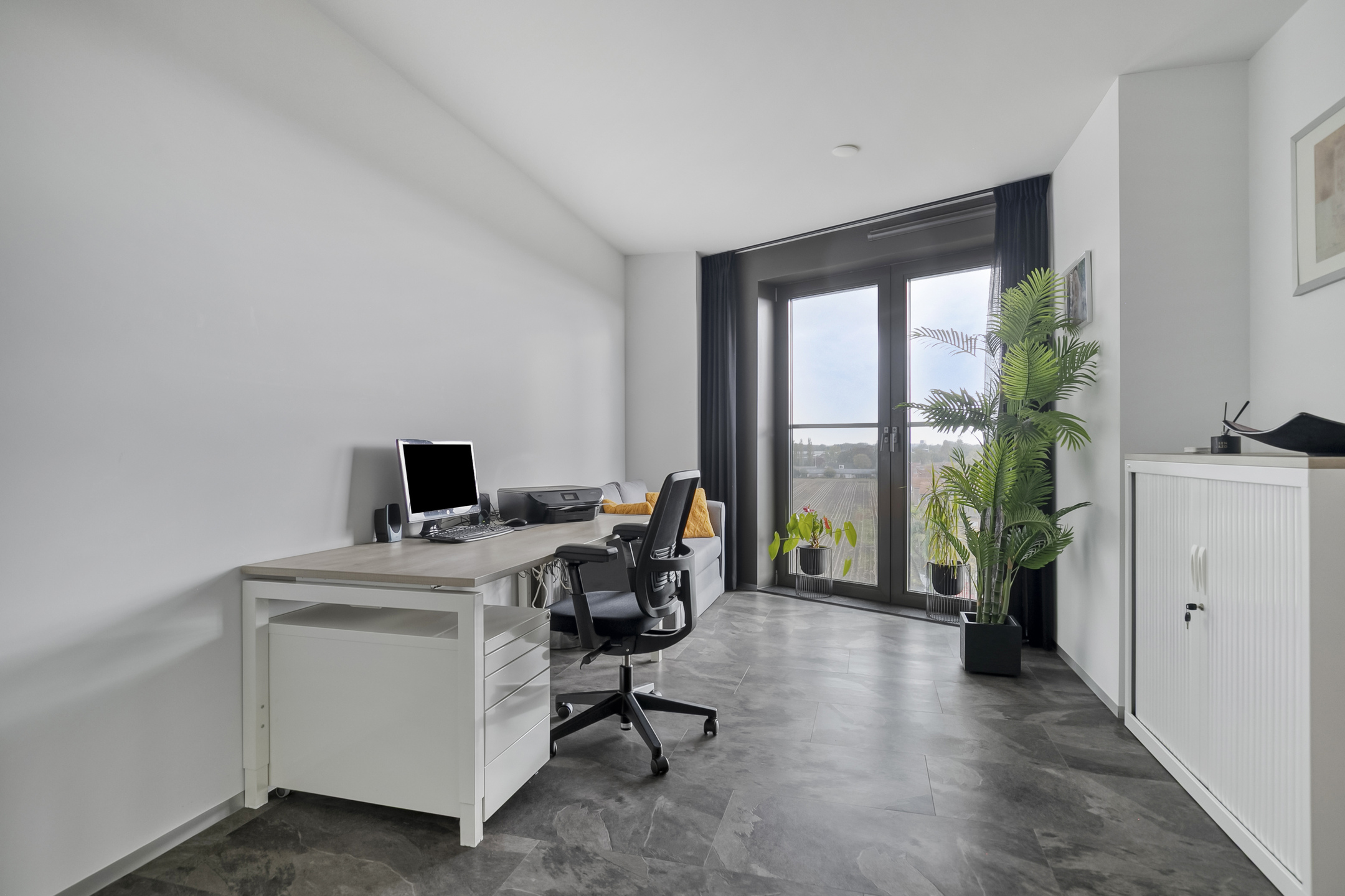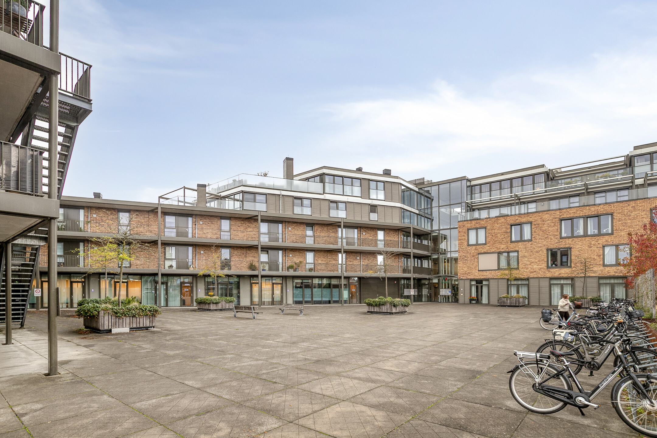 - Elektrische screens bij de raampartijen aan het terras en het plein, per vertrek afzonderlijk te bedienen
