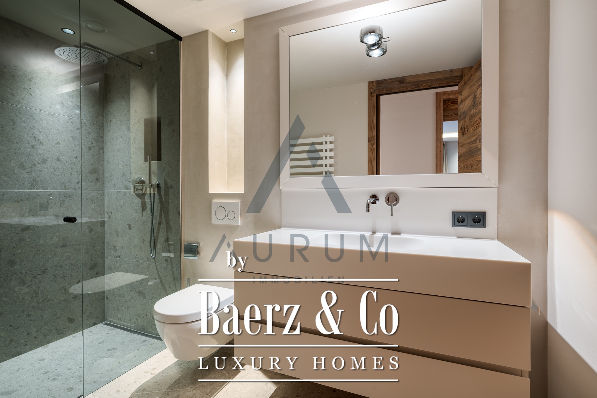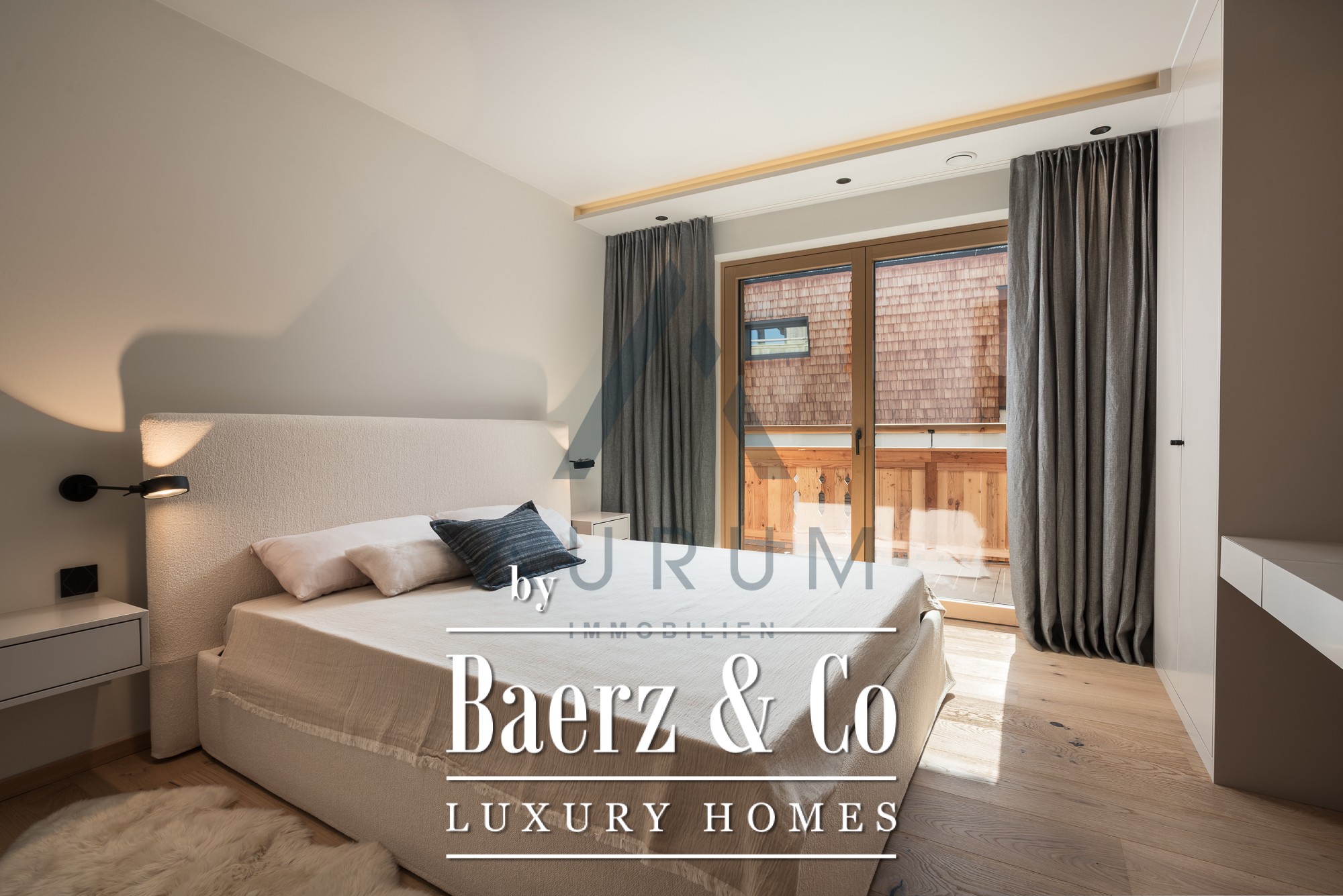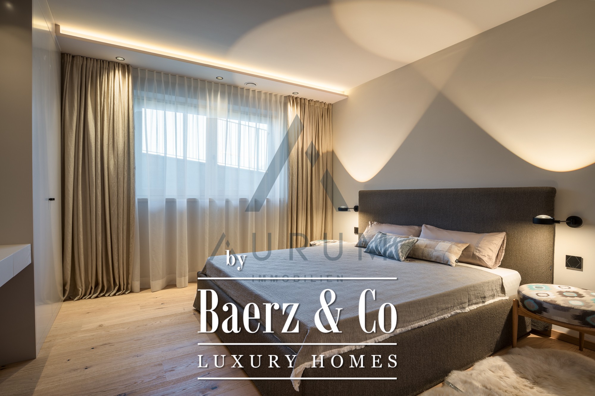 Binnen de 123 m² woonoppervlak harmoniëren twee slaapkamers en twee badkamers met royale leefruimtes en een sauna, waardoor een ruimtelijk gevoel ontstaat versterkt door natuurlijke materialen en zorgvuldige indeling. Vloerverwarming biedt het hele jaar door comfort; het Loxone BUS-systeem en elektrische zonwering zorgen voor hedendaagse efficiëntie. Een gastentoilet, stijlvolle lifttoegang en kelderberging dragen bij aan een vloeiende dagelijkse woonervaring.