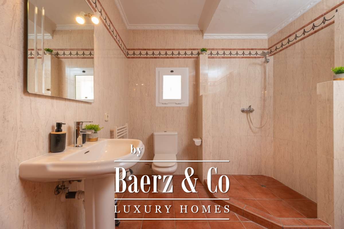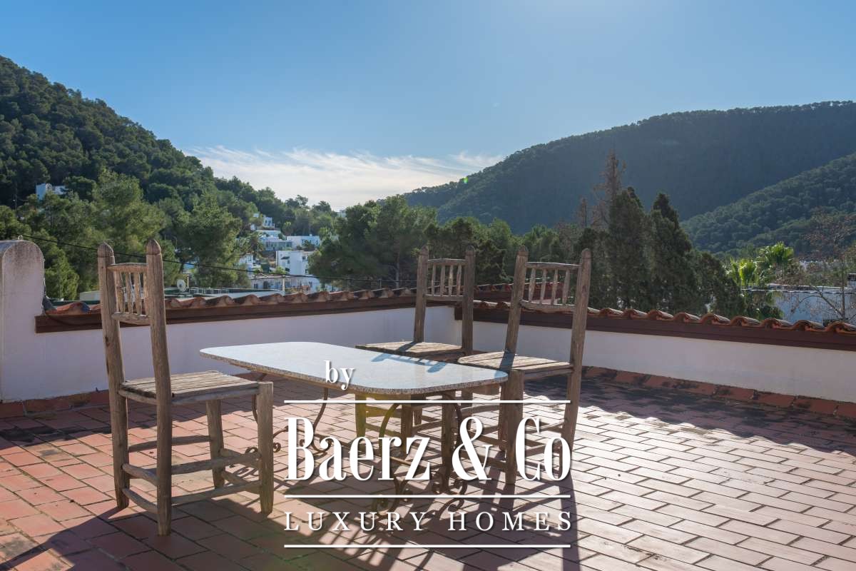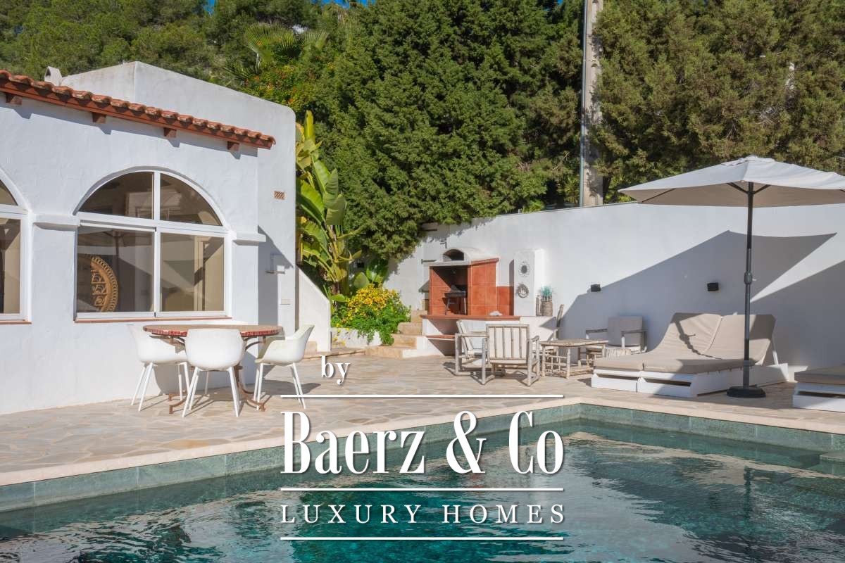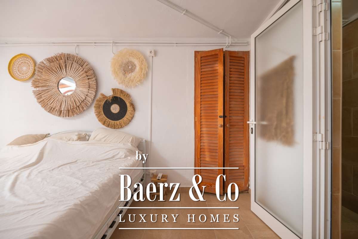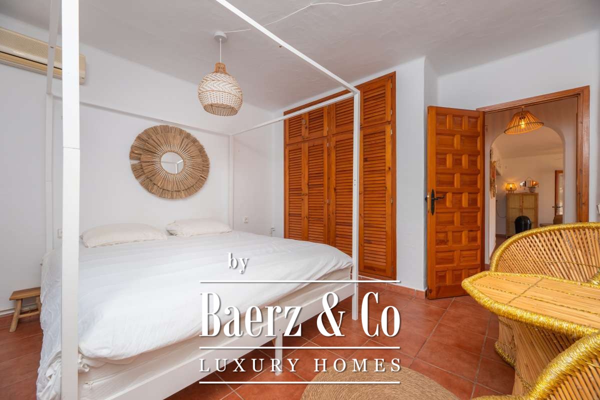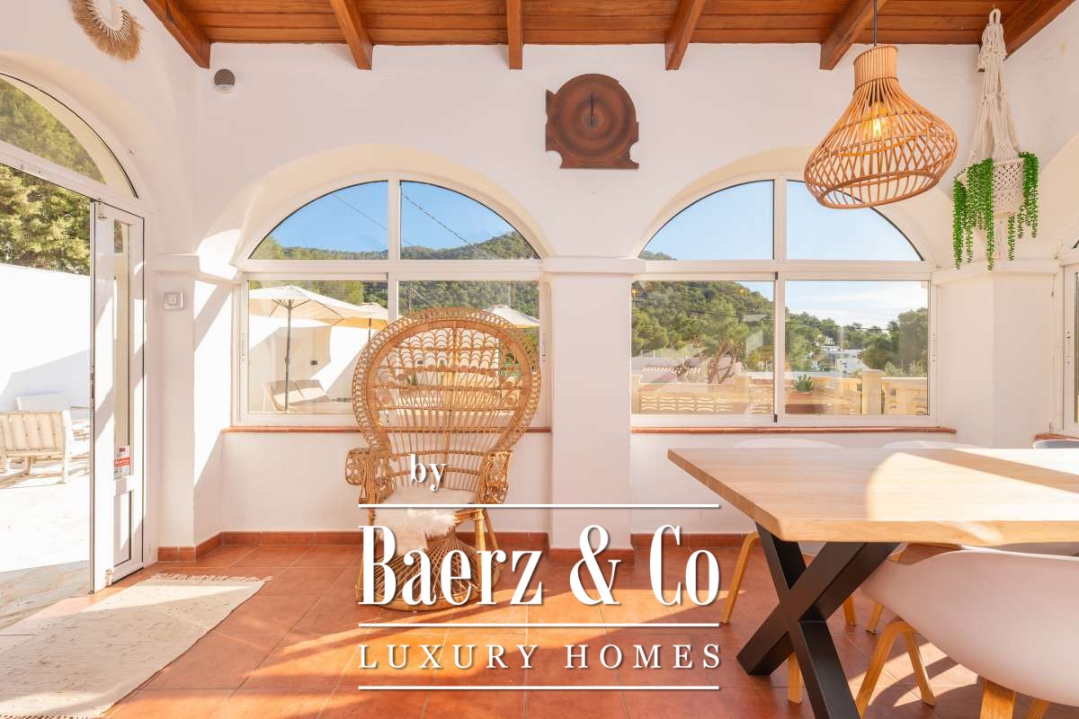 De omgevingGelegen in het groene en geliefde Cala Llonga biedt deze villa het beste van twee werelden: absolute rust én uitstekende bereikbaarheid. Cala Llonga staat bekend om haar brede zandstrand, omliggende heuvels en ontspannen sfeer, een omgeving waar het eilandleven nog puur aanvoelt. Binnen enkele minuten bereikt u het strand, diverse restaurants en beachclubs, terwijl plaatsen als Santa Eulalia en Ibiza-stad vlot bereikbaar zijn. De ligging maakt deze woning ideaal voor wie privacy zoekt, maar het sociale leven van Ibiza altijd binnen handbereik wil houden.De villaCasa Rock beschikt over een totale woonoppervlakte van circa 123 m², gelegen op een perceel van 693 m². De woning telt drie slaapkamers en drie badkamers, waarvan 2 en-suite. Dat zorgt voor optimaal comfort, zowel voor permanent wonen als voor gebruik als vakantieverblijf.De indeling is praktisch en logisch, met een fijne verbinding tussen de leefruimtes. Grote raampartijen zorgen voor veel daglicht en een aangename, open sfeer. De woning biedt daarnaast volop mogelijkheden om naar eigen smaak te moderniseren of te verfijnen, zonder dat de solide basis verloren gaat. Extra bergruimtes en functionele zones maken het geheel compleet en onderstrepen het veelzijdige karakter van deze villa.De buitenruimtesDe buitenruimte is zonder twijfel één van de sterke punten van deze woning. Het perceel biedt meerdere terrassen, een privézwembad en voldoende ruimte om in alle rust te genieten van de zon. Of het nu gaat om lange zomerdagen aan het zwembad, diners met vrienden of simpelweg ontspannen met uitzicht op het groen, hier voelt elke dag als vakantie.Dankzij de goede privacy en de zonnige ligging is Casa Rock een aantrekkelijk object voor eigen gebruik én als investering. Een bezichtiging laat pas echt voelen wat deze woning zo bijzonder maakt.