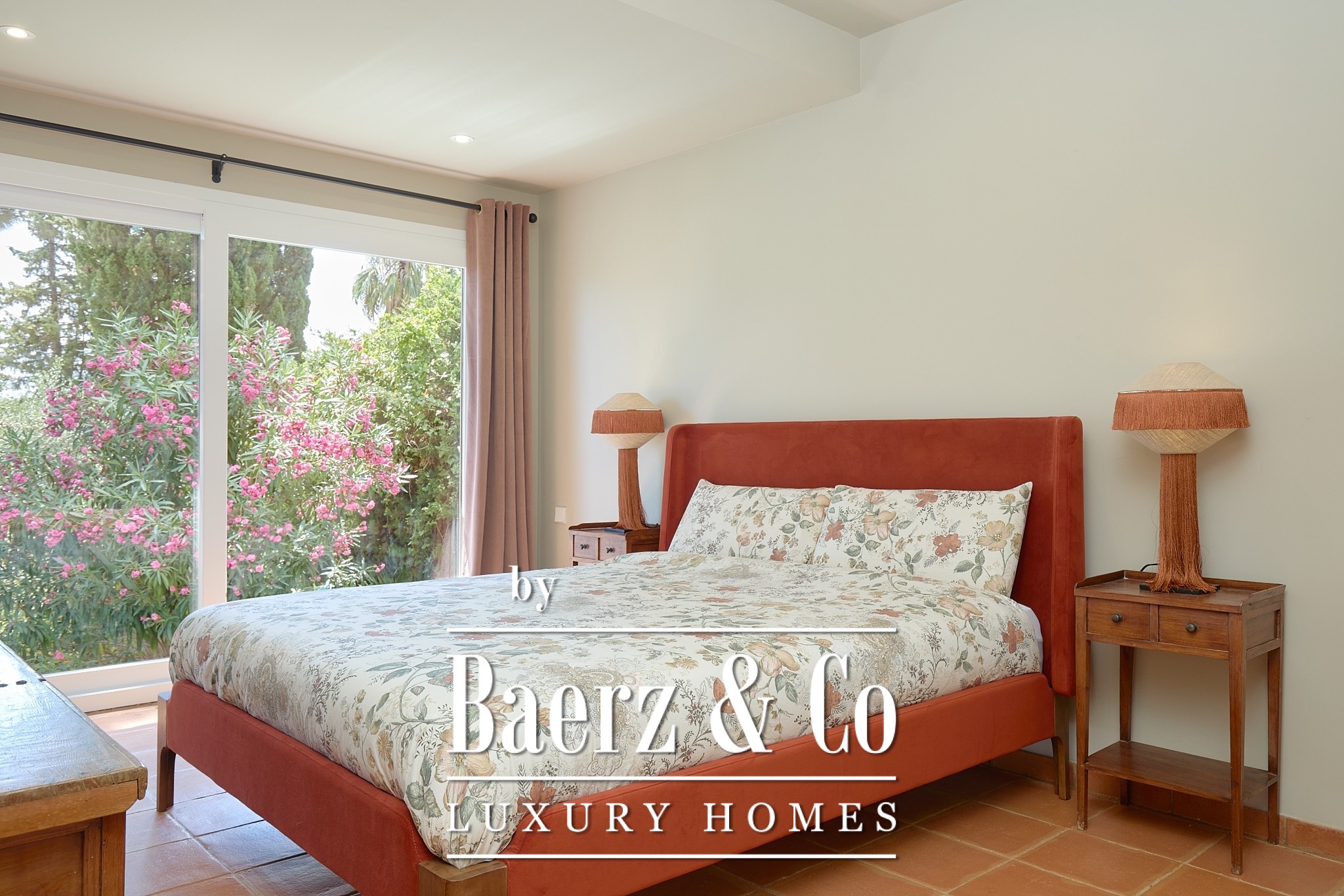 Het zelfstandige gastenverblijf in loftstijl biedt gasten volledige autonomie met een eigen keuken en badkamer. Buiten vindt u een nieuw zwembad, solarium, aangelegde tuinen en een overdekte eet- met barbecuehoek – het geheel ademt de sfeer van een authentiek mediterraan toevluchtsoord. De grote privégarage benadrukt het praktische karakter van luxe.