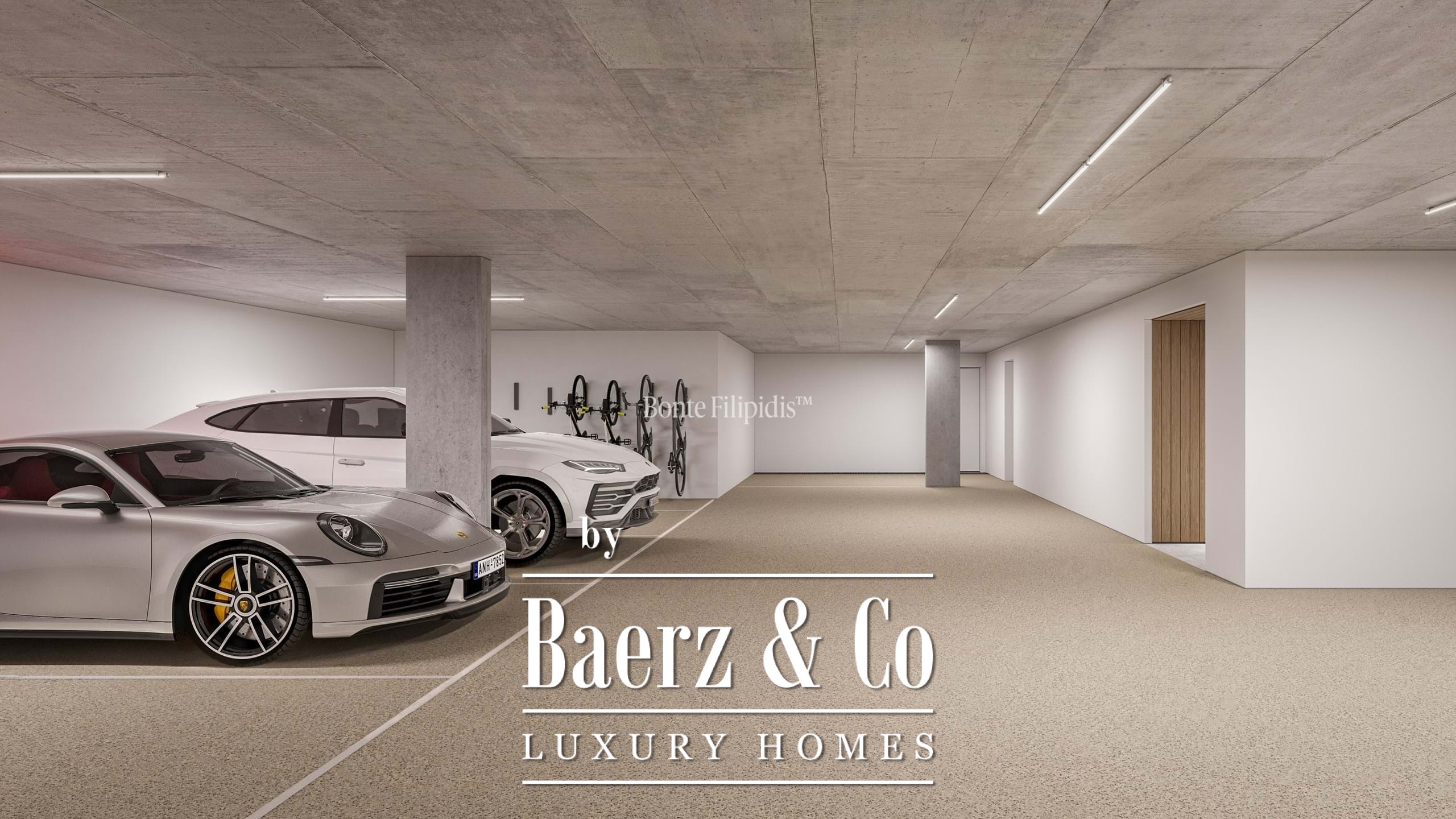 De centrale leefruimte bestaat uit een woonkamer van 55 m² met open haard die uitkomt op een panoramisch terras, een op maat gemaakte keuken voorzien van professionele apparatuur en aparte ruimtes voor werken, fitness, thuisbioscoop en ontspanning. Een garage van 168 m² met elektrische laadpaal, fietsenstalling en huisdierstation voorziet in alle comfort. Voorzieningen zijn onder meer vloerverwarming, geïntegreerde airconditioning, domotica, privé lift, volledige service-ruimten en een klimaatgeregelde wijnkelder.
