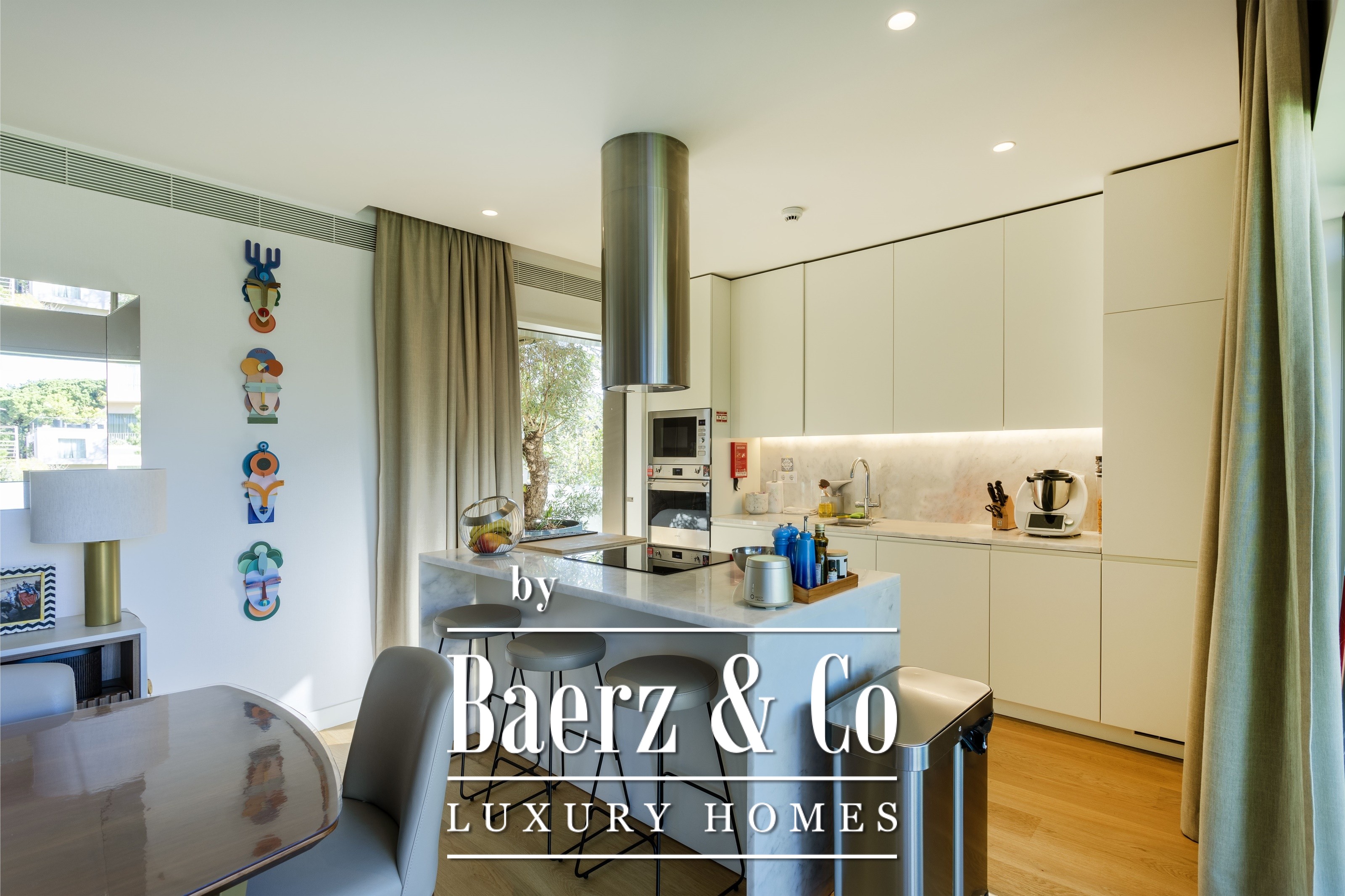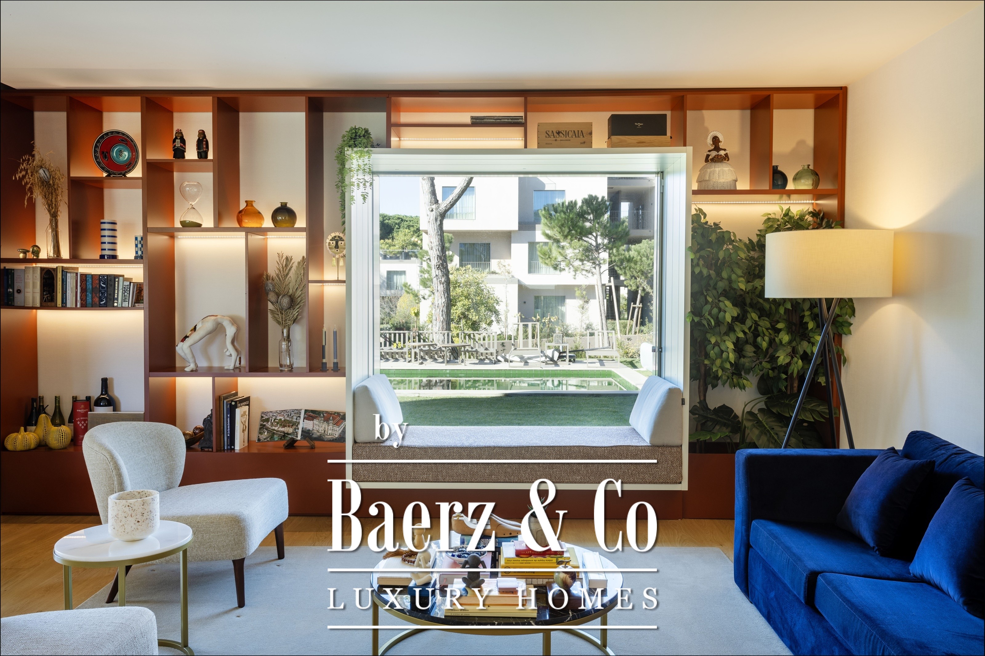 Appartement Cascais verenigt architectuur en rust in het Marinha Prime Condominium, waar design en privacy samenkomen. Deze driekamerwoning met een bruto privéoppervlak van 182 m² biedt een harmonieuze overgang tussen het binnenleven en een fraai aangelegde tuin van 400 m². Iedere slaapkamer is een suite, allen voorzien van inbouwkasten, badkamers met vloerverwarming en rustgevend uitzicht op de tuin. De woon- en eetkamer komen uit op het terras van 33 m² dat direct toegang geeft tot een privé verwarmd zwembad. De volledig uitgeruste keuken grenst aan een afgesloten balkon; een aparte werkkamer, tv-ruimte en wasruimte maken het dagelijks wonen compleet. Volledige airconditioning zorgt voor comfort in elk seizoen.