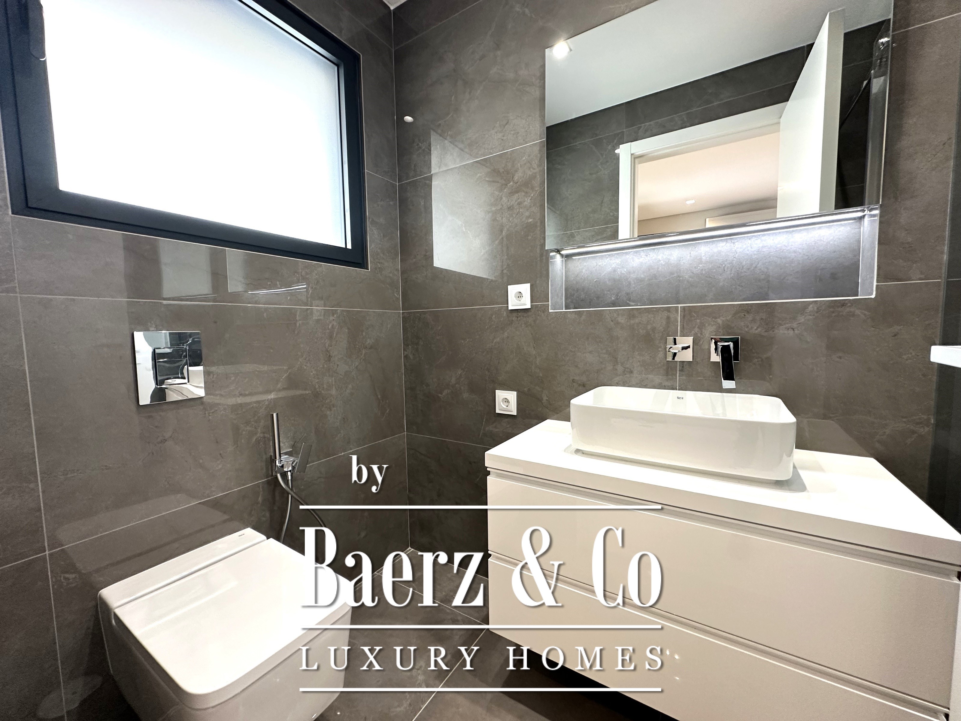 De architectonische lijn leidt naar een indrukwekkend dakterras van 106 m², perfect voor ontspannen buitenmomenten, aangevuld met een technische ruimte van 27 m². Het privézwembad, gelegen aan 124 m² terras, wordt omringd door weelderige tuinen en fruitbomen; een ontwerp gericht op ultieme rust. Geavanceerde smart home- en tuinoplossingen zorgen voor optimale controle en efficiëntie en onderstrepen het vooruitstrevende karakter van de villa. Voorzieningen als een privé garage van 72 m², een wasruimte van 8 m² en airconditioning verhogen het dagelijkse comfort, terwijl een energielabel A getuigt van de duurzame ambitie.