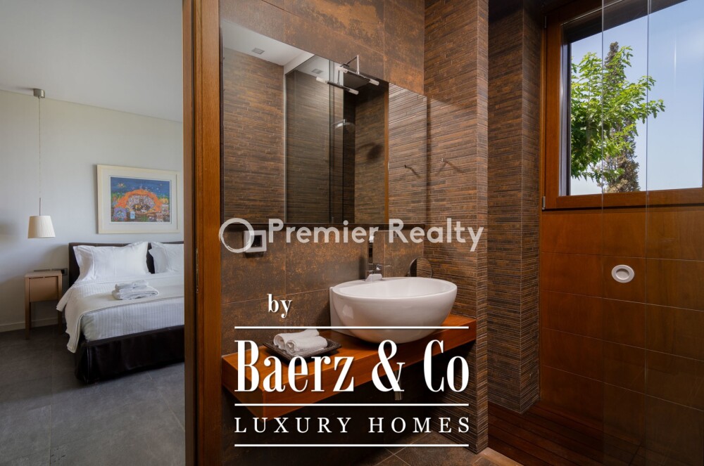 De architectuur van het pand brengt zonovergoten ruimtes en beschutte plekken in balans. De mastersuite op de verhoogde begane grond beschikt over een kingsize bed, een lounge, een privé verwarmd dompelbad, een inloopkast, een privé kantoor en een en-suite badkamer voor optimale rust en comfort. De overige slaapkamers beschikken over badkamers in spa-stijl, uitzicht op de tuin en directe toegang tot buiten. Een apart personeelsverblijf waarborgt discretie en service.