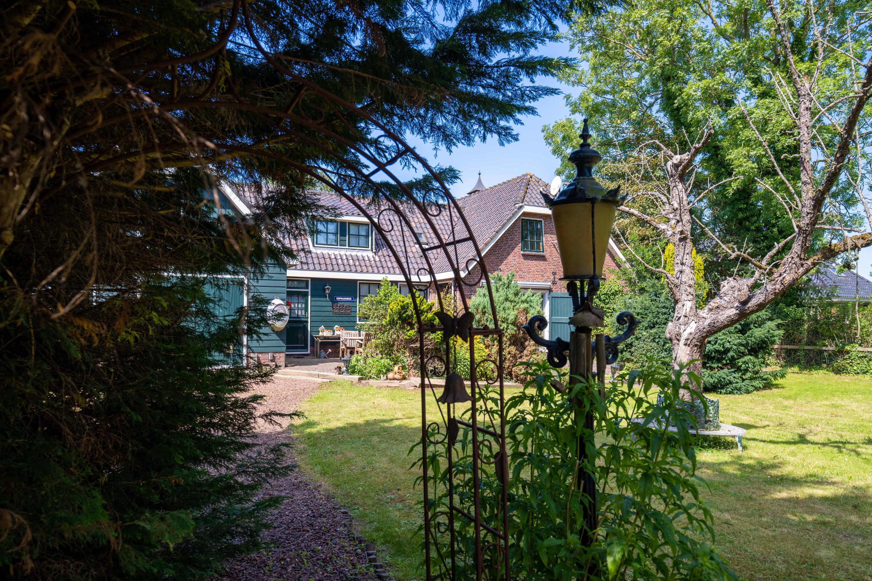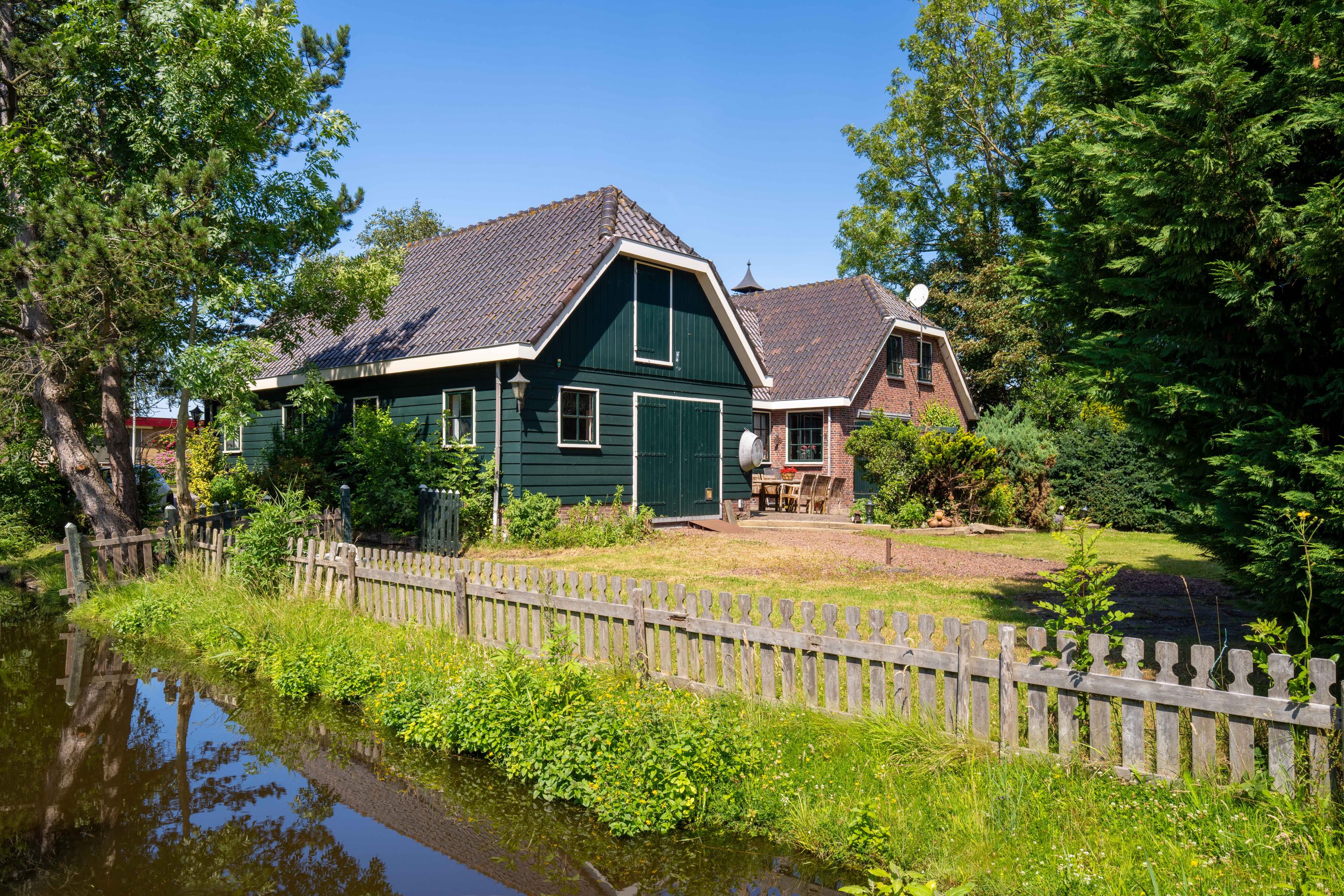 De kavel is echt goed ingedeeld. Een oude bomen opstand rondom het woonerf en en een open boerenweide aan de achterzijde. Sloten rondom, dus ideaal voor het houden van dieren op het erf, of wandelingen met je hond op je eigen terrein.