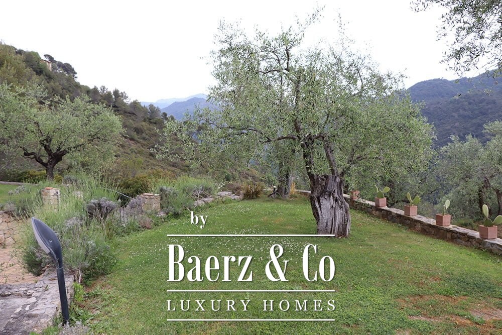 Landhuis Dolceacqua ligt rustig in het landelijke gebied net buiten het middeleeuwse centrum van Dolceacqua. Dit landgoed van 480 m² wordt omringd door eeuwenoude olijfgaarden en biedt een weids uitzicht over het Ligurische landschap, waardoor een unieke sfeer ontstaat voor wie privacy en tijdloze materialen waardeert.