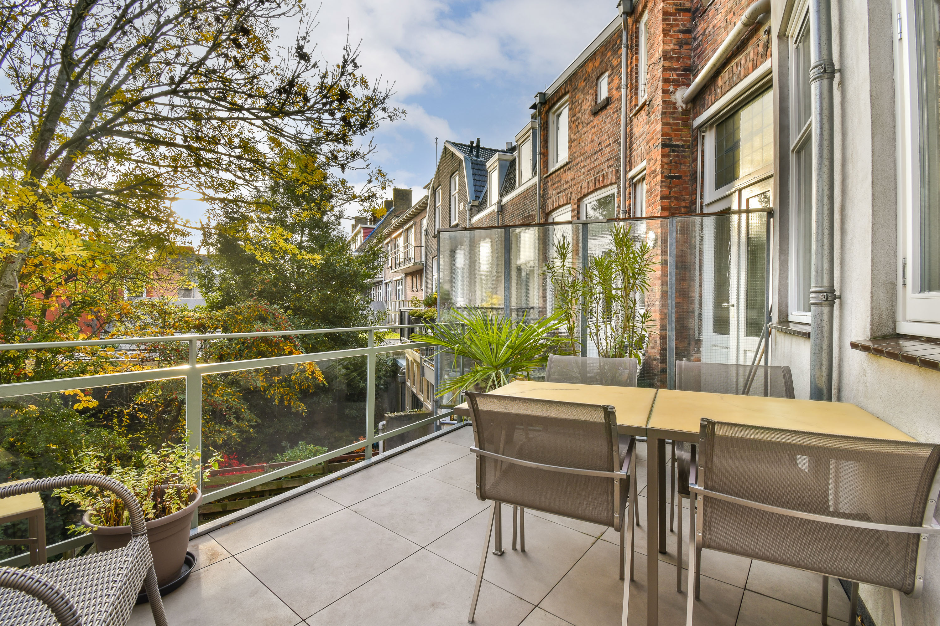 Terras op het oosten, ideaal voor "het kopje koffie in de ochtendzon" met een verrassend leuk zicht op bomen en het oude Centrum.