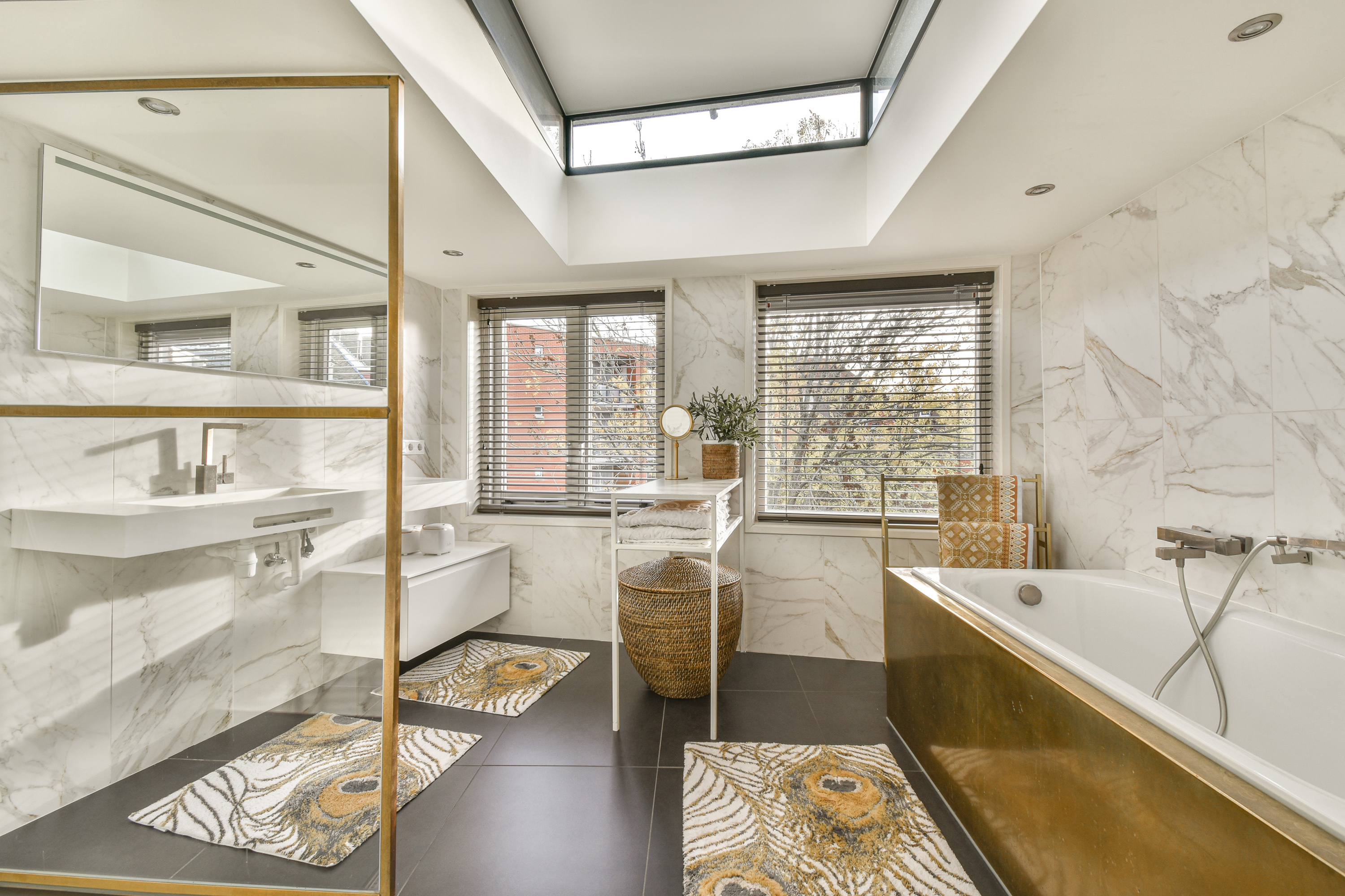 De badkamer is luxe afgewerkt met een fraaie lichtinval, een ligbad, een inloopdouche en een wastafelmeubel. Een vaste kast met opstelplaats CV-combiketel.