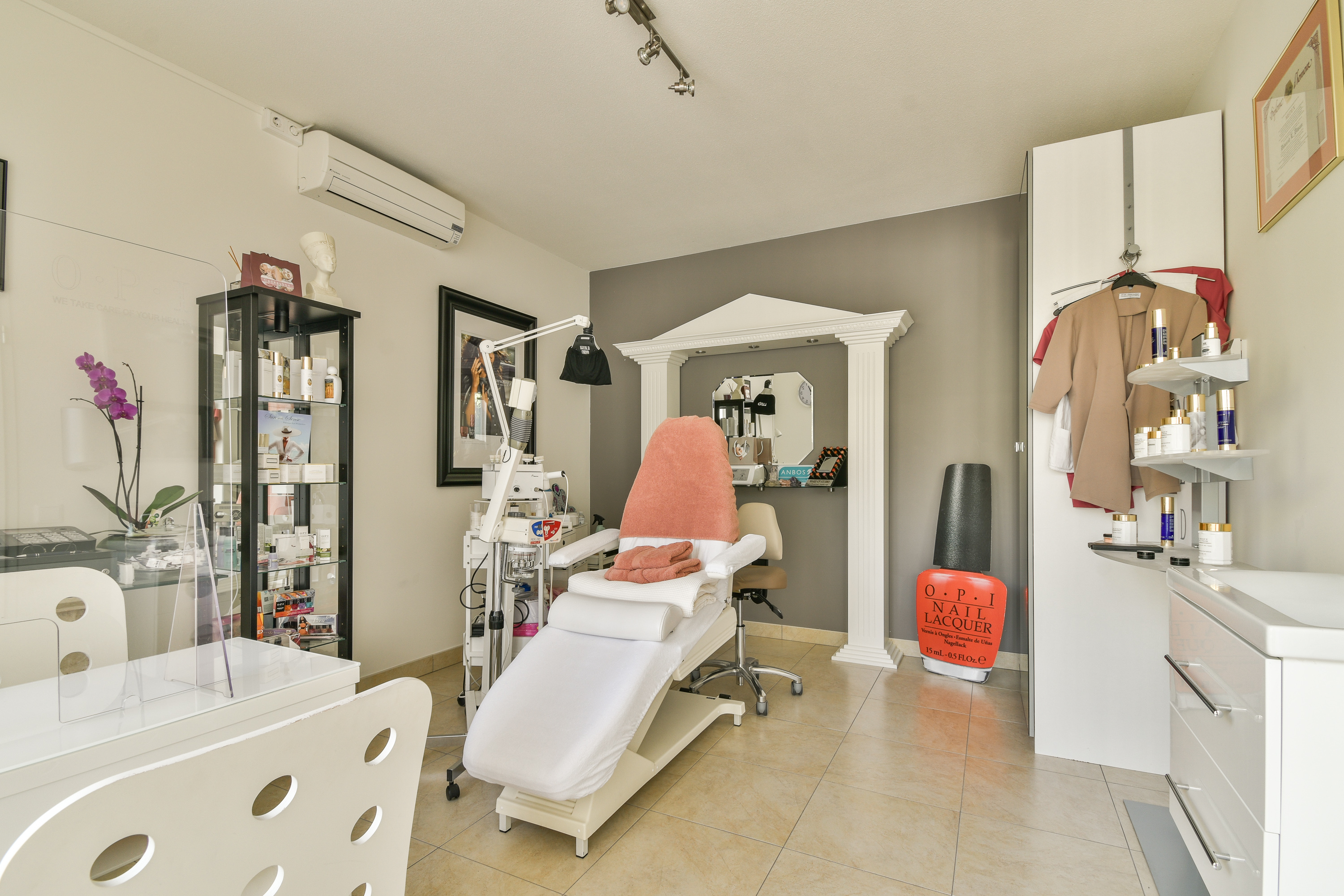 De praktijkruimte, welke ook dienst kan doen als hobbyruimte of slaapkamer, is voorzien van een wastafelmeubel en dubbele deuren naar de tuin.