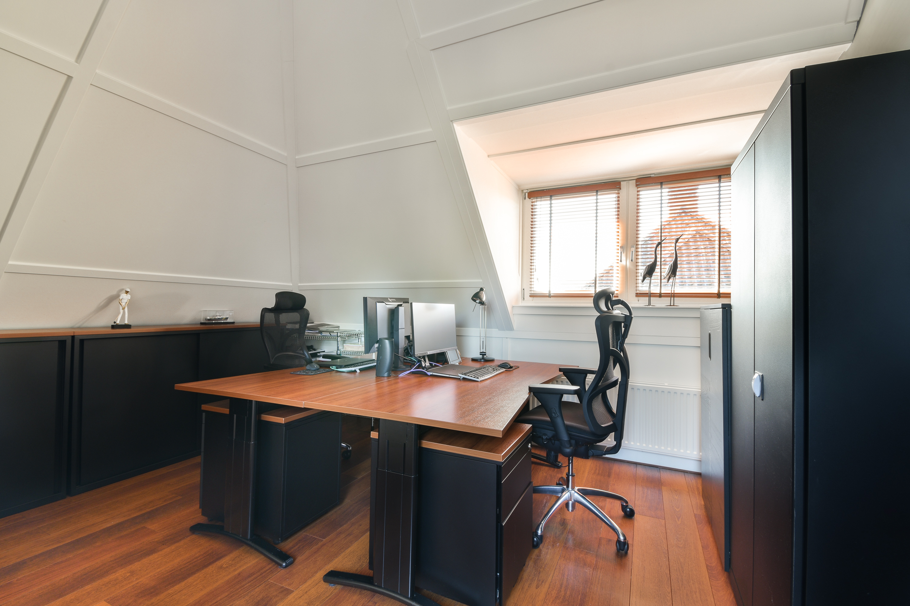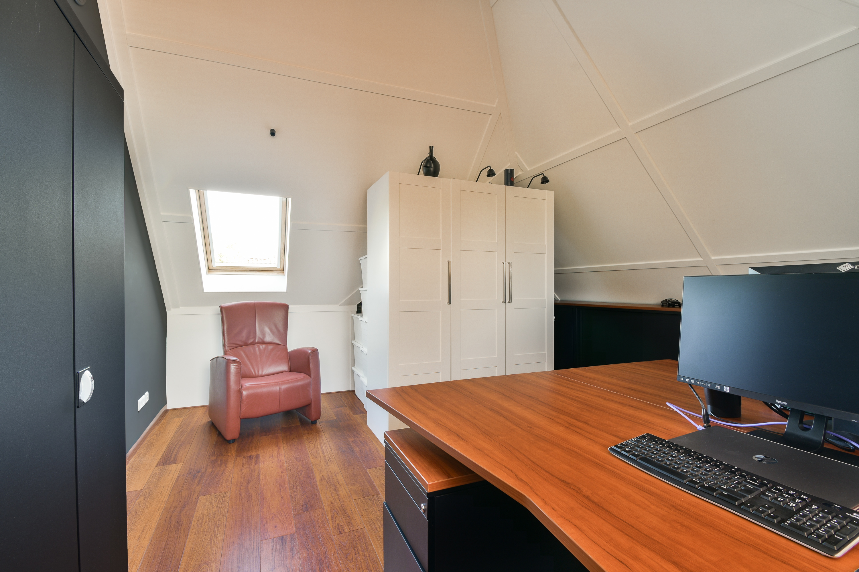 Deze slaapkamer is op dit moment in gebruik als luxe werkruimte met dakkapel en een dakvenster.