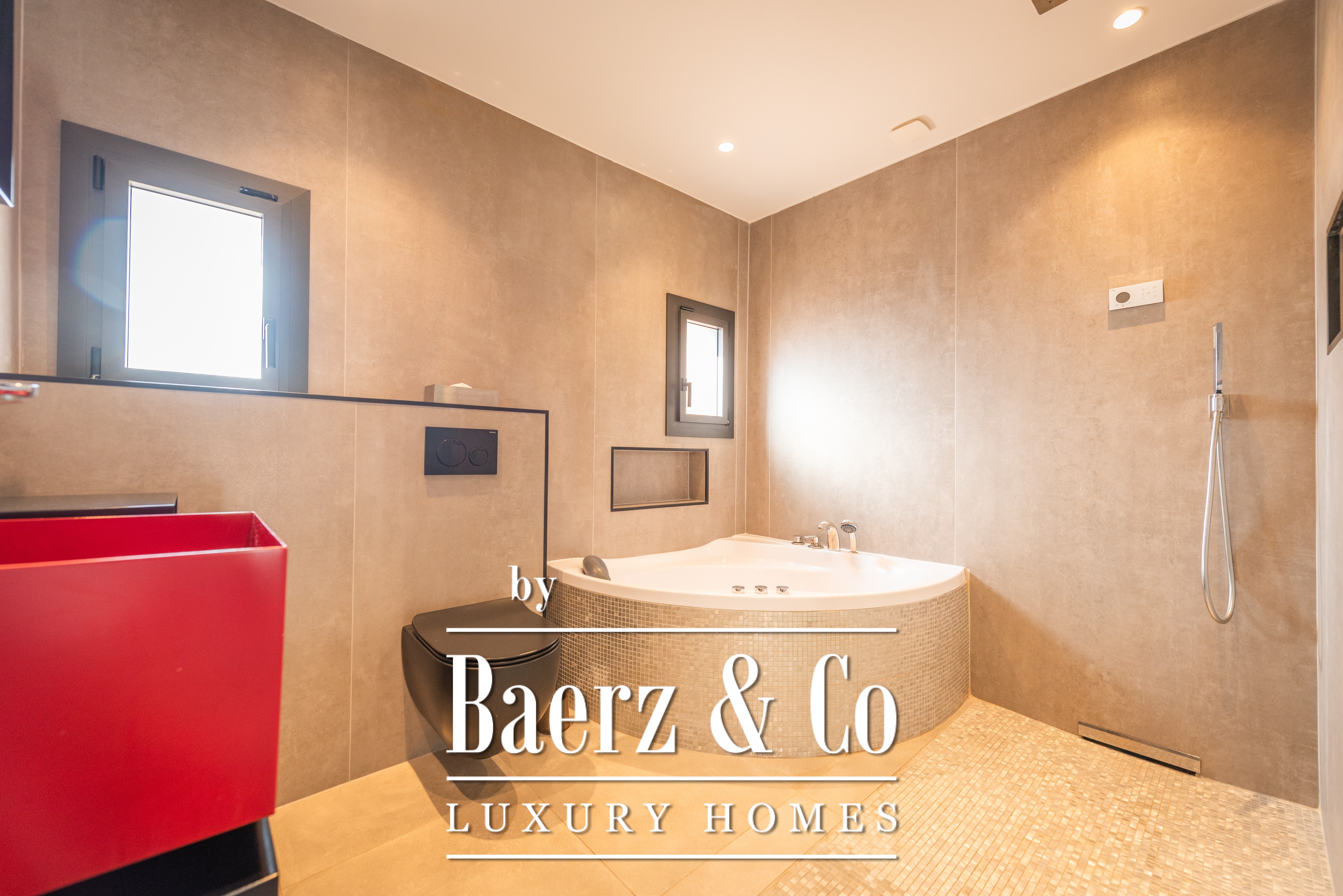 De hoofdwoning verwelkomt met een open leefruimte van 100 m², harmonieus en uitnodigend van opzet. Op de begane grond bevindt zich een master suite die directe privacy en comfort biedt; boven zijn twee extra slaapkamers, waarvan één met een privéterras met panoramisch uitzicht. Een zelfstandig studio, afzonderlijk toegankelijk, verhoogt de flexibiliteit discreet.