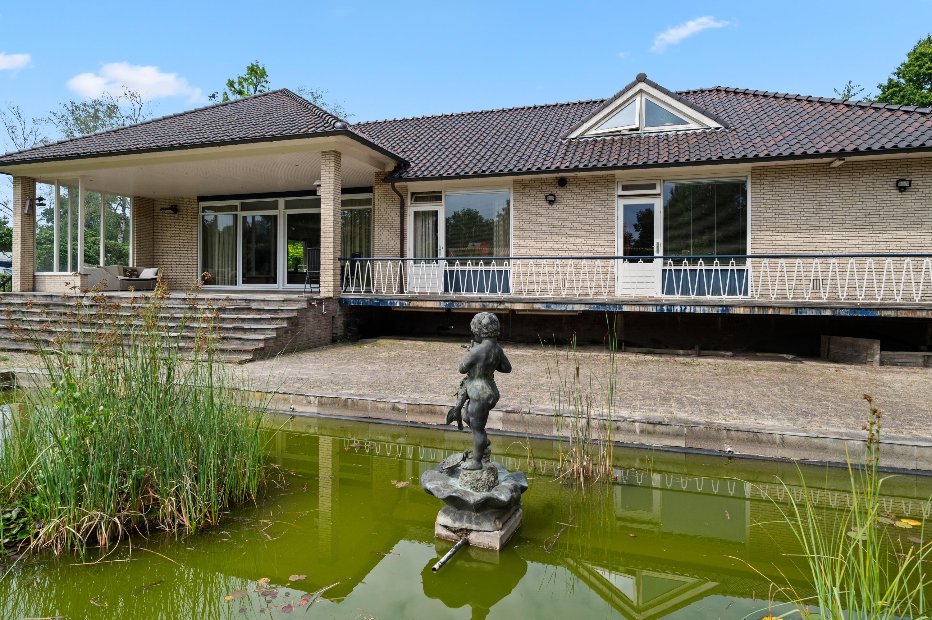 De villa ligt op een royaal perceel, aan de rand van de villawijk en buitengebied met veel privacy en geflankeerd door andere ruime kavels. Een stijlvol hek met elektrische sierpoort vormt de chique entree. De botanische tuin – ontworpen door Harry Menkenhorst – biedt elk seizoen een uniek decor met exotische planten, een vijverpartij en bronzen fontein. Er is ruimte voor een zwembad zonder concessies aan zicht of rust. Het overdekte terras maakt het buitenleven compleet.