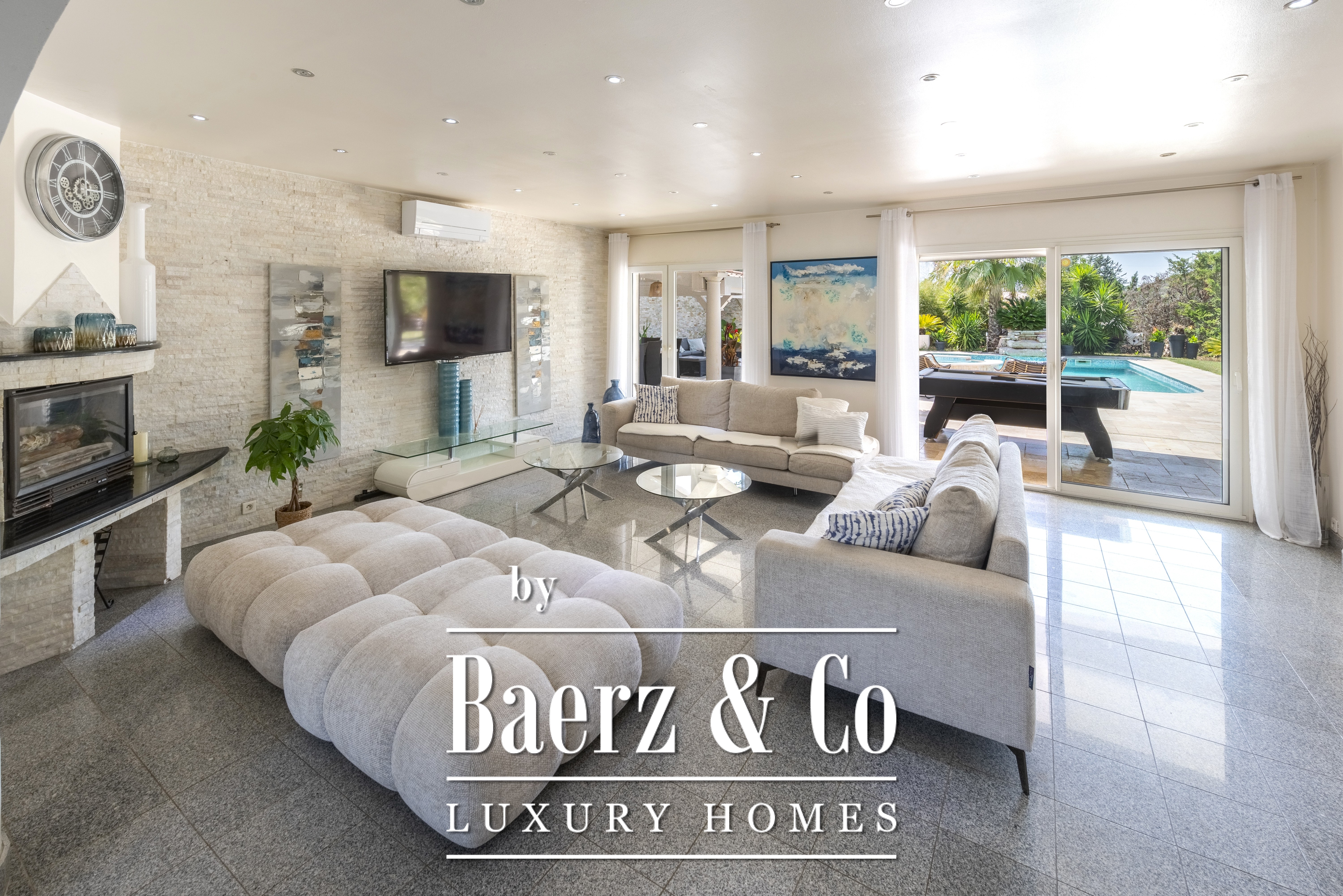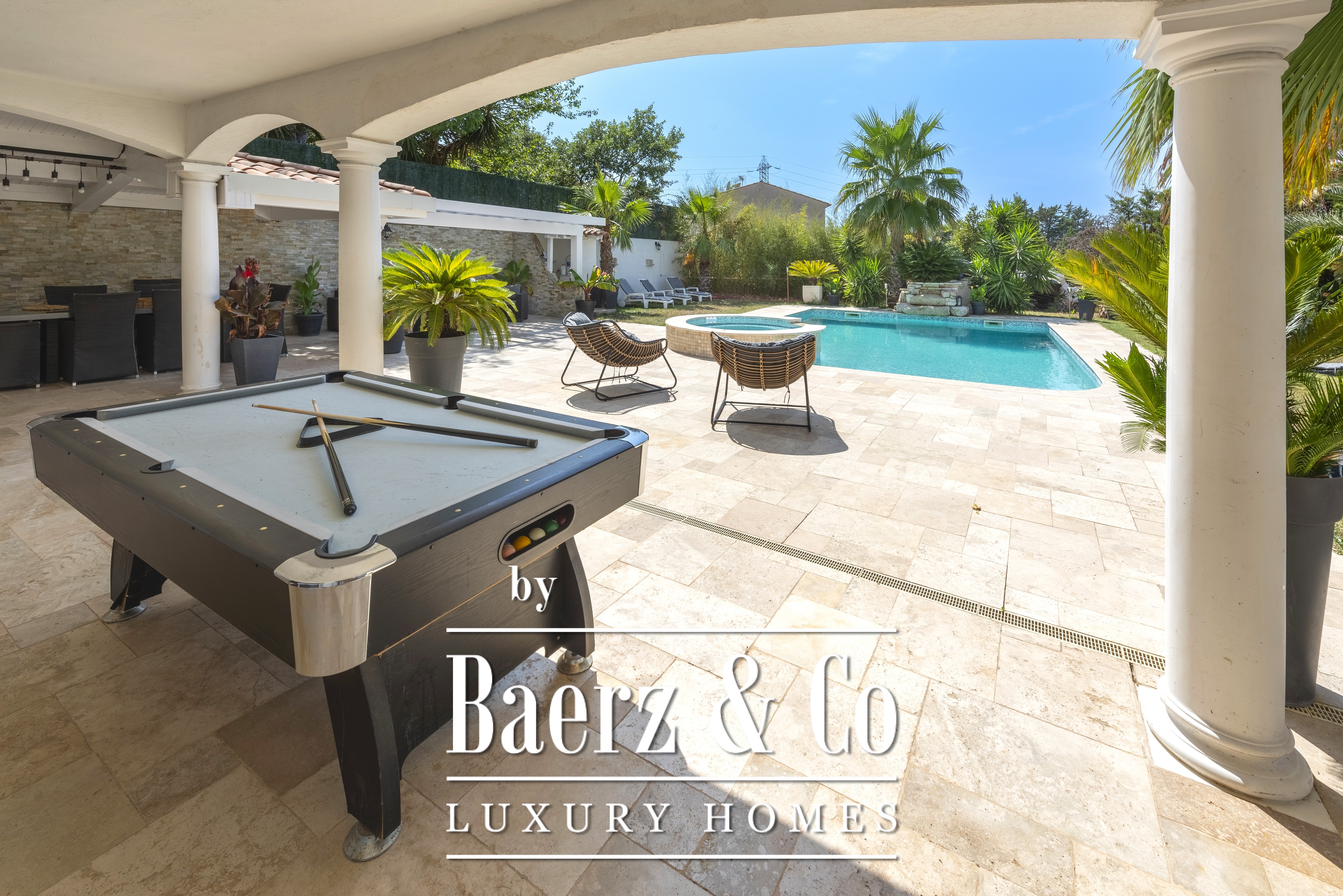 Villa Fréjus biedt een villa van 172 m² te koop aan, ontworpen rond royale ruimtes en verfijnd licht, gelegen in een privé en beveiligd domein. Deze woning bevindt zich in een rustige woonomgeving en biedt direct toegang tot voorzieningen zoals winkels, scholen en hoofdwegen. Villa Fréjus verwelkomt u met een lichte leefruimte en een volledig uitgeruste open keuken, optimaal ingericht voor gastvrijheid. Op het westen gericht loopt het leefgedeelte vloeiend over in een ruim terras met uitzicht op het zwembad en de aangelegde tuin. Het slaapgedeelte omvat vier slaapkamers, een grote badkamer, een aparte douchekamer en een praktische wasruimte. Het perceel van 1.082 m² is ingericht met zowel open als overdekte terrassen en creëert zones voor zomerse diners, ontspanning bij het zwembad en een eigen jacuzzi. Granieten vloeren, vloerverwarming, omkeerbare airconditioning en elektrische rolluiken benadrukken de aandacht voor kwaliteit en comfort. De villa beschikt over een garage en ruime binnen- en buitenparkeergelegenheid, waardoor privacy en gemak worden gegarandeerd. De energieklasse B staat voor een uitgebalanceerde moderne efficiëntie.