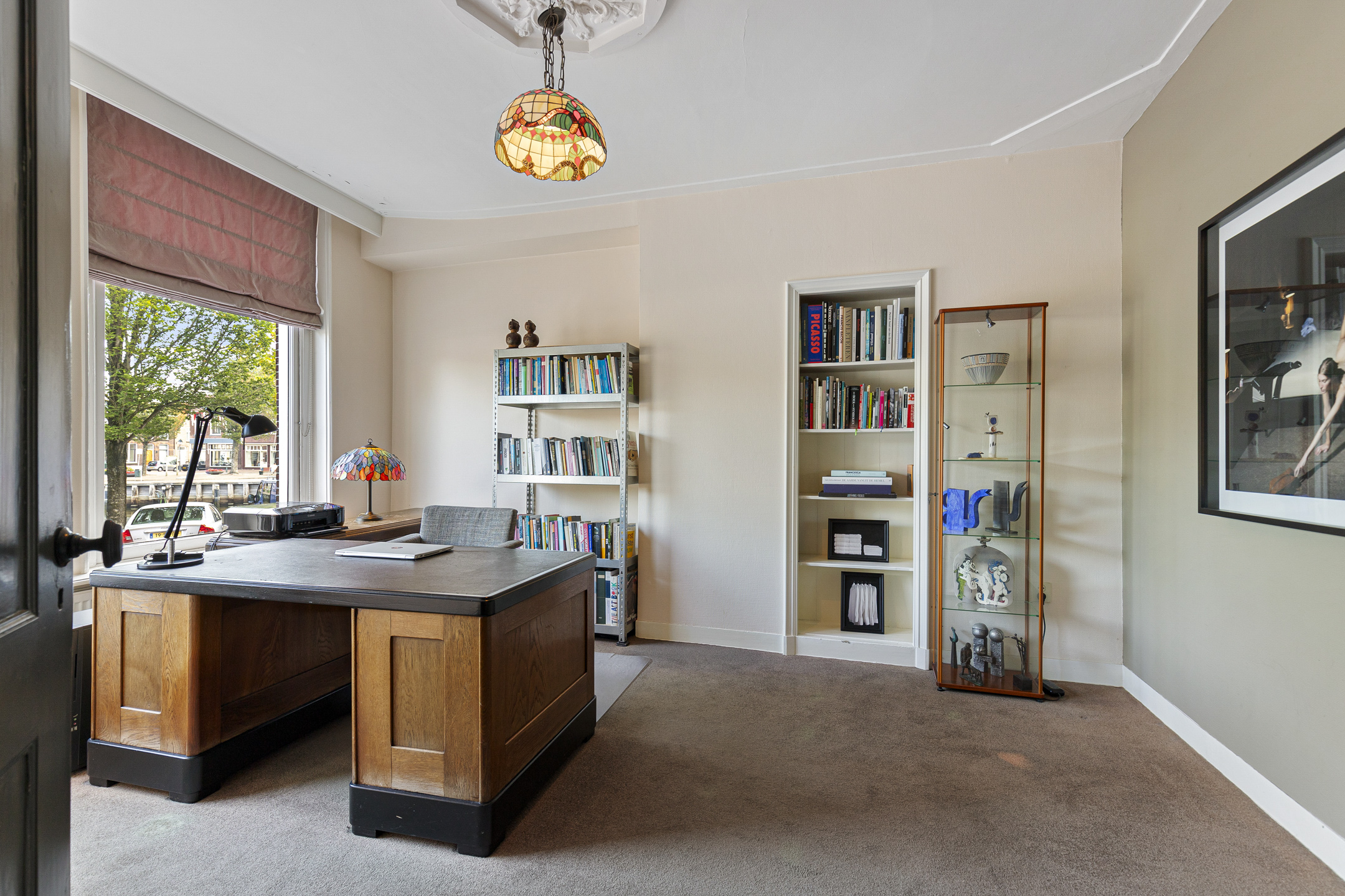 De bel-etage biedt onder meer een inspirerende (werk)kamer met uitzonderlijk uitzicht over de haven. De stijlvolle tuinkamer wordt nu gebruikt als master bedroom met en-suite badkamer. Openslaande deuren leiden naar de besloten stadstuin op het zuiden: een zeldzame oase van rust en privacy midden in de stad.