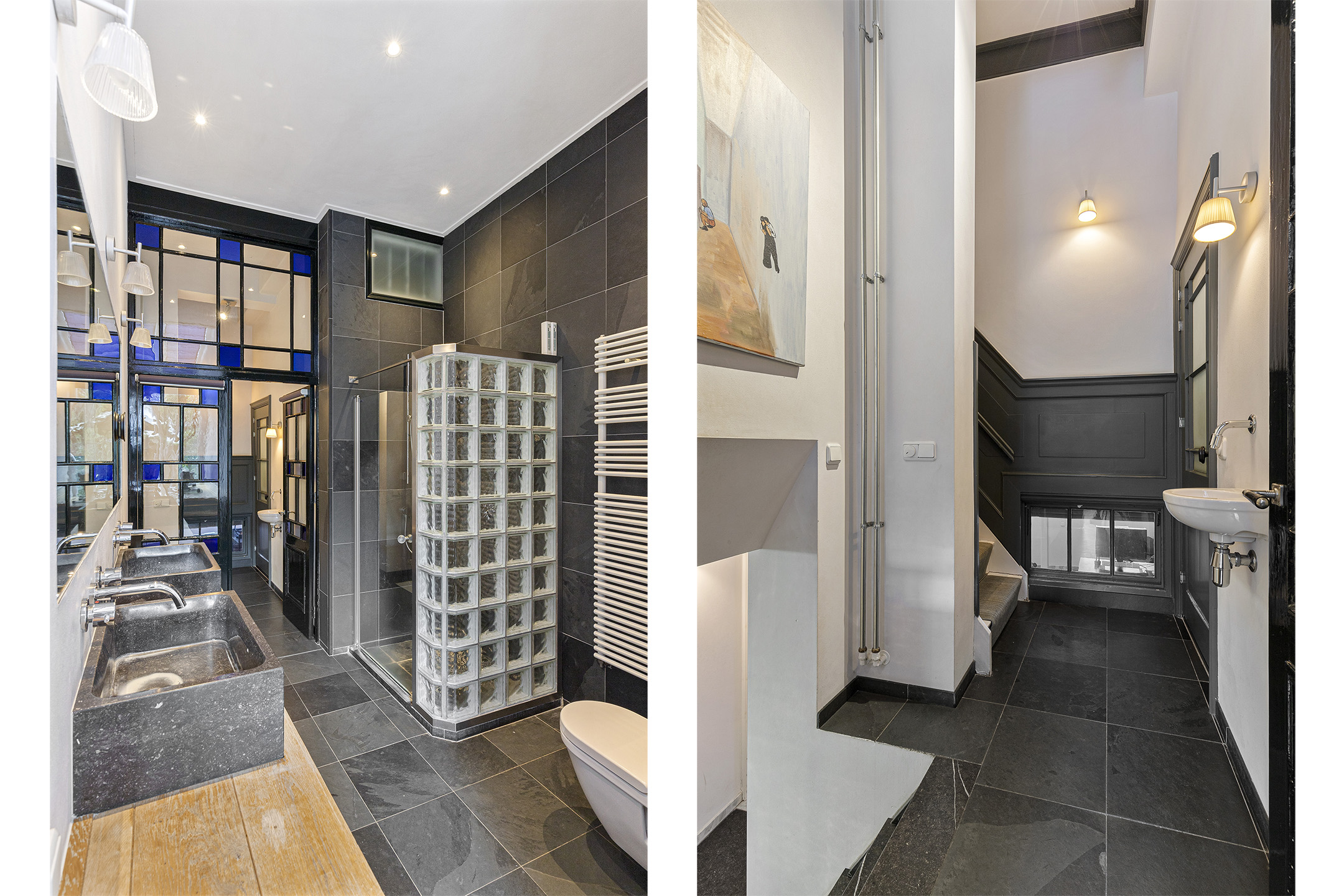 De authentieke gevel met gouden leeuwenkopjes, het middenrisaliet en de zesruitsvensters geven dit pand allure. Binnen ervaart u de ruimte dankzij hoog geornamenteerde plafonds, brede originele houten vloeren, marmeren schouwen en verfijnde lambriseringen. De vier verdiepingen tellen maar liefst negen ruime kamers en drie badkamers, praktisch ingedeeld en verrassend royaal.