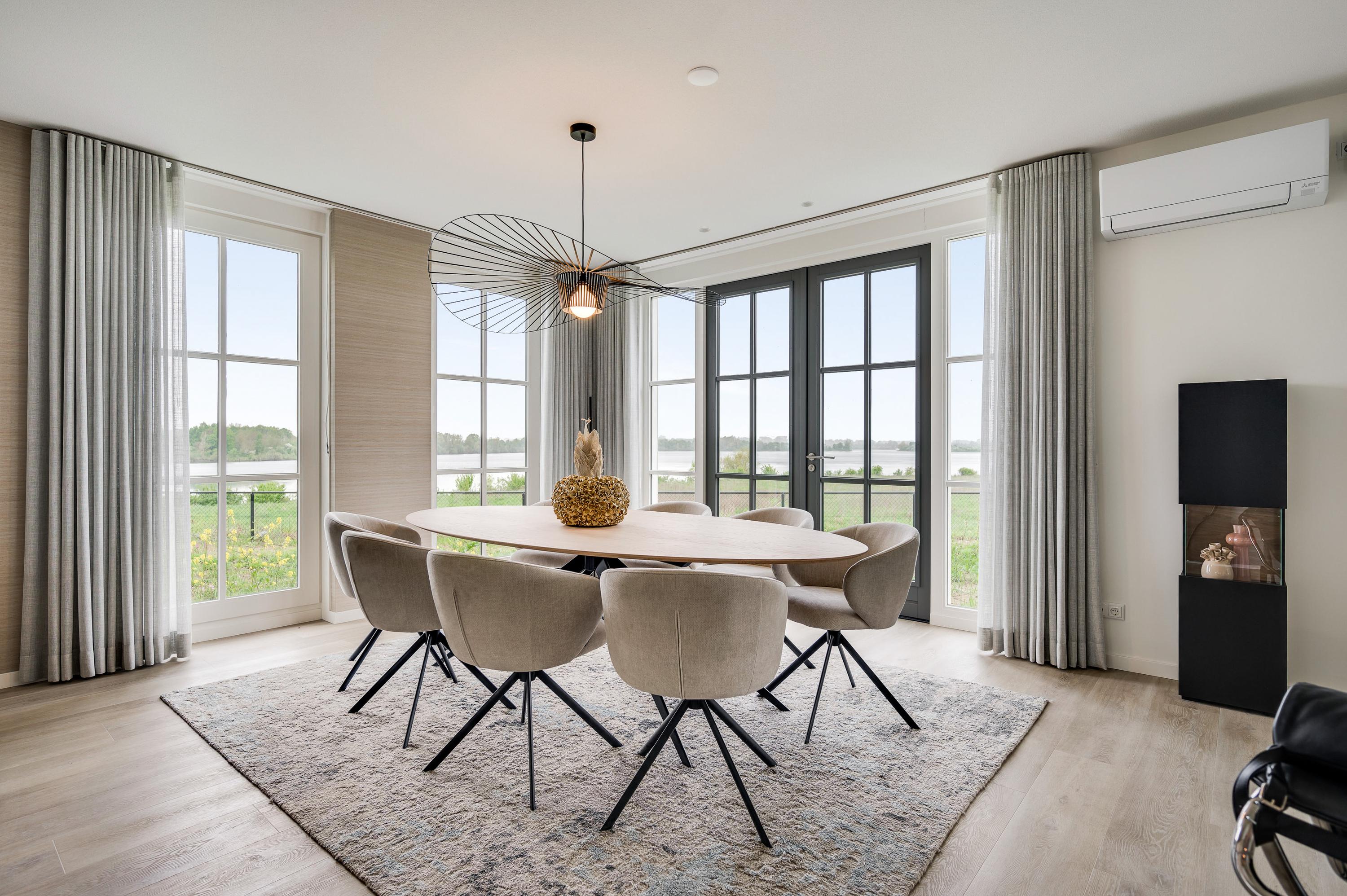 Vanuit de eetkamer kijk je uit over het water en kun je genieten van een geweldig uitzicht.