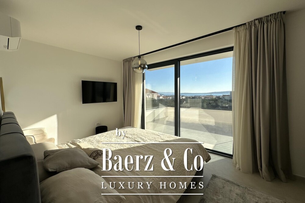Townhouse Kaštela vertegenwoordigt eigentijds mediterraan wonen met uitzicht op zee, gerealiseerd in een verfijnde villa van 245 m² op een royaal perceel van 938 m². Deze recent opgeleverde townhouse Kaštela beschikt over drie slaapkamers en drie badkamers; de indeling biedt helderheid en ruimtelijkheid verdeeld over twee verdiepingen. Op de begane grond vormen brede open ruimtes het centrale hart: een zorgvuldig ontworpen keuken met hoogwaardige apparatuur, een eetgedeelte en een zitkamer die samen uitlopen op een terras met zicht op het zwembad en het zonneterras. Een en suite slaapkamer, gastentoilet en wasruimte maken deze verdieping compleet en zorgen voor comfort en functionaliteit.