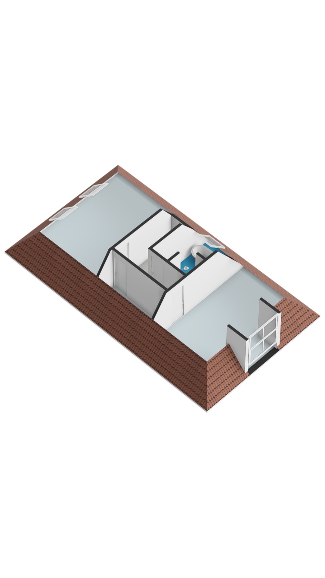 Via de vaste trap bereik je de tweede verdieping. Hier bevinden zich nog eens twee slaapkamers, beide voorzien van daglicht via dakkapellen/dakramen.