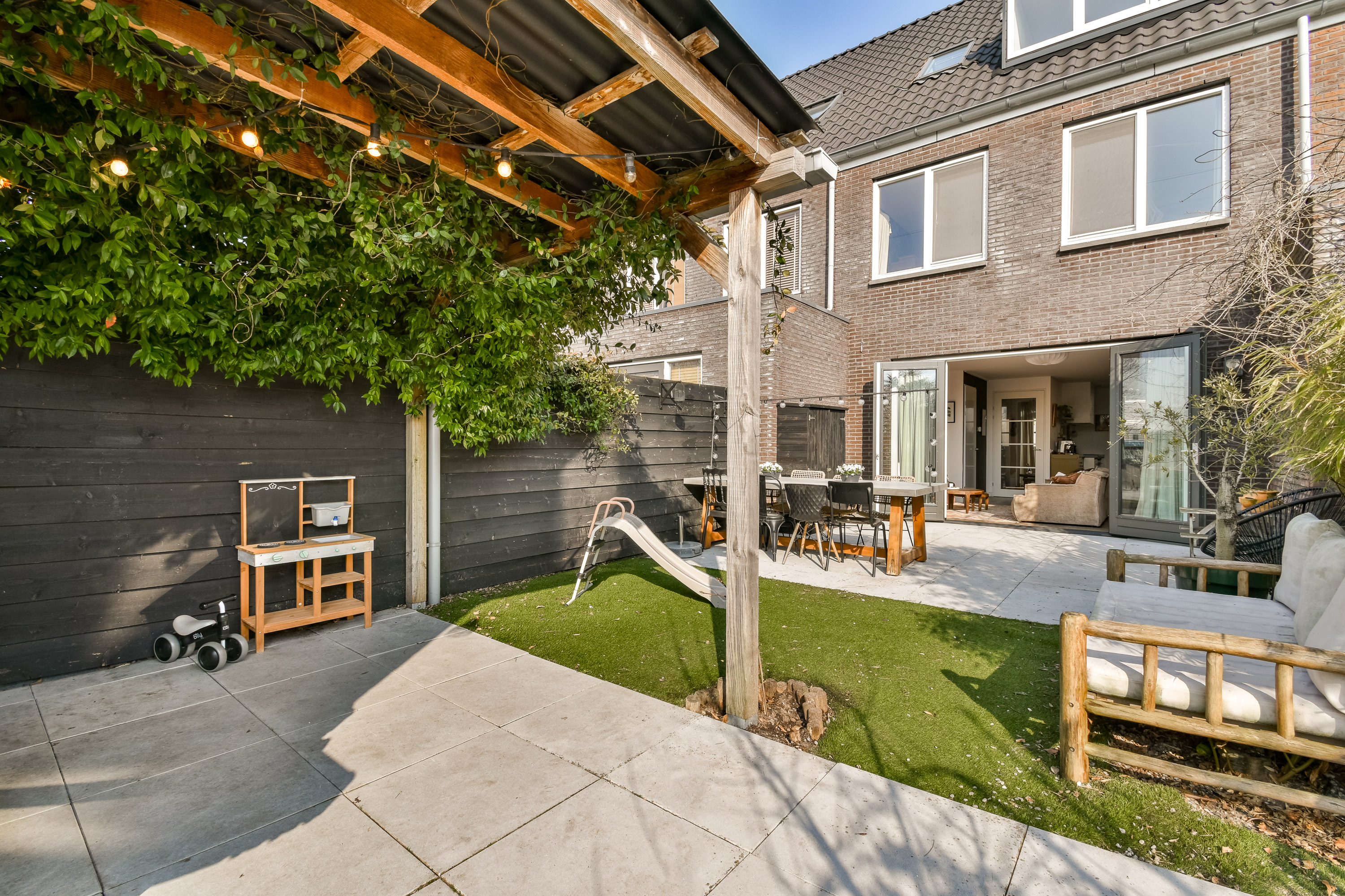 - Fraai aangelegde tuin op het Zuiden met privacy, berging en achterom