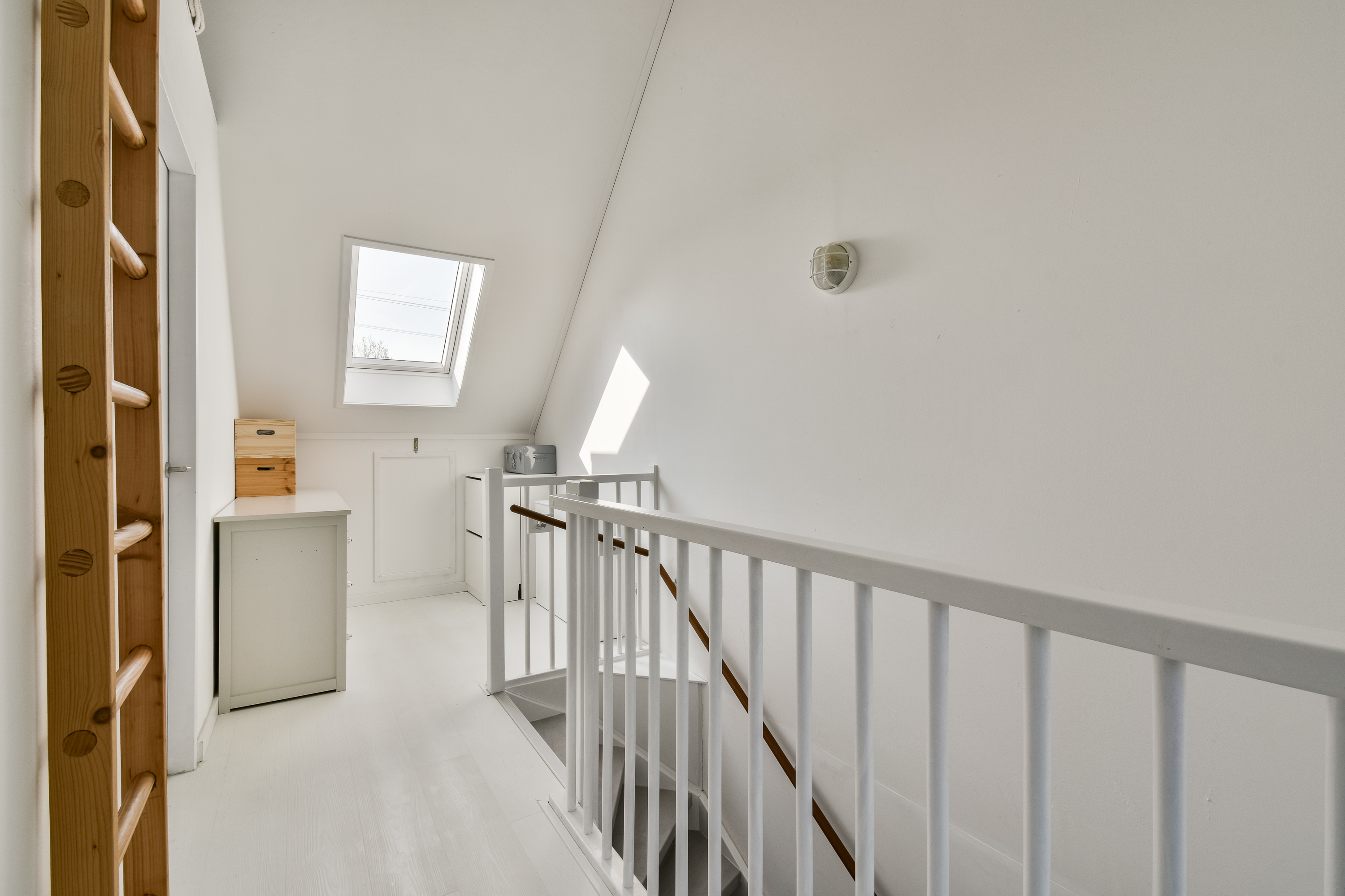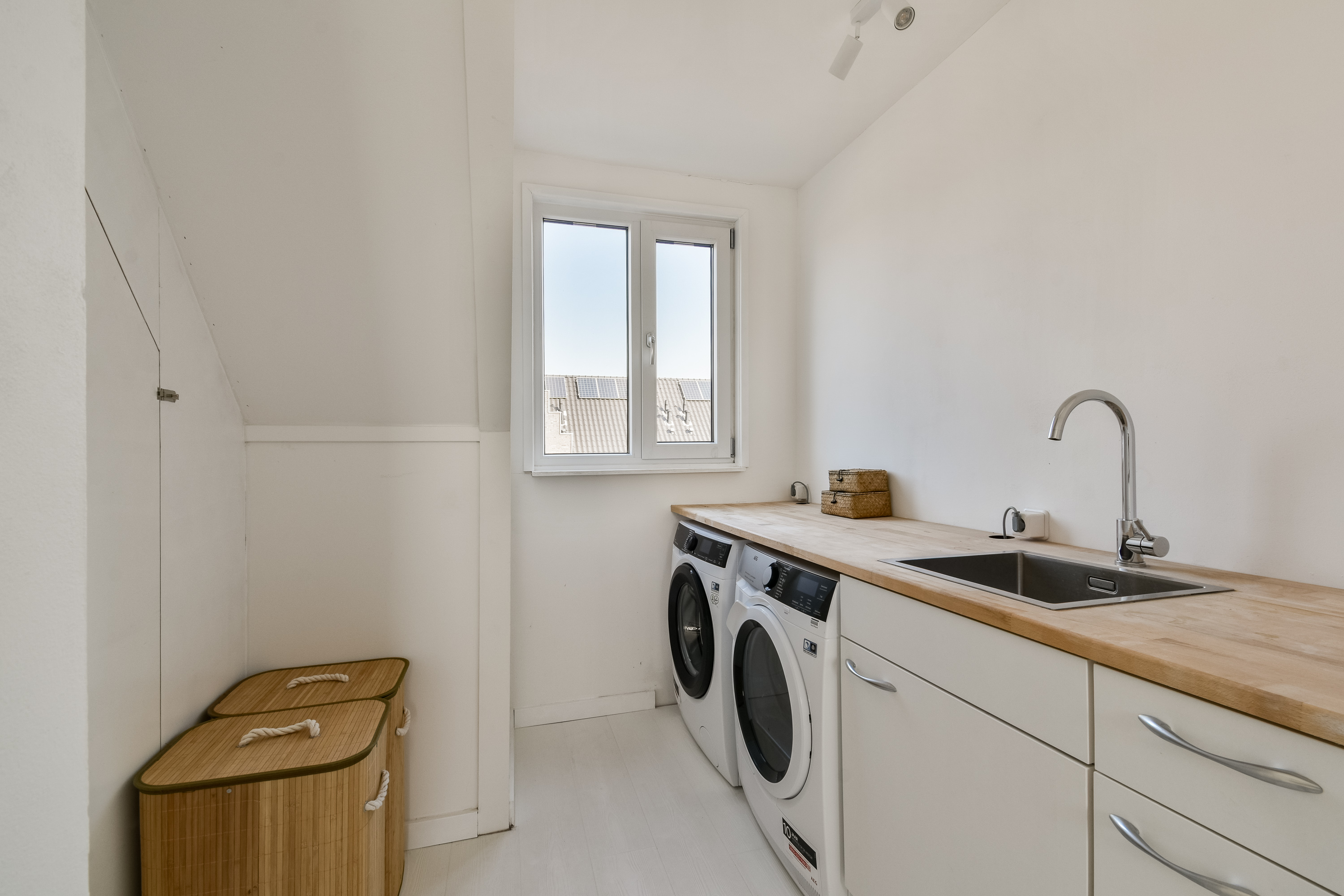Via de vaste trap bereikt u de tweede verdieping. Hier bevinden zich nog eens twee volwaardige slaapkamers, beide voorzien van daglicht. Daarnaast is er een separate ruimte met de wasmachine- en drogeraansluiting en de technische installaties.