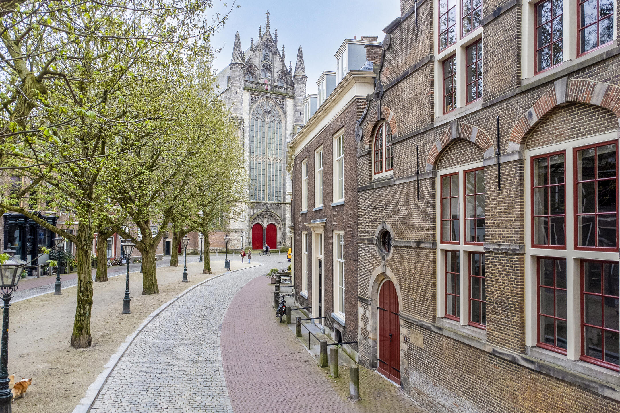 De Hooglandse Kerkgracht is zondermeer één van de mooiste lanen van Leiden. Sinds de herinrichting in 2004 is deze voormalige gracht autoluw en staat vooral bekend om de vele monumentale gevels en het sfeervolle middenterrein waar twee prachtige bomenrijen ‘s-zomers zorgen voor een haast Mediterrane sfeer. Een mooiere locatie in het centrum van Leiden is nauwelijks denkbaar.
