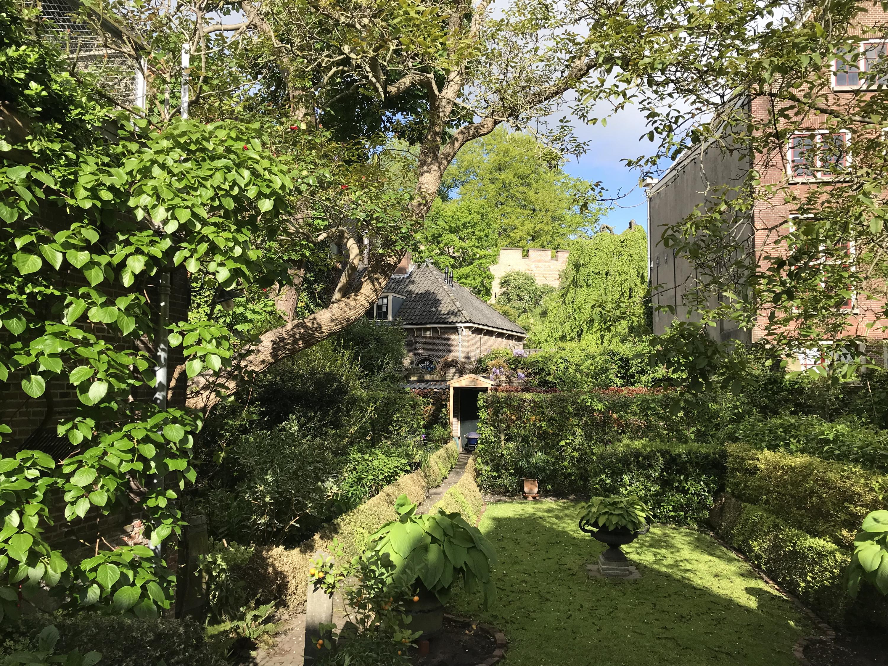 De tuin is wellicht wel het échte ‘unique selling point’ van dit object .... een tuin met meerdere terrassen en zithoekjes voor schaduw en zon; een tuin mét achterom; een tuin met prachtige volwassen bomen, kleurrijke struiken en bloemen en plek voor een eigen groentetuin; én een tuin met prachtige doorkijkjes naar bijv. ‘De Burcht’ en de Hooglandse Kerk.