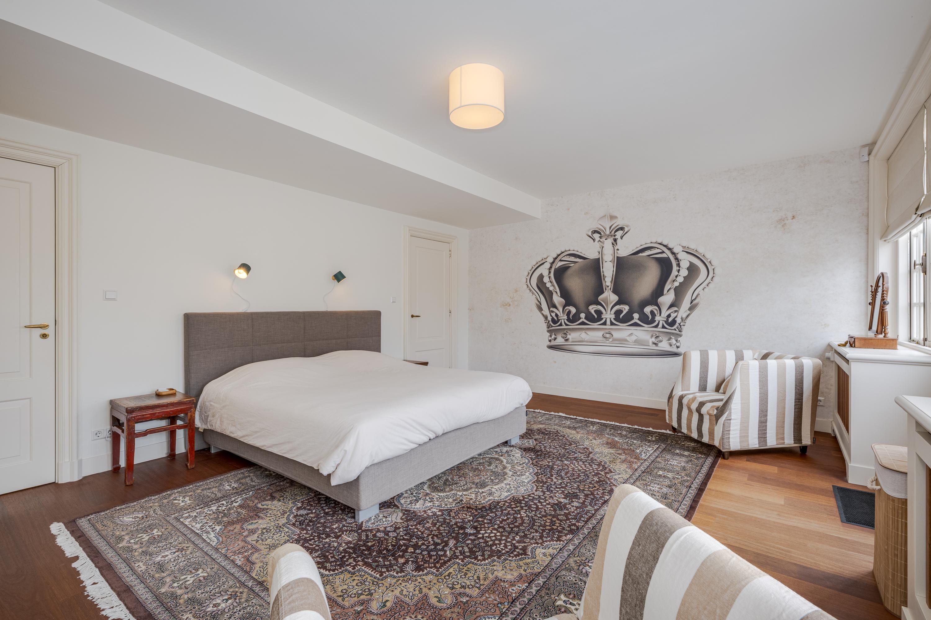 Overloop met kastenwand. Aan de achterzijde de zeer ruime ouderslaapkamer met eigen dakterras, kastenwand en badkamer en suite. Deze badkamer staat ook in verbinding met de ruime kamer aan de voorzijde. Deze is thans in gebruik als werkkamer maar, is ook uitermate geschikt als slaapkamer.