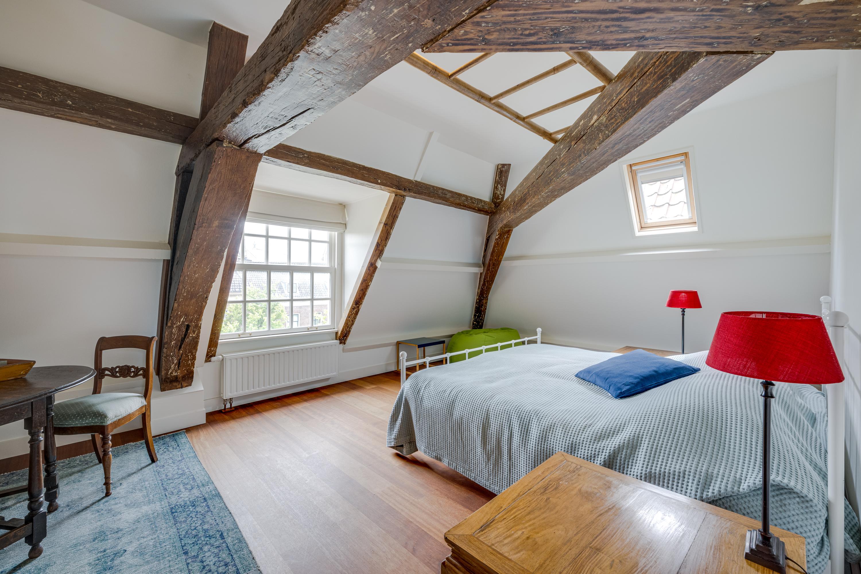 Overloop, badkamer voorzien van douche, toilet en slaapkamer. Zeer ruime en sfeervolle slaapkamer aan de voorzijde met dakkapel en vaste kast. Hier bevindt zich ook een luik met vlizotrap voor toegang tot de grote zolderruimte met o.a. de opstelling voor de CV. Verder aan de achterzijde nog één kleinere slaapkamer met dakkapel.