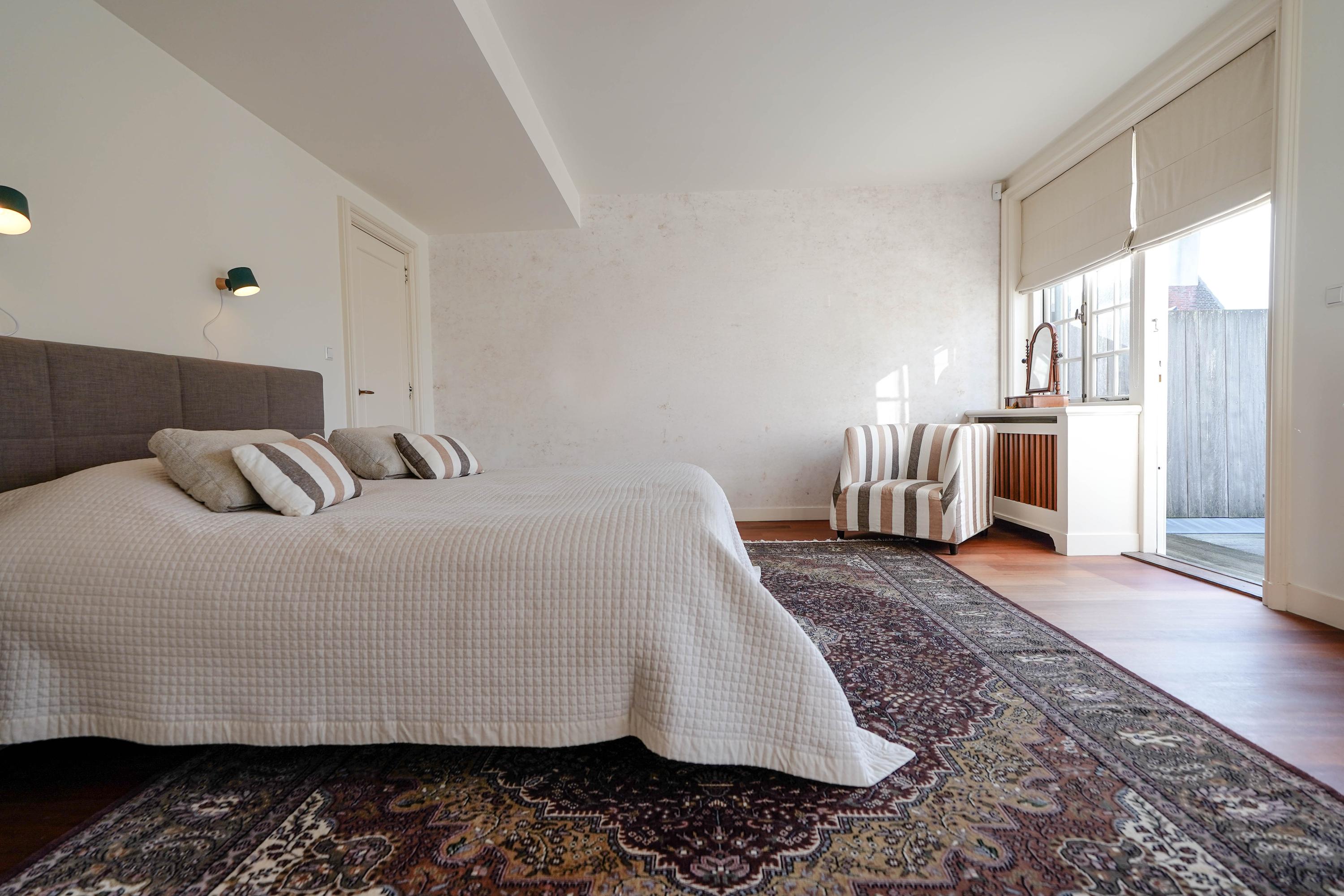 ouderslaapkamer met eigen dakterras, uitgebreide kastenwand en luxe badkamer en