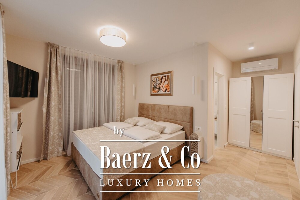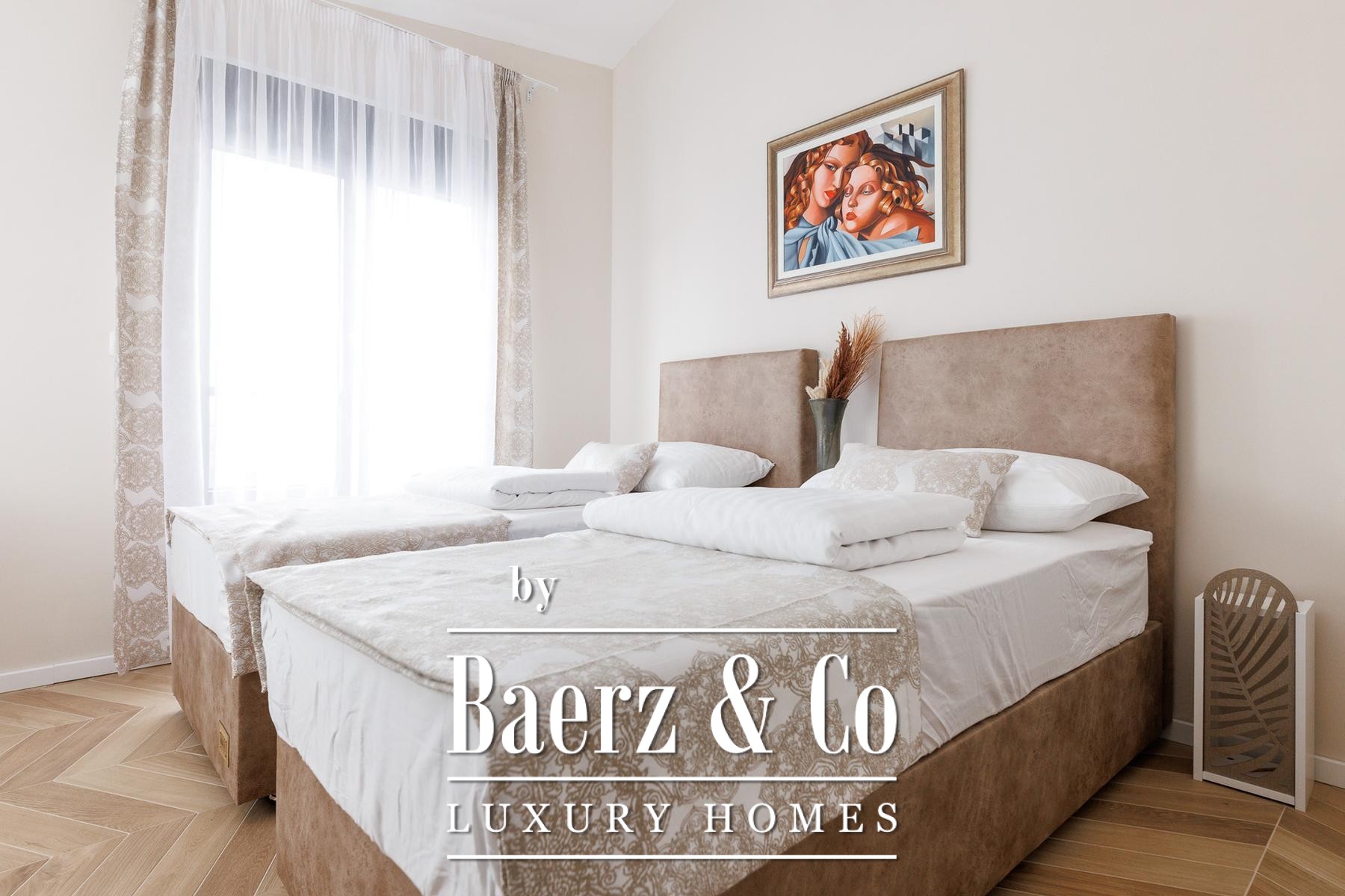 Via de marmeren trap bereikt u de bovenverdieping, waar twee slaapkamers met tweepersoonsbed en privéterras uitkijken op de blauwe uitgestrektheid van de Kvarner, aangevuld met een vierde kamer met aparte bedden en een extra badkamer. Buiten nodigen de fraai aangelegde tuin van 700 m², een zonneterras en een terras met barbecue uit tot ontspannen in de zon.