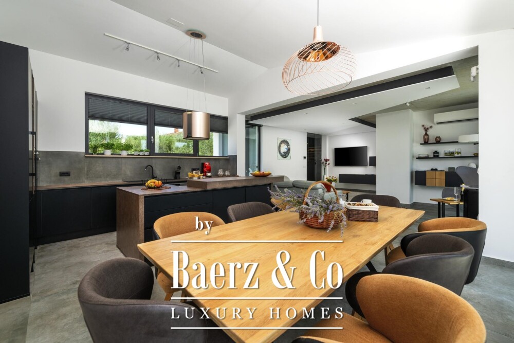 Buiten nodigt het verwarmde zwembad van 50 m² uit tot zwemmen gedurende het hele jaar, terwijl de stranden van de Adriatische Zee op minder dan een kilometer afstand liggen. De ingetogen luxe zet zich voort in de aangelegde tuin met 1.575 m² bouwgrond. De lokale supermarkten van Marčana zijn op loopafstand bereikbaar; de culturele dynamiek van Pula en de internationale luchthaven liggen op ongeveer 30 minuten rijden. Deze villa te koop in Marčana combineert hedendaagse elegantie met optimale privacy tot een zeldzaam Istrisch toevluchtsoord.