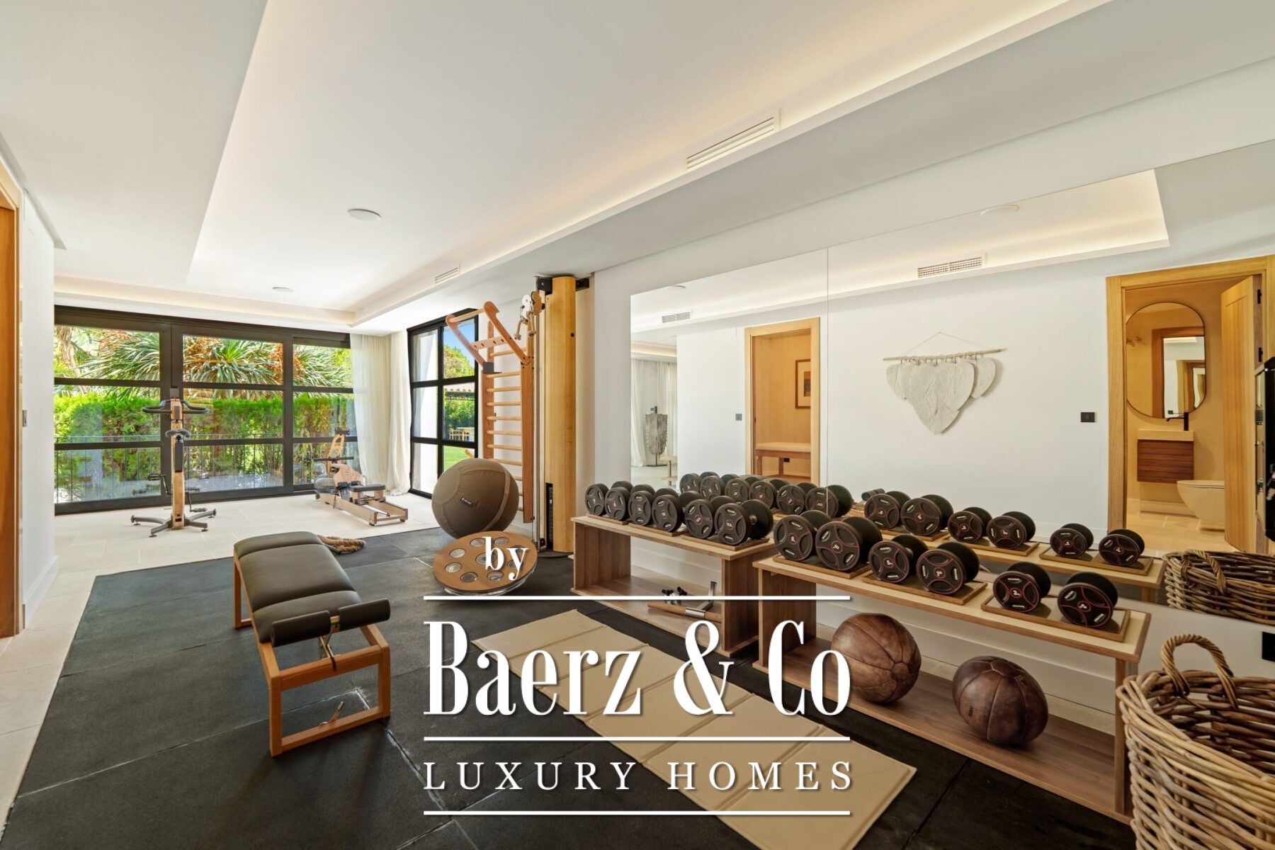 The villa is designed for a lifestyle of wellness, leisure, and indulgence. A private home gym allows for daily workouts without leaving the comfort of home, while the exclusive wine bodega provides the perfect space to showcase and enjoy a curated collection. For entertainment, the villa boasts a home cinema and an additional leisure room, ideal for hosting gatherings with family and friends.