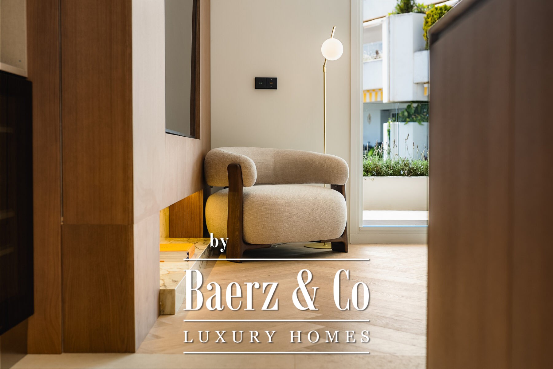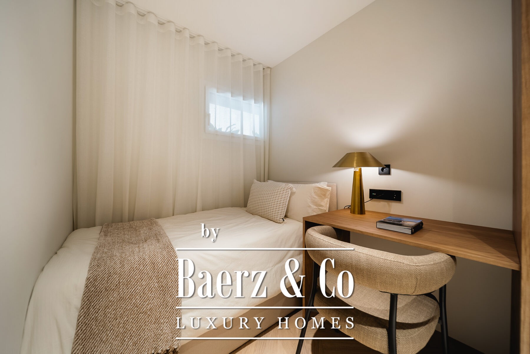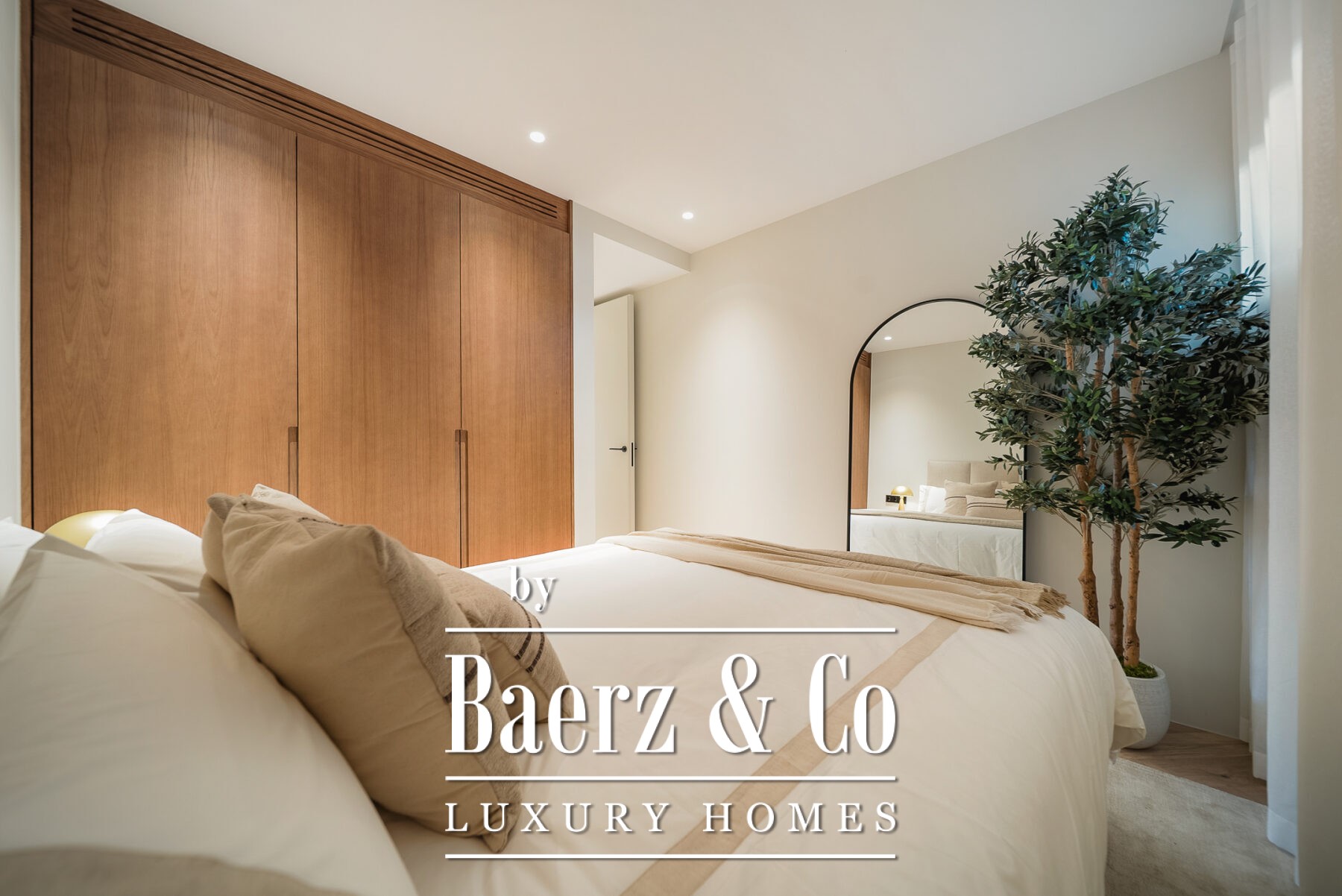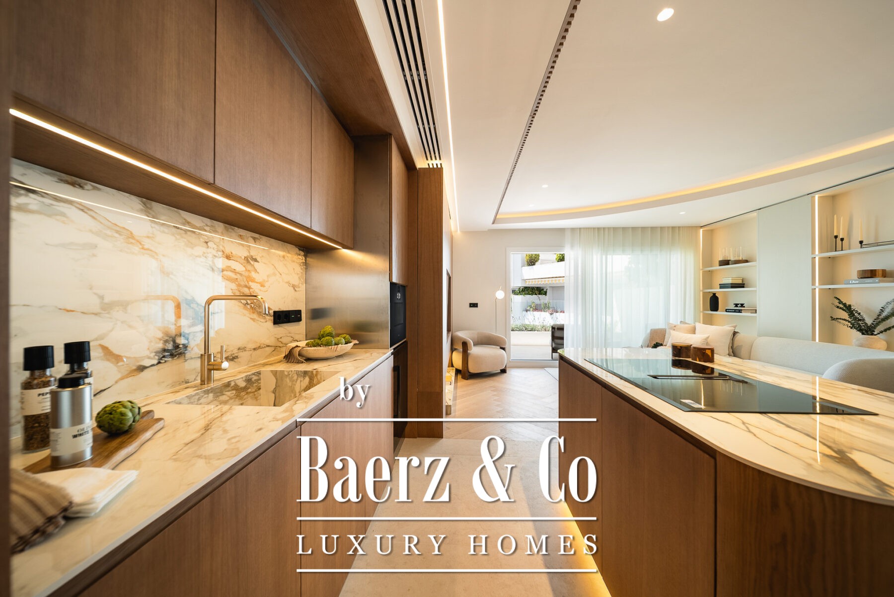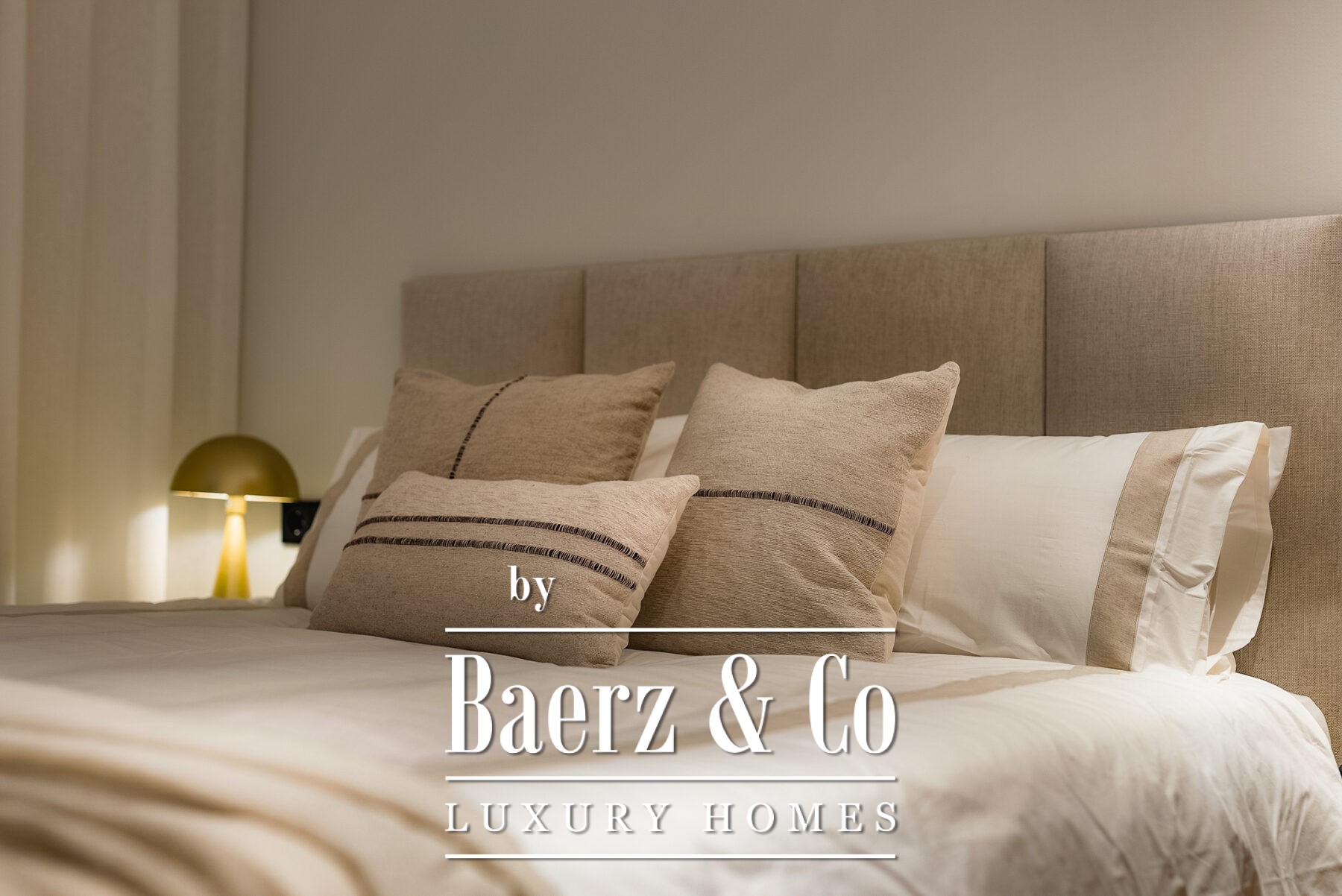 Appartement Marbella Golden Mile met panoramisch zeezicht biedt een adres voor wie locatie, design en comfort waardeert. Dit driekamerappartement beschikt over 110 m² zorgvuldig gerenoveerde interieurs en een terras van 20 m² met weidse uitzichten op zee. De belangrijkste leefruimtes zijn ingericht voor rust en comfort, met BOEN visgraatparket, Gaggenau- en Siemens apparatuur en slimme huisautomatisering. In de badkamers onderstrepen Dornbracht kranen een consequente investering in kwaliteit.