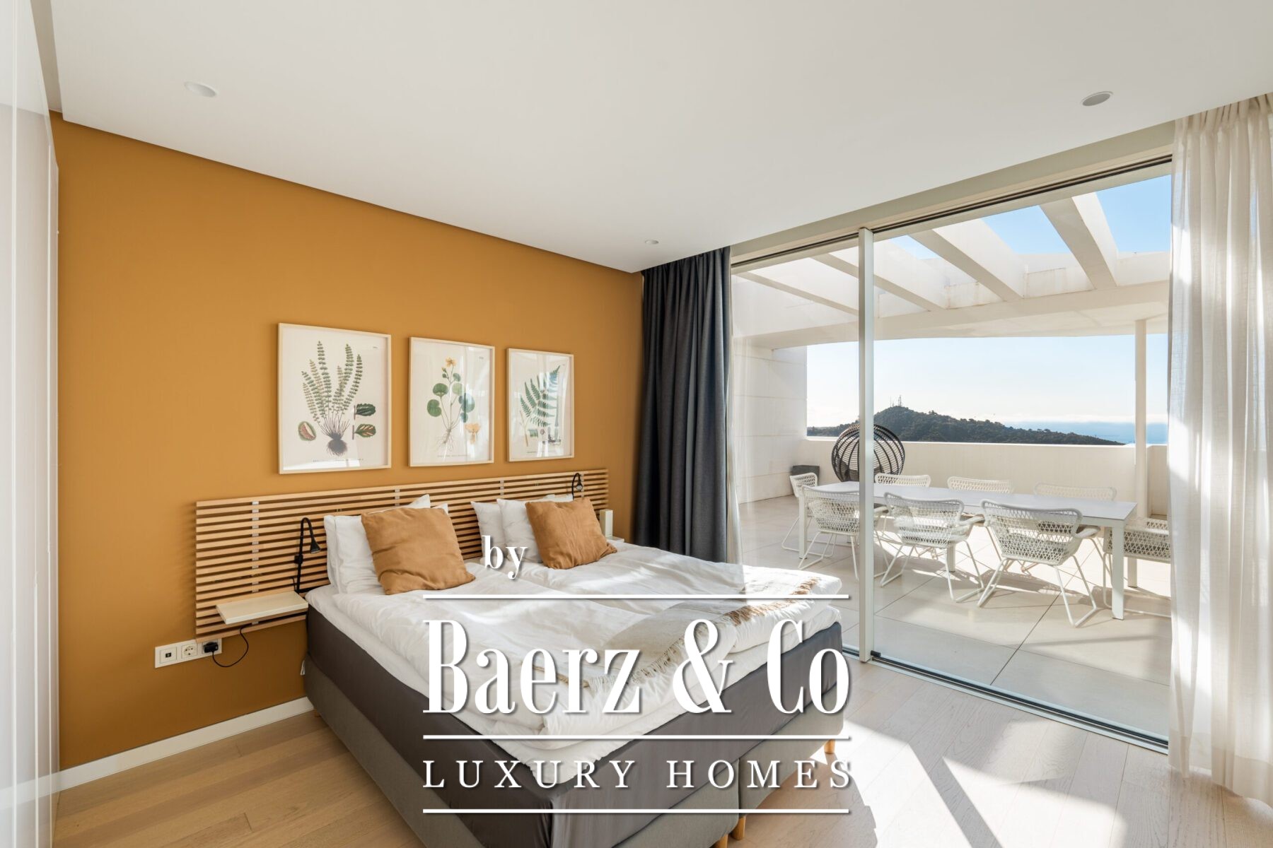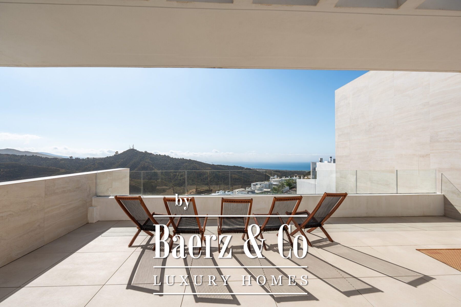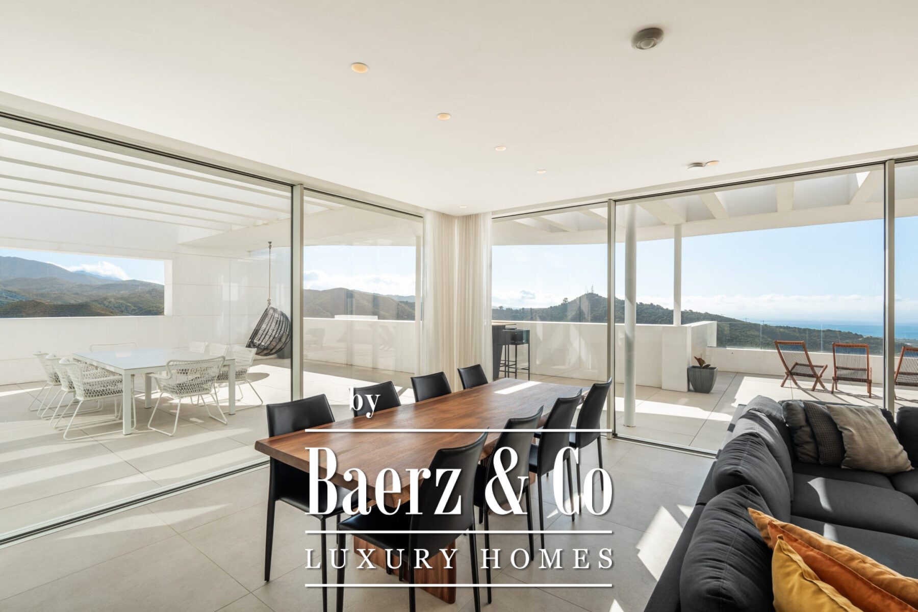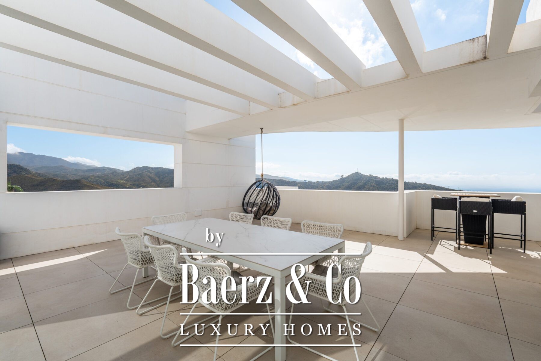 Penthouse Marbella biedt een zeldzame combinatie van privacy en panoramisch uitzicht, gelegen op een verhoogde positie boven de stad binnen een veilige, afgesloten enclave. Dit op het zuidoosten georiënteerde penthouse in Marbella geniet optimaal daglicht en een weids uitzicht op zee en bergen vanuit een privépositie. Met 157 m² verfijnd interieur en 276 m² omliggende terrassen is elke ruimte ingericht voor een sophisticated indoor-outdoor leven.