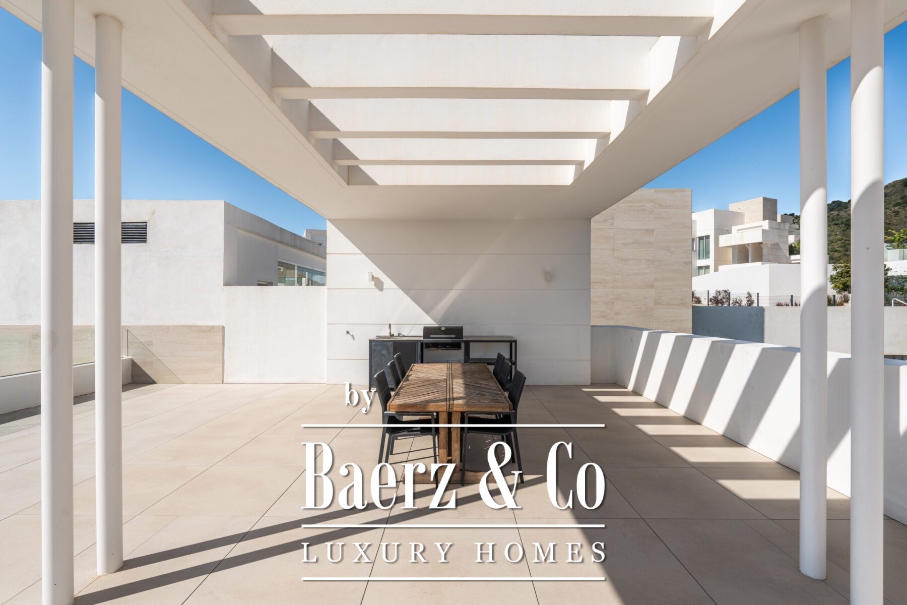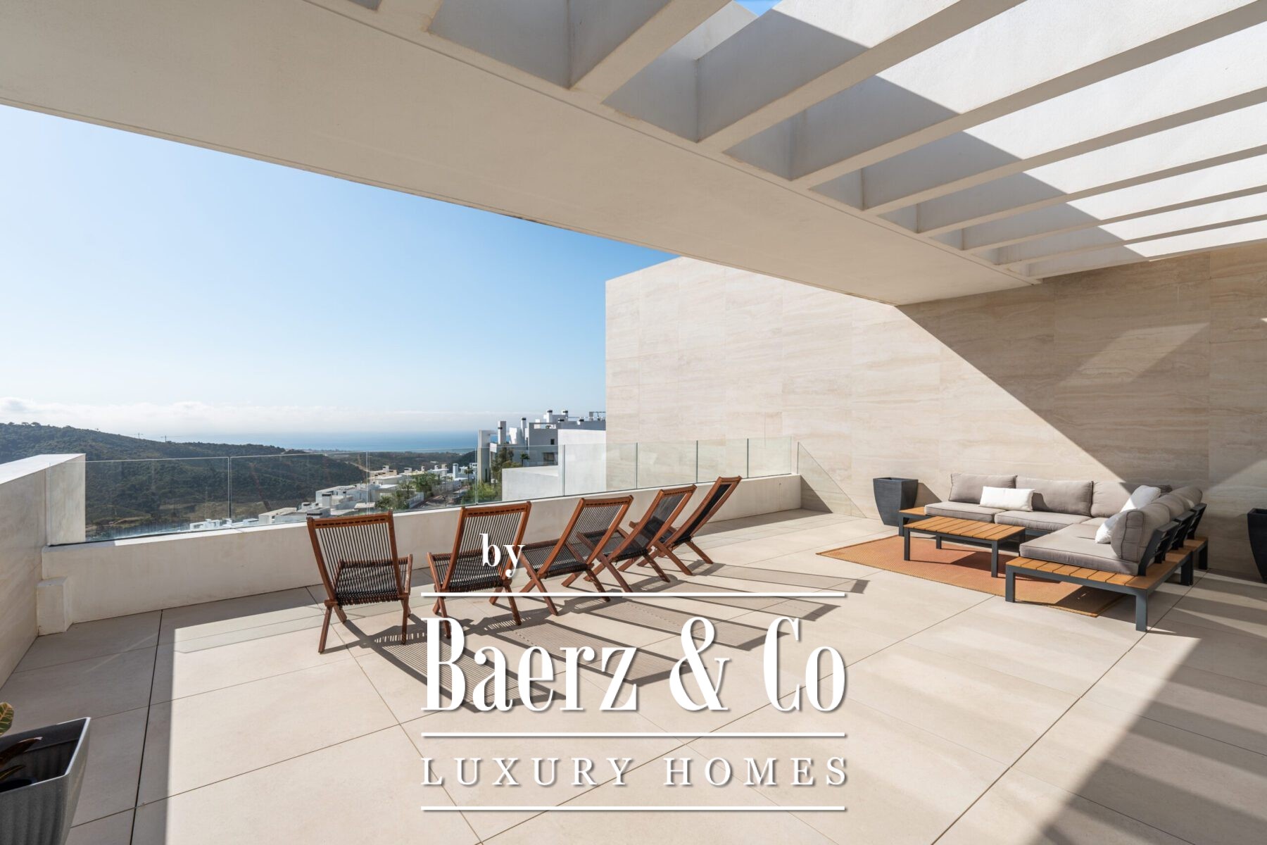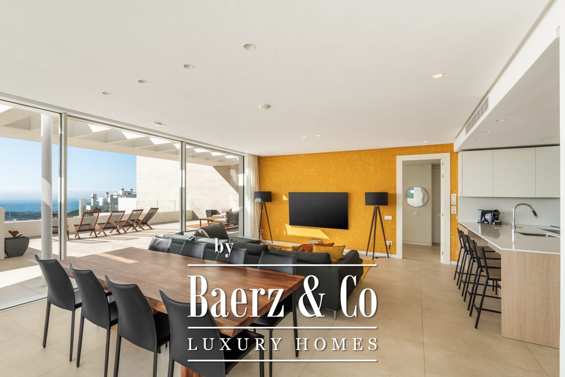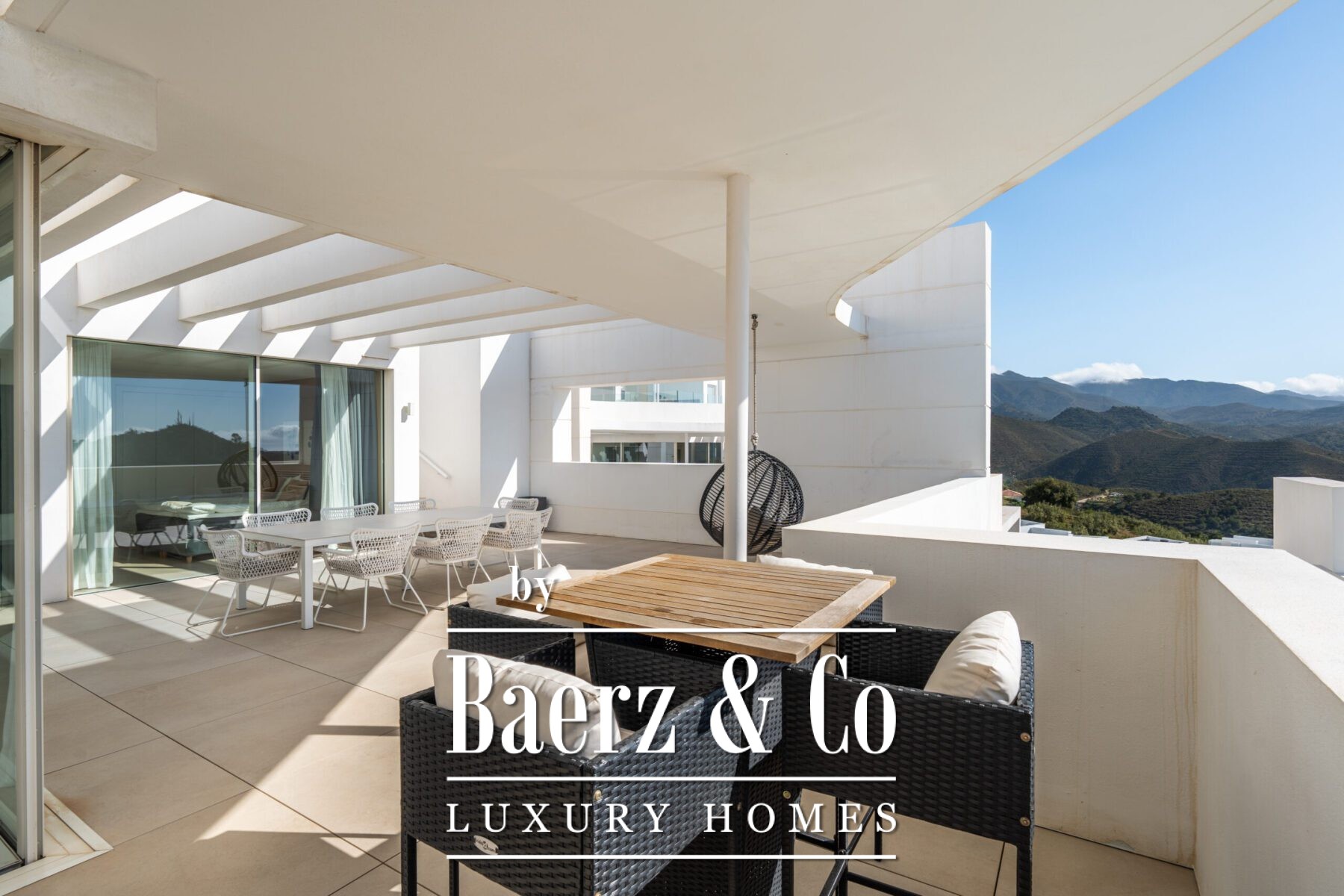 Penthouse Marbella biedt een zeldzame combinatie van privacy en panoramisch uitzicht, gelegen op een verhoogde positie boven de stad binnen een veilige, afgesloten enclave. Dit op het zuidoosten georiënteerde penthouse in Marbella geniet optimaal daglicht en een weids uitzicht op zee en bergen vanuit een privépositie. Met 157 m² verfijnd interieur en 276 m² omliggende terrassen is elke ruimte ingericht voor een sophisticated indoor-outdoor leven.