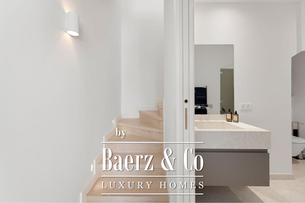 De hoofdverdieping kenmerkt zich door een open ontwerp met een high-end keuken voorzien van premium Gaggenau-apparatuur, een riante woonkamer en een stijlvolle eetruimte. Hoogwaardige houten vloeren, elektrische rolluiken, een geavanceerd alarmsysteem en een lift onderstrepen het samenspel van elegantie en functionaliteit. Twee ondergrondse parkeerplaatsen en twee bergingen verhogen het dagelijkse gemak.