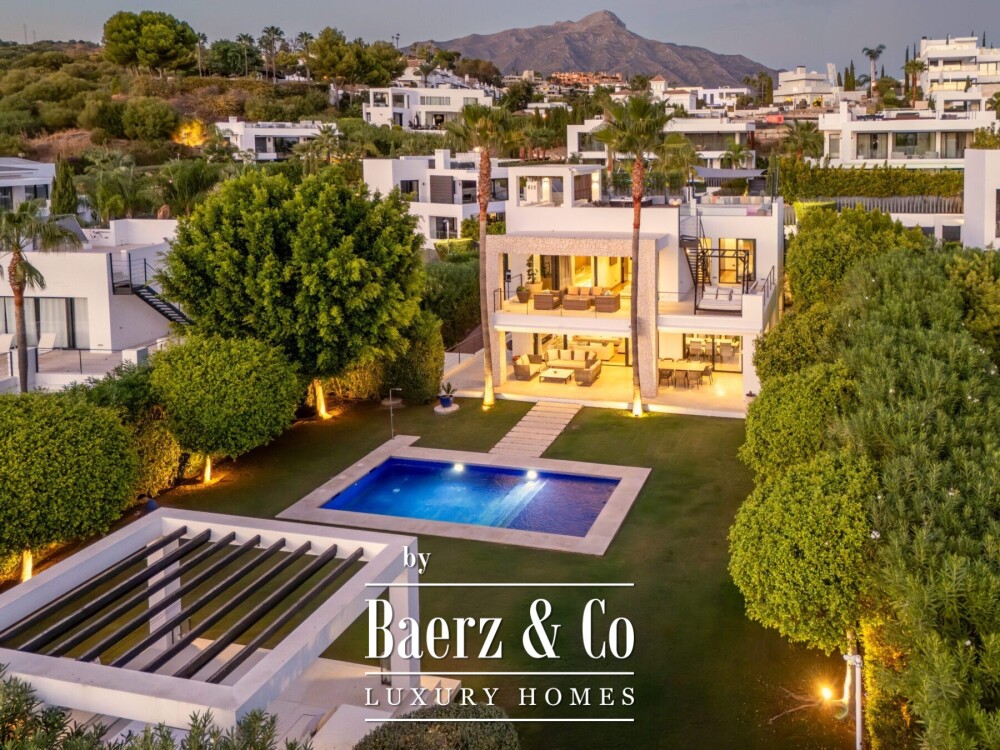 Villa Nueva Andalucia Marbella is een adres dat staat voor ingetogen luxe en mediterrane helderheid. Deze villa, gelegen in een prestigieuze afgesloten gemeenschap, beschikt over zes slaapkamers en zes badkamers verspreid over 484 m² zorgvuldig ontworpen leefruimte. Het perceel van 1.344 m² biedt privacy en ruimtelijkheid, met panoramisch uitzicht op de bergen, tuin en het zwembad die een serene dagelijkse sfeer creëren.