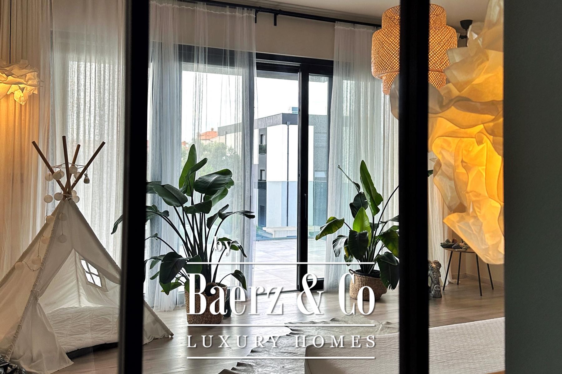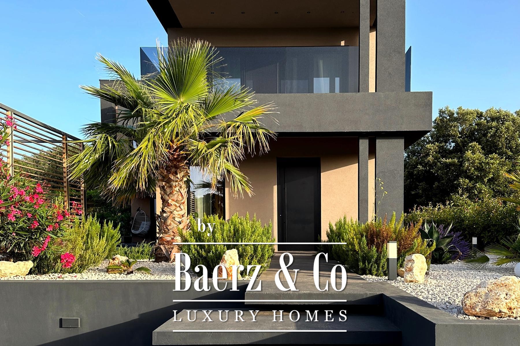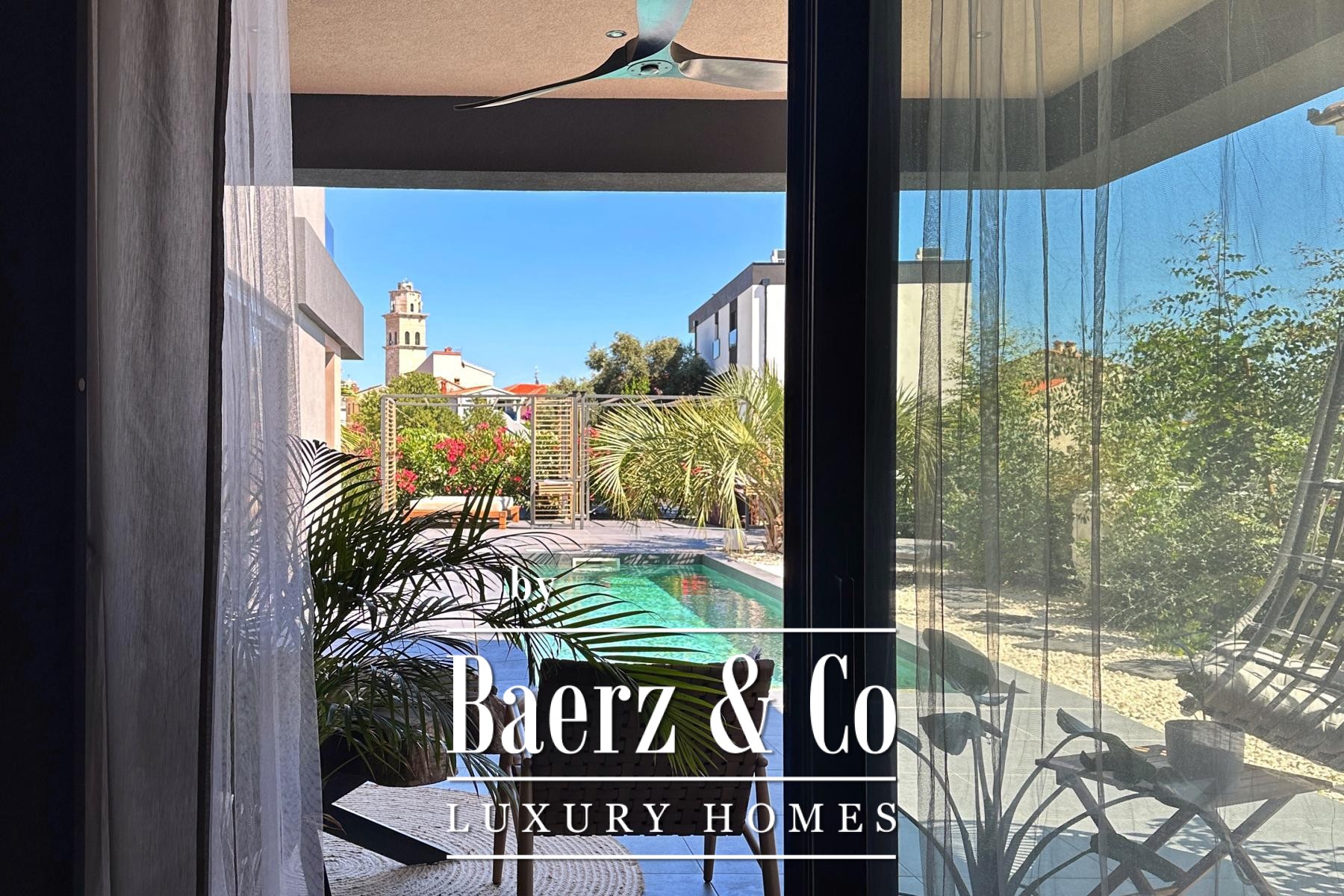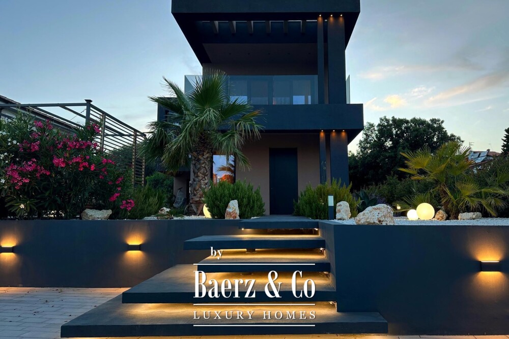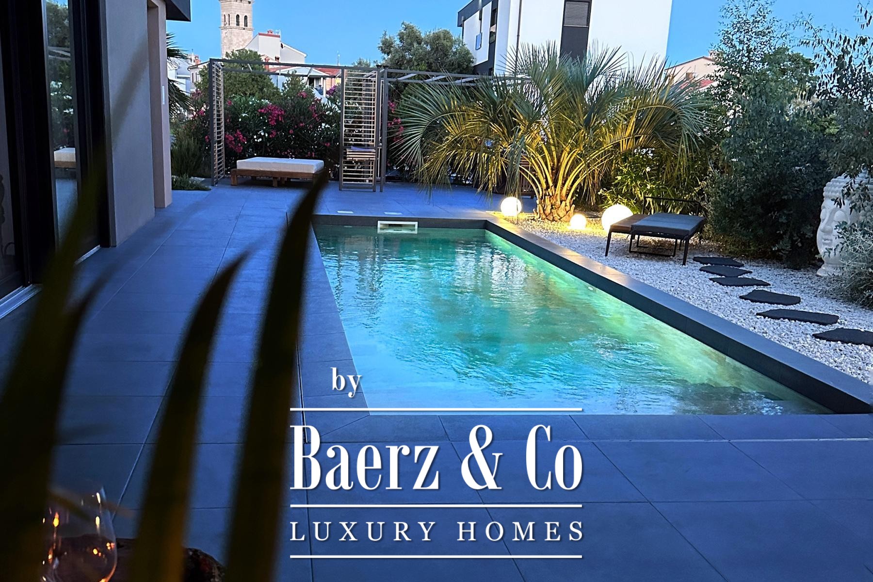 In Premantura, in the very south of the Istrian peninsula, this beautiful unique villa is located on a landscaped garden of 710 m2.It extends over two floors. The ground floor of the villa is dominated by a large, meticulously designed living room. Warm colors, unique pieces of furniture, lighting, a fireplace in the central part of the space, large glass walls with a view and access to the pool provide a feeling of warmth and home. On the ground floor there is also a comfortable kitchen, a bedroom, a toilet, a storage room, a technical room, and an exit to the large back yard.An elegant internal staircase leads to the first floor where there are two bedrooms. The large bedroom is a true combination of elegance and comfort, light and airy with a large covered terrace and a view of nature. The large bathroom is merged with the interior of the room and represents a true green oasis. The second bedroom of modern design also has its own bathroom.All the furniture and equipment of the villa is mainly from Germany, Italy and the Czech Republic.The entire villa has underfloor heating - a heat pump system, while each room has its own air conditioner.In the courtyard area there is a large barbecue, a comfortable terrace for socializing and resting. Green vegetation provides privacy, while modern lighting in the evening gives a magical touch to the villa itself. The villa has video surveillance.The entrance courtyard offers the possibility of parking for four vehicles.This unique villa in Premantura is a rarity on the market, so feel free to contact us for more information.