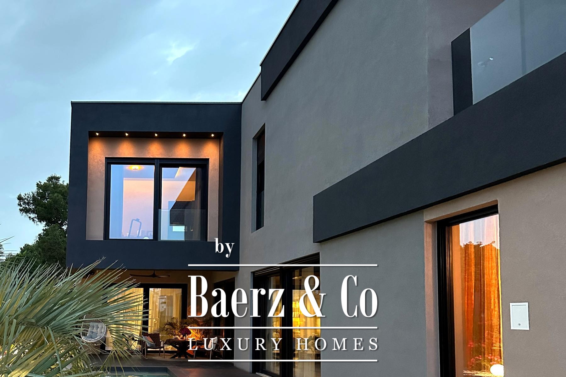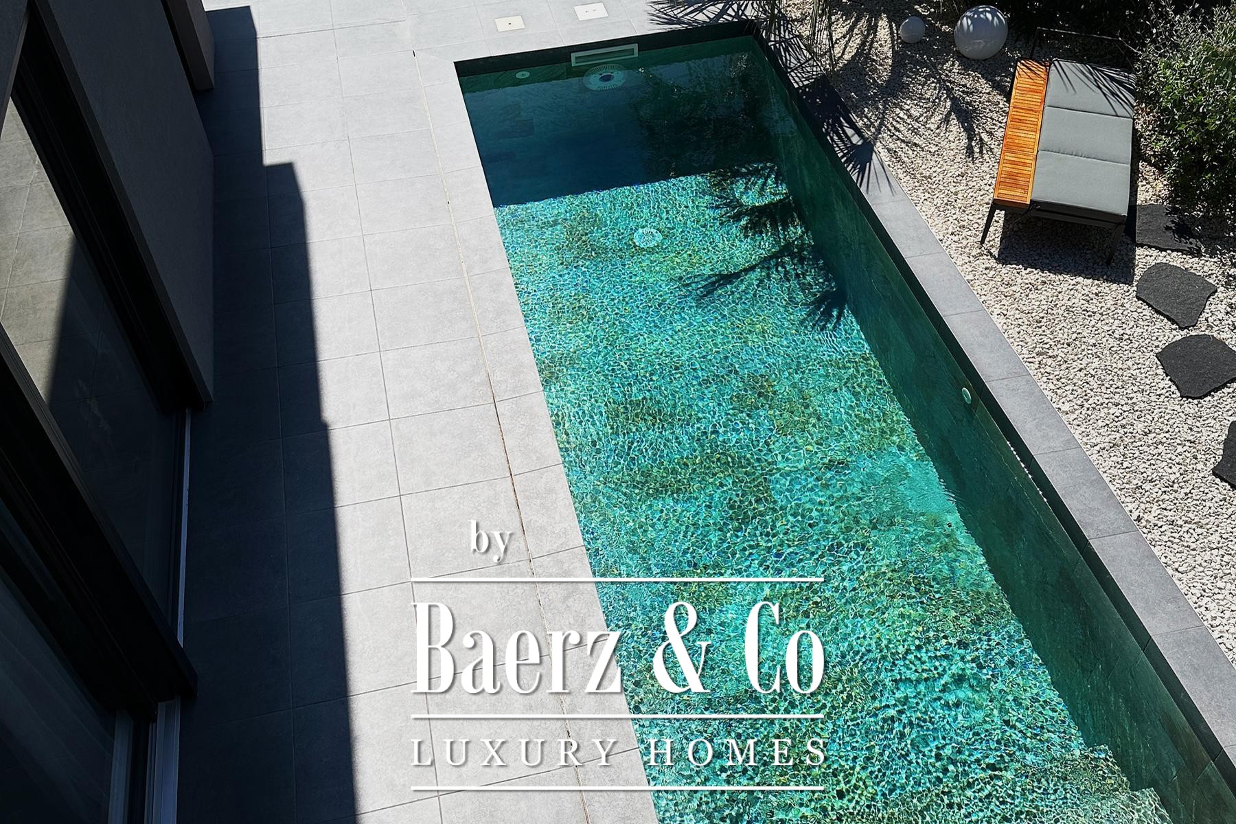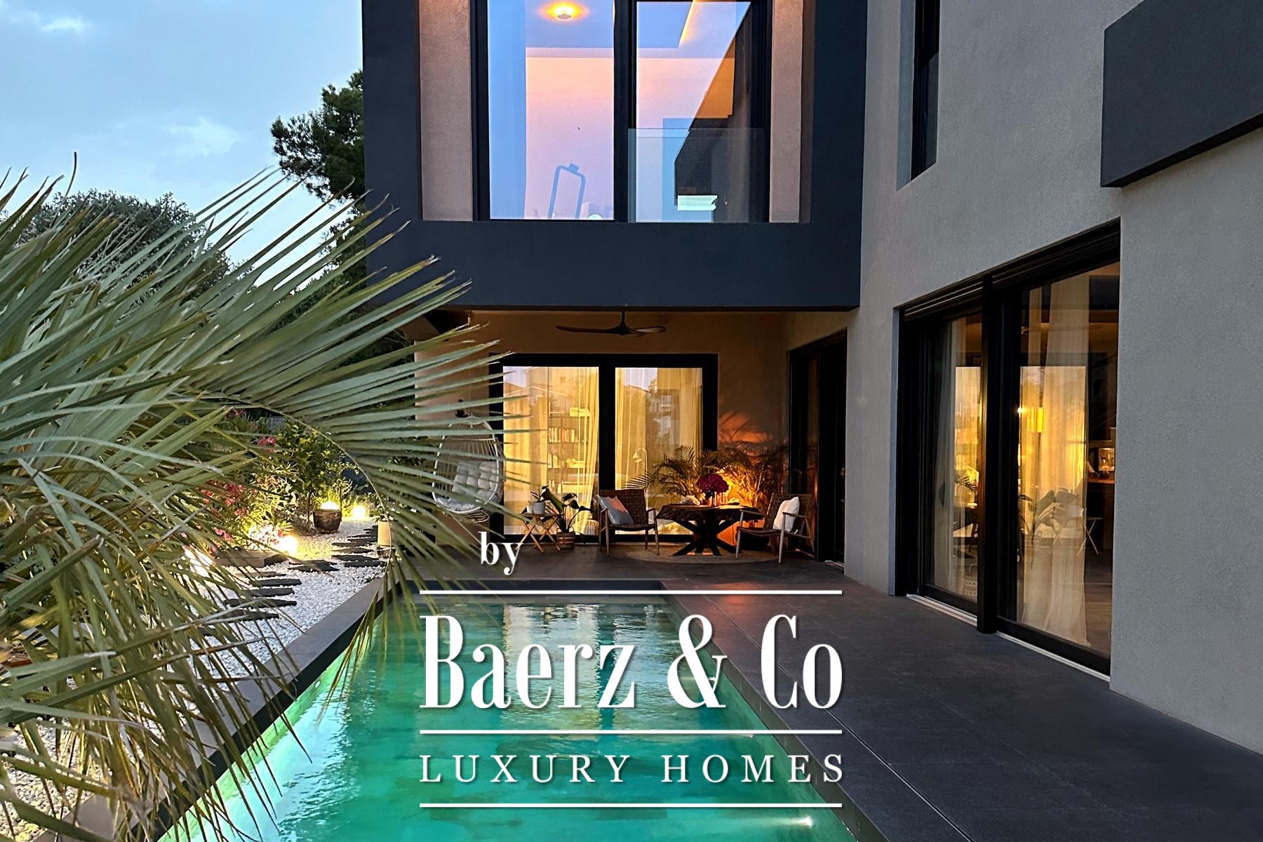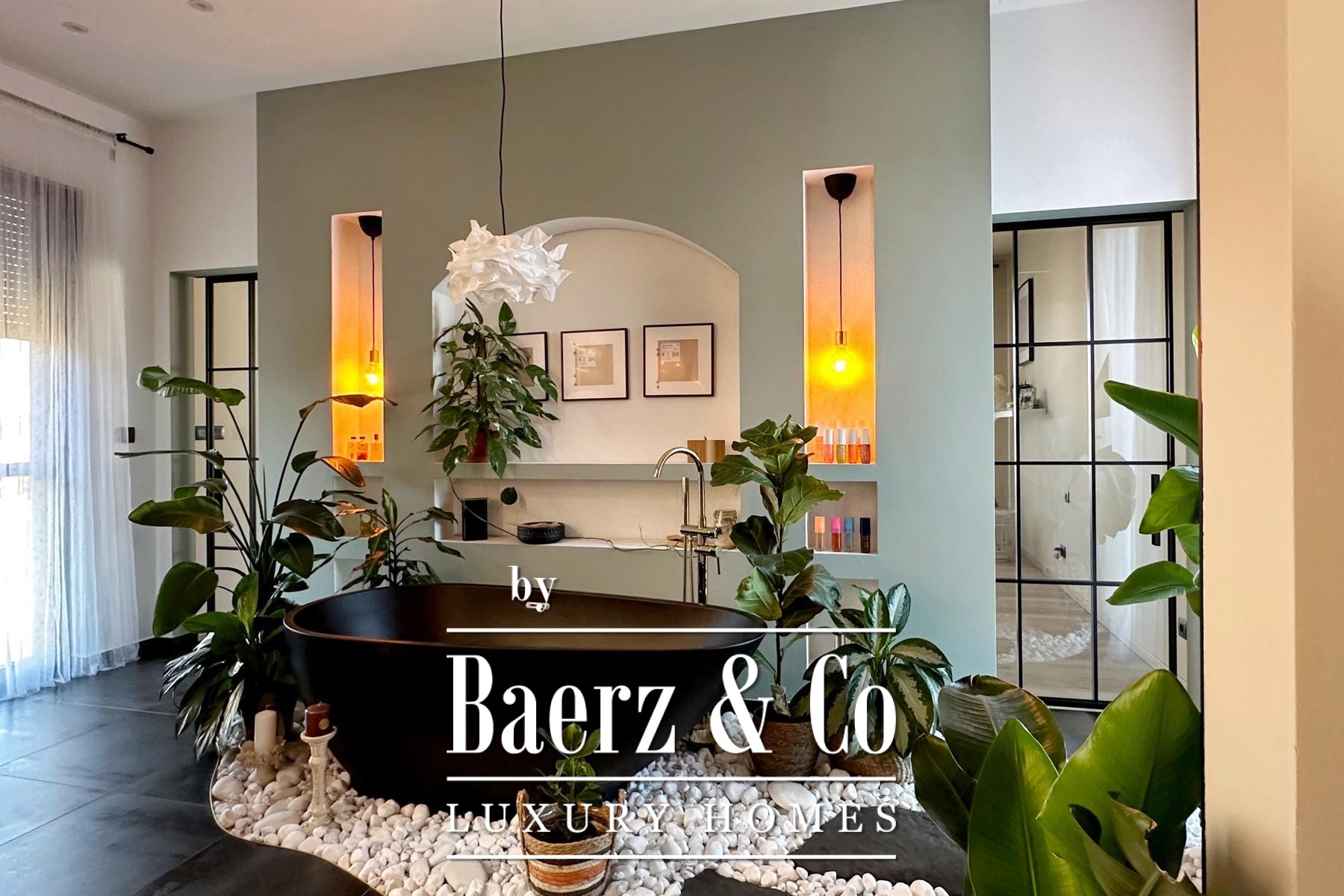 In Premantura, in the very south of the Istrian peninsula, this beautiful unique villa is located on a landscaped garden of 710 m2.It extends over two floors. The ground floor of the villa is dominated by a large, meticulously designed living room. Warm colors, unique pieces of furniture, lighting, a fireplace in the central part of the space, large glass walls with a view and access to the pool provide a feeling of warmth and home. On the ground floor there is also a comfortable kitchen, a bedroom, a toilet, a storage room, a technical room, and an exit to the large back yard.An elegant internal staircase leads to the first floor where there are two bedrooms. The large bedroom is a true combination of elegance and comfort, light and airy with a large covered terrace and a view of nature. The large bathroom is merged with the interior of the room and represents a true green oasis. The second bedroom of modern design also has its own bathroom.All the furniture and equipment of the villa is mainly from Germany, Italy and the Czech Republic.The entire villa has underfloor heating - a heat pump system, while each room has its own air conditioner.In the courtyard area there is a large barbecue, a comfortable terrace for socializing and resting. Green vegetation provides privacy, while modern lighting in the evening gives a magical touch to the villa itself. The villa has video surveillance.The entrance courtyard offers the possibility of parking for four vehicles.This unique villa in Premantura is a rarity on the market, so feel free to contact us for more information.