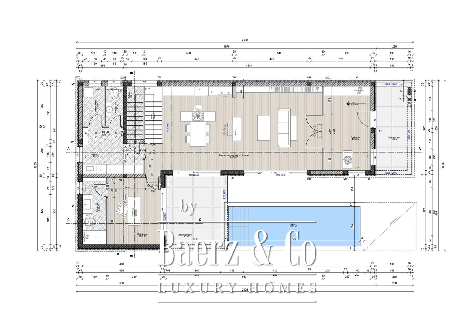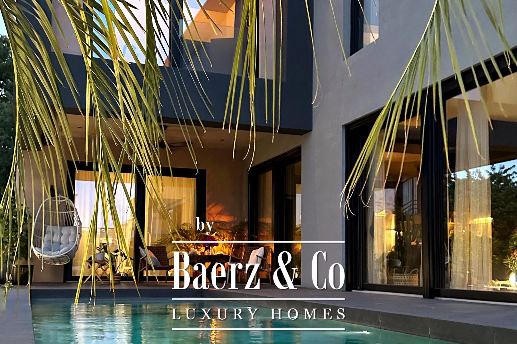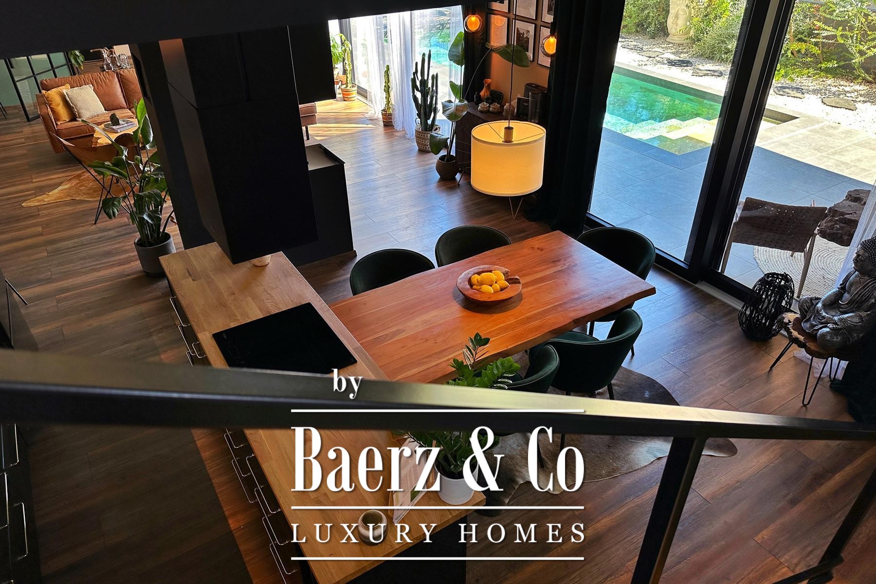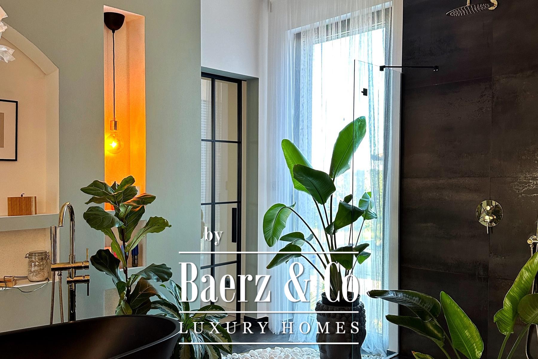 In Premantura, in the very south of the Istrian peninsula, this beautiful unique villa is located on a landscaped garden of 710 m2.It extends over two floors. The ground floor of the villa is dominated by a large, meticulously designed living room. Warm colors, unique pieces of furniture, lighting, a fireplace in the central part of the space, large glass walls with a view and access to the pool provide a feeling of warmth and home. On the ground floor there is also a comfortable kitchen, a bedroom, a toilet, a storage room, a technical room, and an exit to the large back yard.An elegant internal staircase leads to the first floor where there are two bedrooms. The large bedroom is a true combination of elegance and comfort, light and airy with a large covered terrace and a view of nature. The large bathroom is merged with the interior of the room and represents a true green oasis. The second bedroom of modern design also has its own bathroom.All the furniture and equipment of the villa is mainly from Germany, Italy and the Czech Republic.The entire villa has underfloor heating - a heat pump system, while each room has its own air conditioner.In the courtyard area there is a large barbecue, a comfortable terrace for socializing and resting. Green vegetation provides privacy, while modern lighting in the evening gives a magical touch to the villa itself. The villa has video surveillance.The entrance courtyard offers the possibility of parking for four vehicles.This unique villa in Premantura is a rarity on the market, so feel free to contact us for more information.