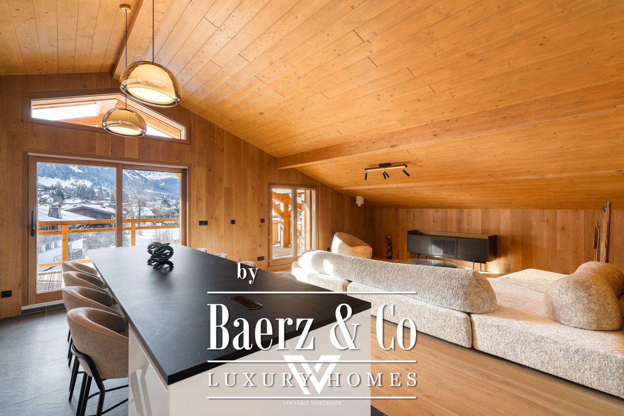 Appartement Megève is een verfijnd alpien toevluchtsoord en beslaat de gehele bovenste verdieping van een discreet chalet, op slechts enkele passen van het dorpscentrum en de skipistes. Dit eigendom van 126 m² baadt in natuurlijk licht, waarbij elk raam een panoramisch uitzicht op de bergen biedt dat een gevoel van plaats en rust oproept.