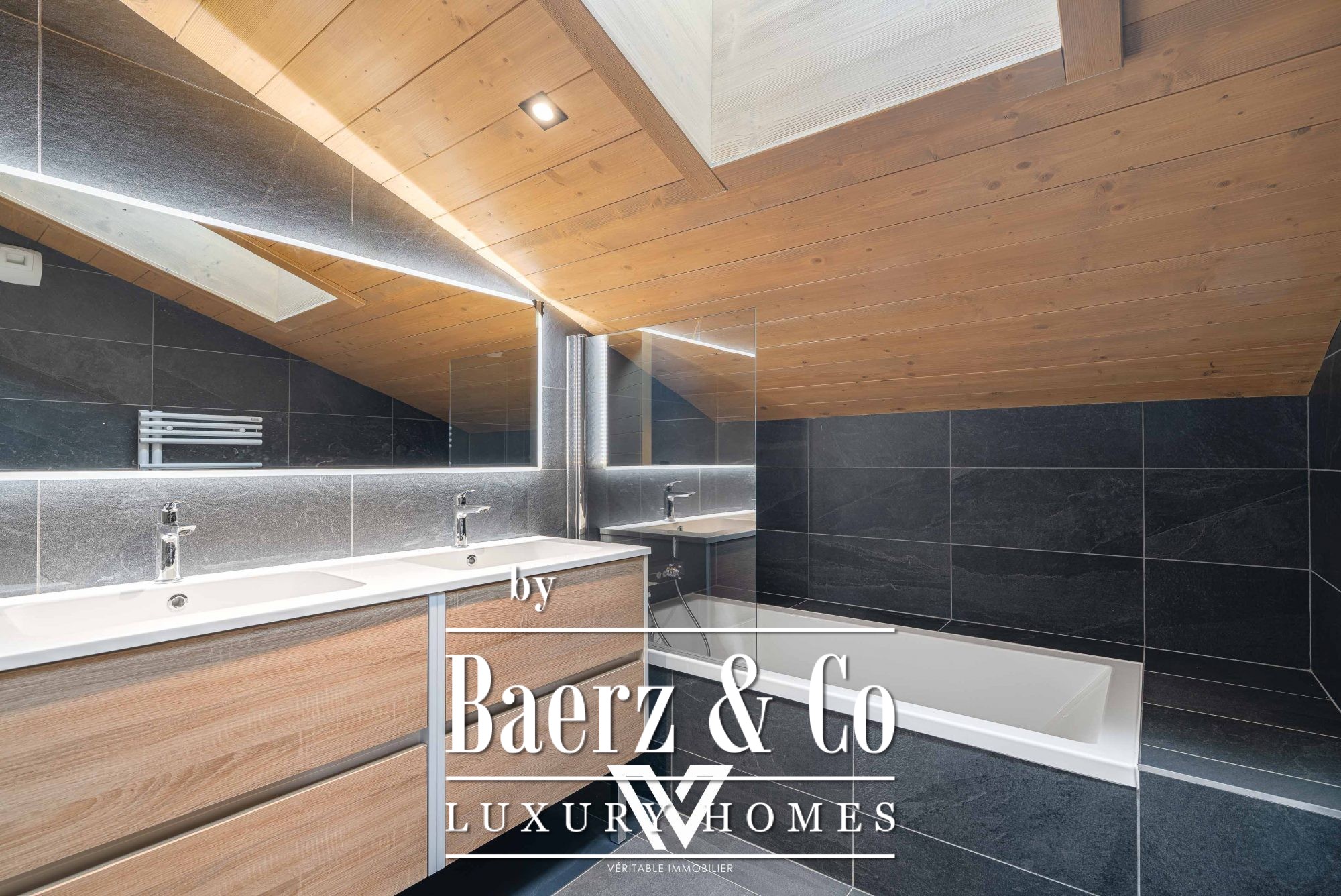 Vier slaapkamers, waaronder twee suites met eigen badkamer en directe toegang tot buiten, bieden volop comfort. Verder zijn er een gezinsbadkamer, wasruimte, gastentoilet en een vloeiende circulatie in de woning, die het verblijf plezierig maakt voor familie en gasten. Voorzieningen als een ondergrondse parkeergarage, een kelder, een privé skiberging en lifttoegang zorgen voor praktisch gemak en optimale privacy.
