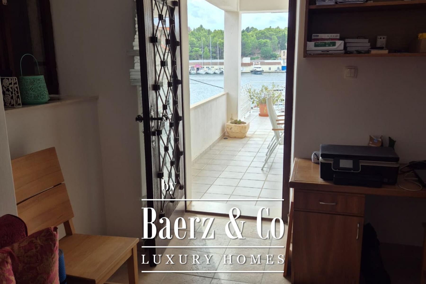 De begane grond herbergt een volledig uitgerust restaurant waarvan de deuren direct uitkomen aan de promenade, perfect voor zowel lokale gasten als bezoekers in zacht maritiem licht. Op de eerste verdieping bevindt zich een ruime eetzaal, een royale keuken en een badkamer; deze indeling biedt flexibiliteit in dagelijks gebruik of mogelijkheden voor uitgebreide gastvrijheid. De bovenverdieping bevat vier slaapkamers, een badkamer en een woonkamer met toegang tot een terras dat uitzicht biedt op de haven, het dorp en de zee, waardoor het tijdloze Dalmatische leven tastbaar wordt.