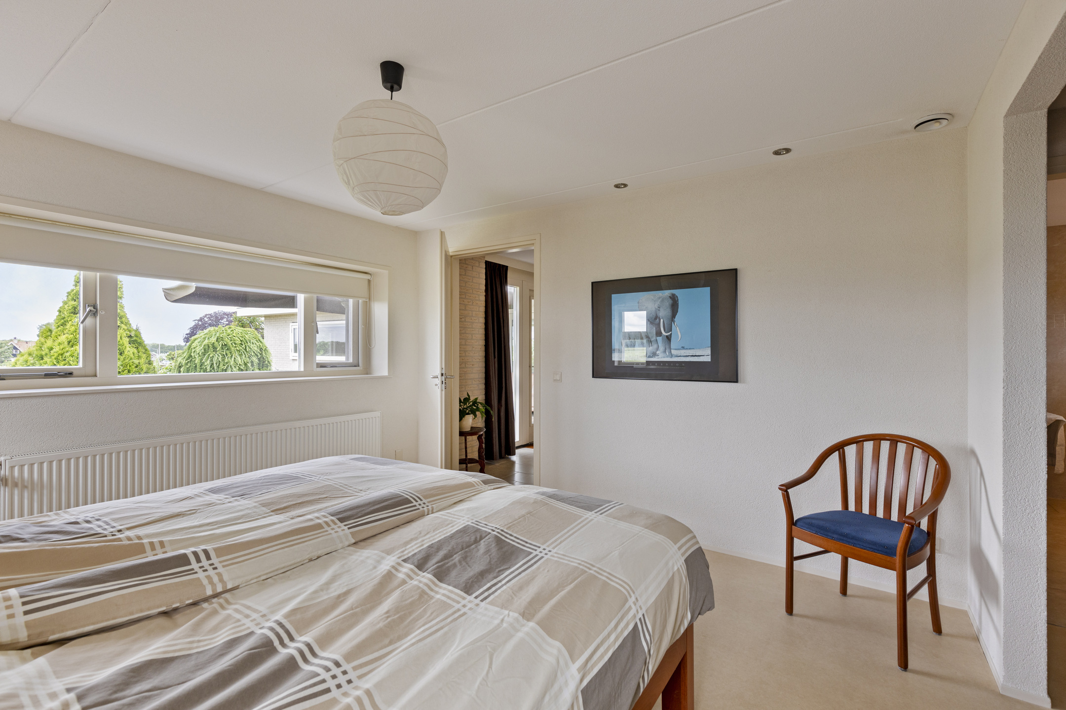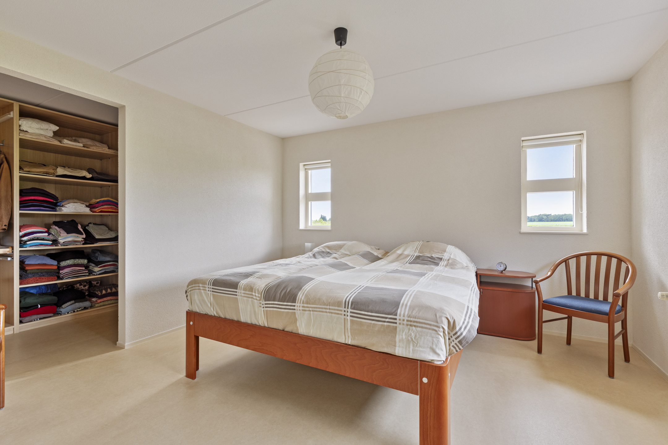 Na de bijkeuken de tweede slaapkamer, met een magnifiek uitzicht op de molen en het dorp.